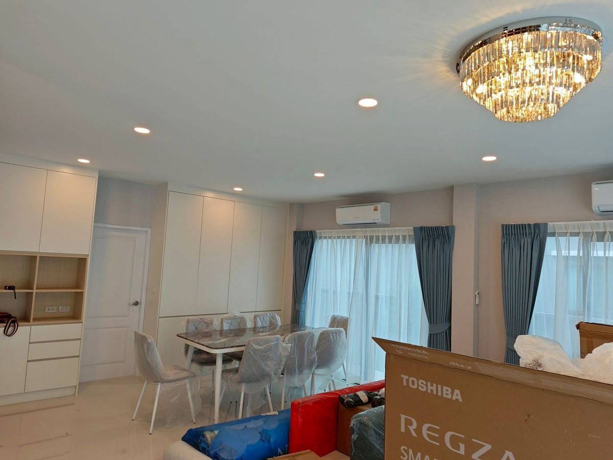 ✨ For rent! The most luxurious detached house, Centro Vibhavadi, is ready to move in this November! Big house, near the garden, 4 bedrooms, 5 bathrooms, accepting foreigners / accepting pets (small size), quality project from AP, house 90% decorated, complete with furniture and electrical appliances. Beautiful built-ins in every room 💵 Rental price (including common fees) 1 year contract: 150,000 baht/month 2 year contract: 140,000 baht/month 3 year contract: 130,000 baht/month 🔹 House details Land size 64.2 sq m Usable area 274 sq m 2-story detached house / back of house facing north. Not hot in the afternoon sun 🌿 4 bedrooms | 5 bathrooms There is a bedroom on the ground floor. Accommodates elderly people Separate maids room with bathroom (or can be used as a storage room) Parking for 3 cars in the house Internet already installed, LAN Cat 6a in every bedroom (2 spaces per room) + Wi-Fi frequency 3.57 GHz Fully built-in furniture. Complete with main electrical appliances (Request additional information as agreed) 🛋️ The central part of the project is complete Clubhouse Lobby Swimming pool, separate pool for children and adults Fitness Common garden 2 rai Playground Basketball court Badminton court KATSAN security system, CCTV camera, 24 hour security guard 🗺 Nearby places Harrow International School – 2 km. Sacred Heart Don Mueang School – 3.9 km. Rangsit University – 9 km. Kasetsart University – 11.3 km. Chulabhorn Hospital – 3.4 km. Mongkut Watthana Hospital – 9.3 km. Don Mueang Airport – 3.5 km. Bun Anan Market – 2 km. Ozone One Market – 3 km. IT Square – 5 km. Muang Thong Thani – 8.2 km. Robinson Srisamarn – 8.5 km. Contract conditions At least 1 year rental contract 2 months deposit + 1 month in advance If interested please contact Property code BK1834 Contact: Khun Man Contact number Line ID: @Kinglandcondo (with @ too) #kinglandestateteam #Kingland EstesTeam #Luxury house for rent #CentroVibhavadi #Single house for rent #House for rent Don Mueang #House for rent near Harrow #House ready to move in #House for rent accepting foreigners #The house has a separate maid.