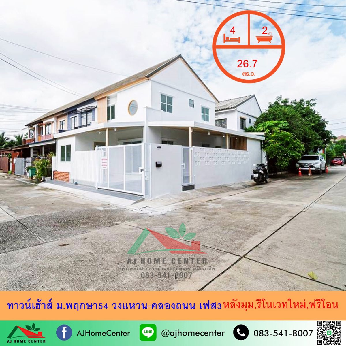 Townhouse for sale 26.7 sq m. 4 bedrooms, 2 bathrooms, corner house, Pruksa Village 54, Ring Road - Khlong Thanon, Phase 3, newly renovated, free transfer . 2-storey townhouse, 26.7 square wah, usable area 140 square meters 4 bedrooms, 2 bathrooms, 1 kitchen, 1 living room, 2 parking spaces ***Renovate the whole house***- New paint throughout the house - Change all new sanitary ware - Add a kitchen at the back of the house - Add a garage + lay tiles - Add an addition to the side of the house. Tiling the entire area - plus a sofa, 4-seat dining table, water pump + water tank - Front of the house faces east - granite flooring throughout . Property location: Pruksa Village 54, Phase 3, Khlong Thanon-Bang Mae Nang Road, Bang Mae Nang Subdistrict, Bang Yai District, Nonthaburi Province Coordinates: https://maps.app.goo.gl/2DS9d8qEXyMhdikt7 . - This price is free of transfer costs - Free loan arrangement service by professionals . Nearby places - Central Westgate - IKEA Bang Yai - Bang Yai Market - Kasemrad Hospital Rattanathibet - Kasinthon St. Peter School - Bang Bua Thong School. If interested, contact Khun Nat, phone number Contact number / Contact number / Contact number