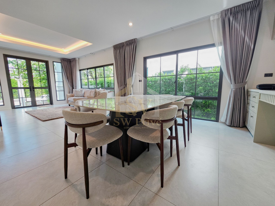 Single house for sale/rent at Setthasiri Bangna, Km. 10, 59 sq wah, 2 stories, 4 bedrooms, 4 bathrooms, on the main road, near Mega Bangna. More photos https://www.facebook.com/share/p/19fpJ9BRg2/ :: Highlights :: Neat and peaceful road in front of the house. Rare unit! Near the clubhouse — only 4 houses in the alley. :: Details :: LAWRENCE House Model - Area: 59 sq wah - Floor Area: 247 sq m - Type: 4 bedrooms, 4 bathrooms - Number of floors: 2 - Living room - Dining area - Kitchen - Maid's room - Parking for 3 cars :: Furniture List :: Fully furnished and equipped with appliances as shown in the photos. Project amenities: Sansiri-standard * Saltwater swimming pool (Separate children's pool) * Fully equipped fitness center * Sansiri Backyard and large communal garden * 24-hour security. Prime location with easy access to all routes. * Near Burapha Withi Expressway * Within minutes of Suvarnabhumi Airport Nearby Places: * Mega Bangna / Central Village / Design Village * Verso International School / Berkeley International School * Samitivej Srinakarin / Princ Suvarnabhumi * Windmill Golf Course / Green Valley / Coordinates: http://maps.google.com/maps?q=13.642,100.662 Sale price: 29.9 million baht. This price and location will not be available anywhere else in this project. Price: 190,000 baht per month Minimum 1-year lease agreement available 2-month security deposit and 1-month advance payment required สนใจติดต่อ Contact number, Contact number Line ID: @039erzib หรือคลิก https://lin.ee/AfynNNz inbox: m.me/privebysw #SWPrive #LuxuryRealEstate #นายหน้าขายบ้านหรู #บ้านหรูทำเลชานเมือง #บ้านหรูบางนา #บริการรับฝากขายบ้านหรูเพื่อการอยู่อาศัย #luxuryhomes