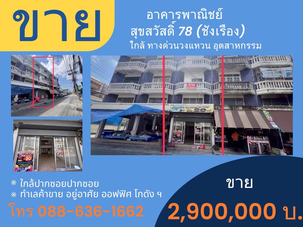Commercial building for sale, Suksawat 78 (Changruang), good location near the entrance of the alley , suitable for living, opening a shop, trading, making a warehouse, office, etc. The alley road is a large community, can enter and exit, can be connected to each other, Soi Suksawat 78, Suksawat 76, Suksawat 74 , can exit Pracha Uthit Road, close to the industrial ring expressway. (Convenient travel) 3-story commercial building, building width 4.5 meters, area 14.40 sq m. Nearby places - Bangpakok 3 Hospital - Bangchak Hospital - Paolo Hospital Phra Pradaeng - Big C Suksawat ========== Selling for 2.9 million baht ============ Interested/Make an appointment to see/Further inquiries Contact K’ JOY (Ag) Call Contact number LINE ID: @theproperty999 LINE ID: Contact number