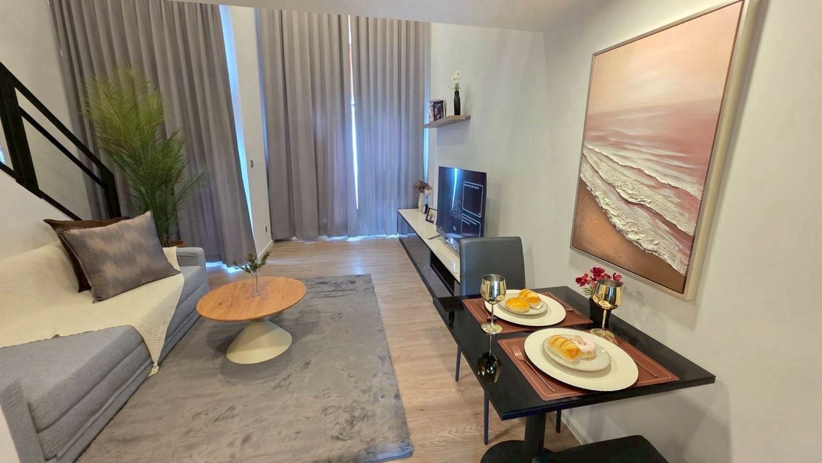 🛏️ 𝐑𝐨𝐨𝐦 𝐃𝐞𝐭𝐚𝐢𝐥𝐬 • 1 Bedroom Duplex • 1 Bathroom • Size: 41 SQ.M. • Floor: 21st • Fully Furnished – พร้อมเข้าอยู่ 📺 𝐅𝐮𝐫𝐧𝐢𝐭𝐮𝐫𝐞 & 𝐀𝐩𝐩𝐥𝐢𝐚𝐧𝐜𝐞𝐬 • แอร์ (Air Conditioners) • ทีวี (TV) • ตู้เย็น (Refrigera