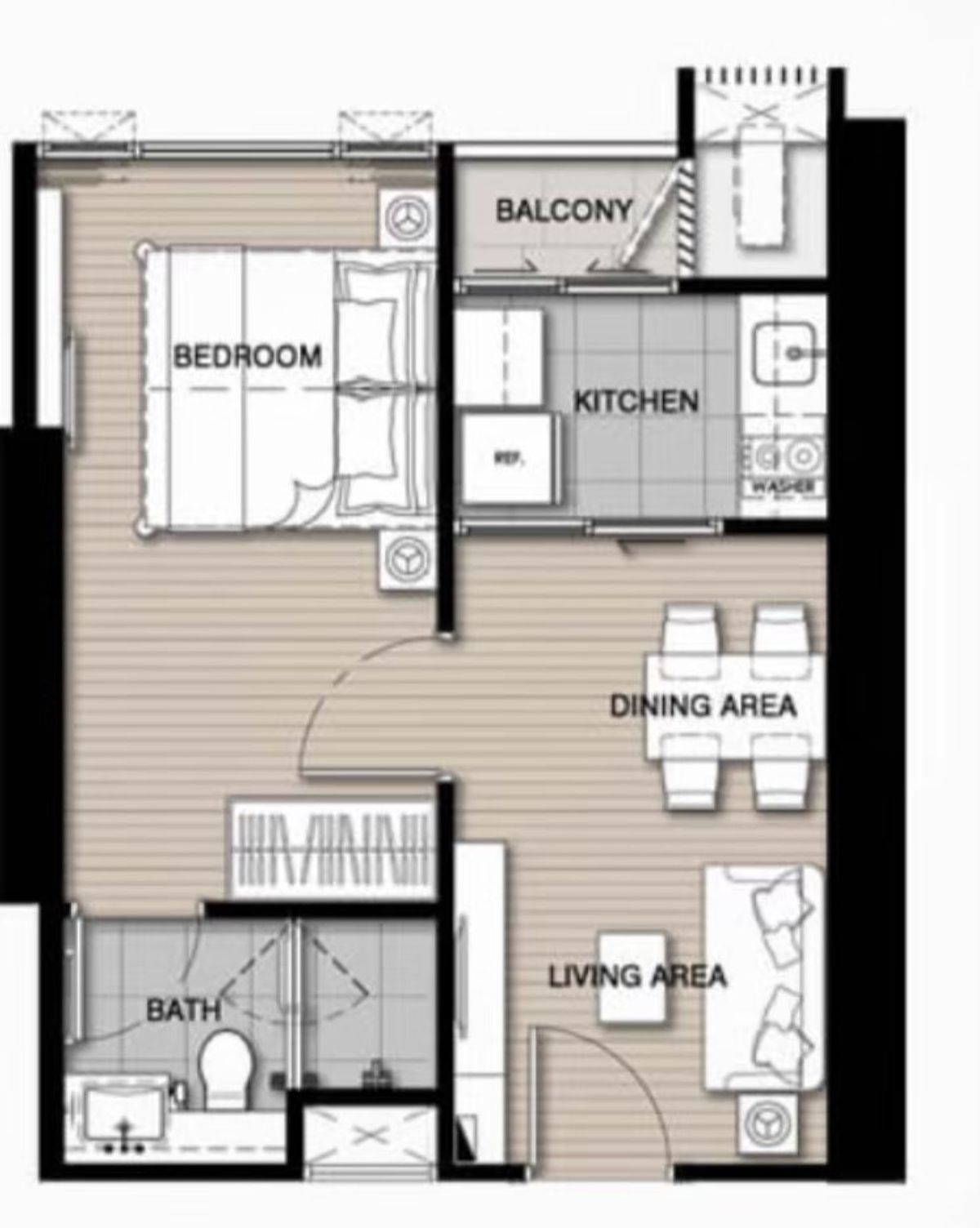 For rent: Whizdom Essence Condo 1 bedroom, 1 bathroom • Size: 34 sq m. • Floor: 7 • Furniture & Complete electrical appliances