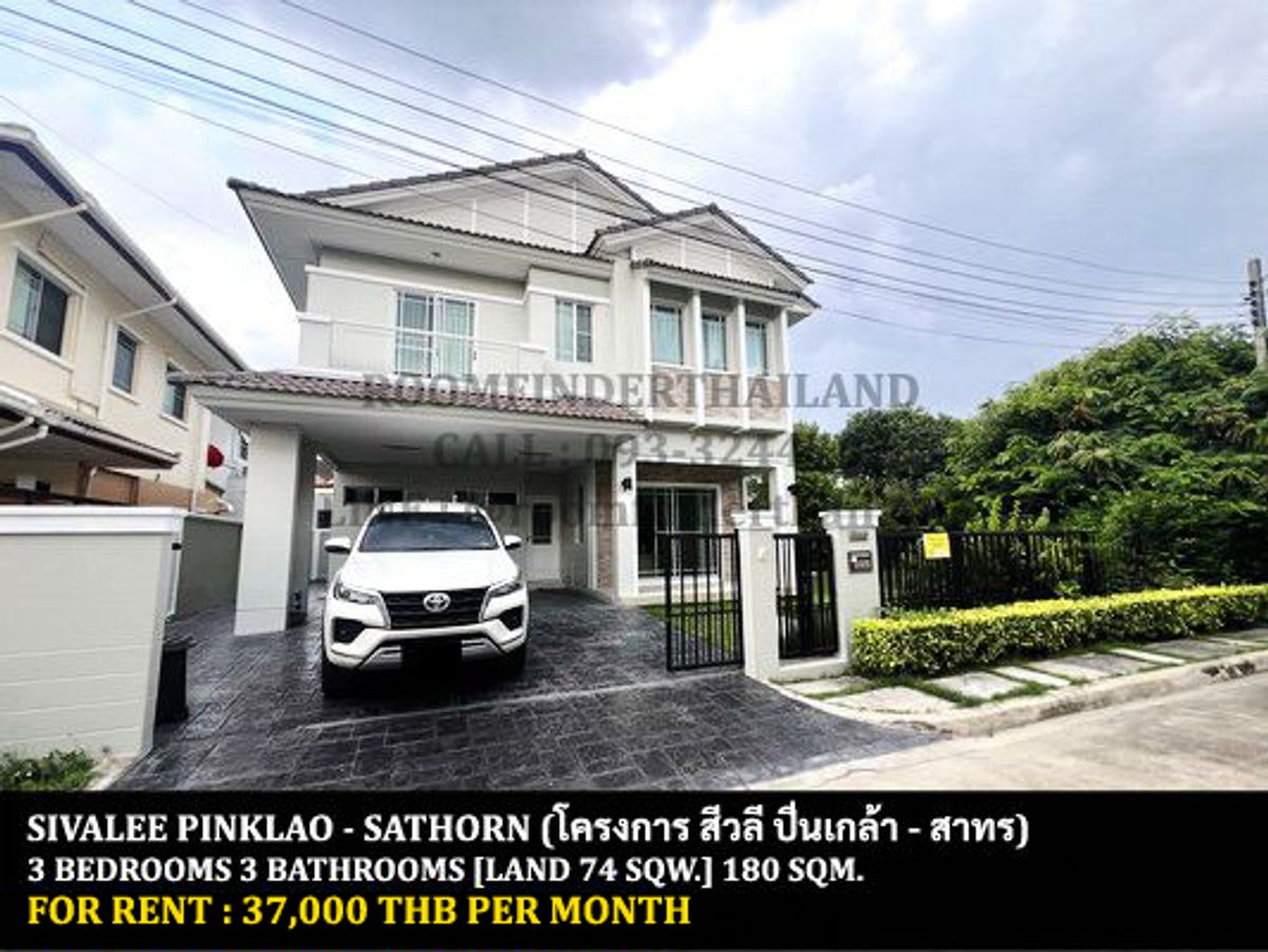 HOUSE FOR RENT PROPERTY PROJECT : Sivalee Pinklao - Sathorn LOCATED : Ratchaphruek Rd. , Bangkruai , Bangkruai , Nonthaburi PROPERTY TYPE : Detached House BEDROOMS / BATHROOMS : 3 Bedrooms 3 Bathrooms LAND SIZE : 74 Sq.w. USABLE AREA : 180 Sq.m. CONDITION : Partly furnished NEARBY : - The Crystal SB Ratchaphruek - Central Westville - Denla Rama 5 School ------------------------------------------------------- RENTAL PRICE : 37,000 Baht / Month (No Negotiable) ------------------------------------------------------- Please contact us for viewing or more details CALL : Contact number Nat [Nathan] LINE ID : @roomfinderthailand [Put @ Front ID] WHAT'S APP : Contact number WECHAT : saintz69 EMAIL : Contact email llllllllllllllllllllllllllllllllllllllllllllllllllllllllllllllllllllllllllllllllllllllll ROOMFINDER (THAILAND) CO.,LTD. PROPERTY AGENTS HOMEPAGE : www.facebook.com/roomfinderthailand ------------------------------------------------------- บริษัท รูมไฟเดอร์ (ไทยแลนด์) จำกัด ตัวแทนรับฝาก ขาย เช่า อสังหาริมทรัพย์ทุกชนิด