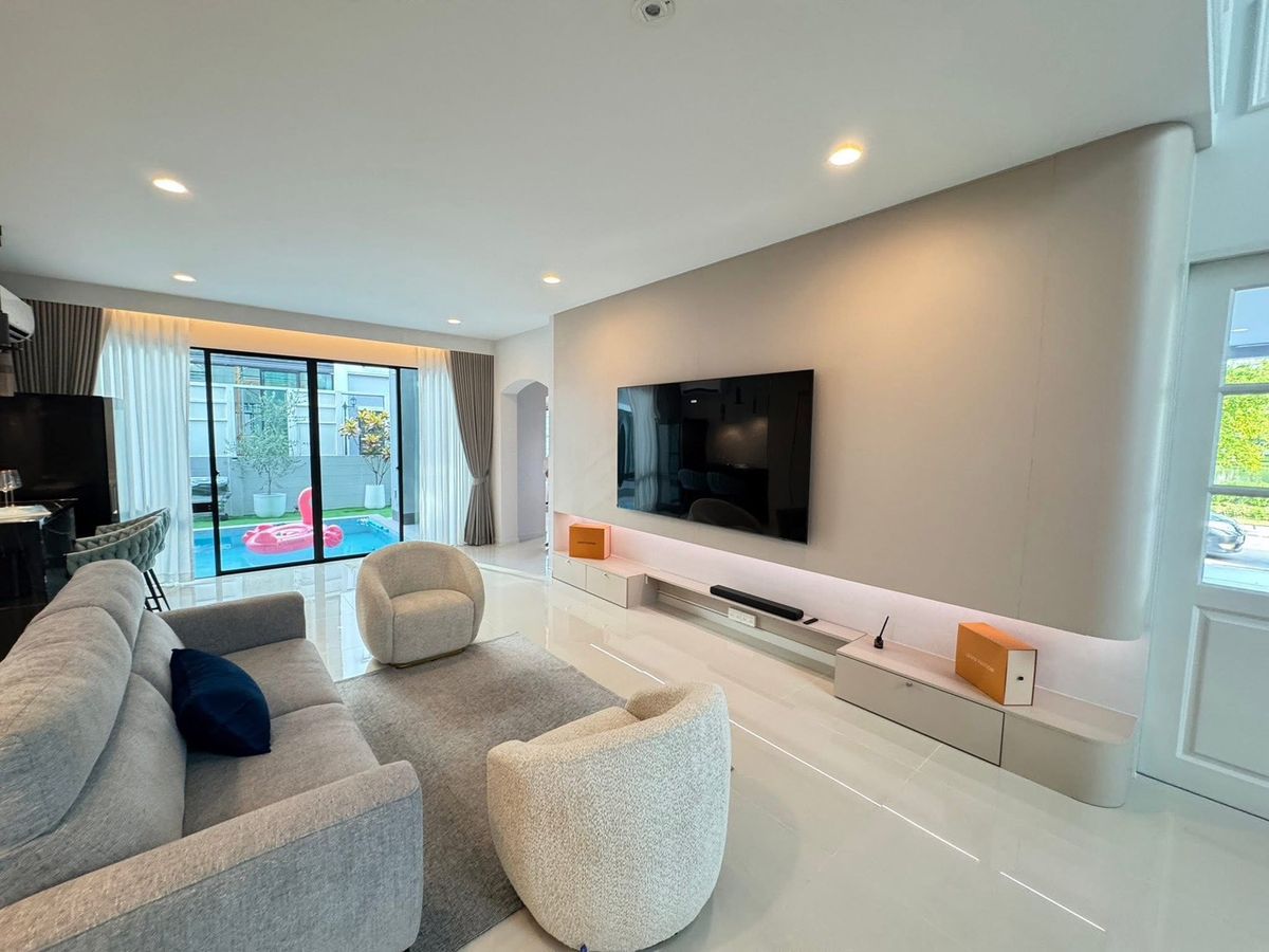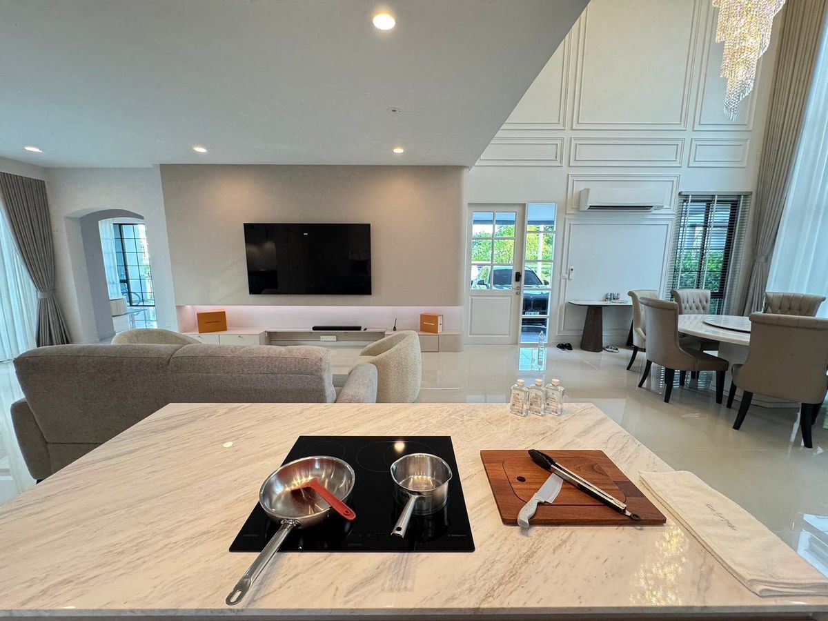 Lakefront Luxury Home | Largest Unit in the Project | Brand New with Private Pool Introducing a brand-new luxury residence in Burasiri Panya Indra – the largest and most private unit in the entire project. This stunning corner home offers direct lake views, a private swimming pool, and a putting green, making it ideal for families who value space, privacy, and lifestyle. Property Details: Usable area: nearly 500 SQM 6 Bedrooms | 7 Bathrooms 2 Extra multipurpose rooms 4 indoor + 2 outdoor parking spaces Double-volume ceiling in living area Lake-facing view Private swimming pool Private putting green with artificial grass Largest plot in the village Brand new, never lived in Project Facilities: 13+ Rai of common area Clubhouse, swimming pool, fitness center, large garden Nearby Landmarks: RIS International School Fashion Island, The Promenade Panya Indra Golf Club Central Eastville, Jazz Urban Village Safari World, Makro, Lotus 7-Eleven, Synphaet Hospital Easy access to Ekamai–Ramintra Expressway & Outer Ring Road Suvarnabhumi Airport: approx. 30 mins Rental Price: 280,000 THB/month For more details or to arrange a private viewing: Call: Contact number LINE: @phenomenal.estate