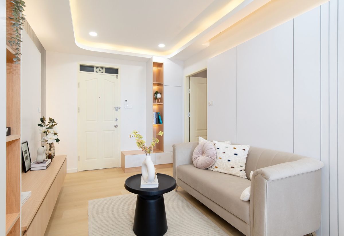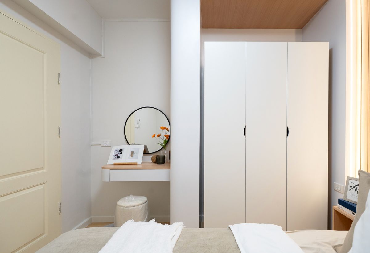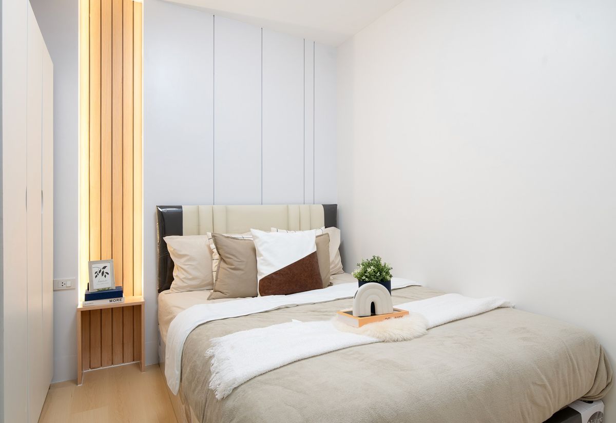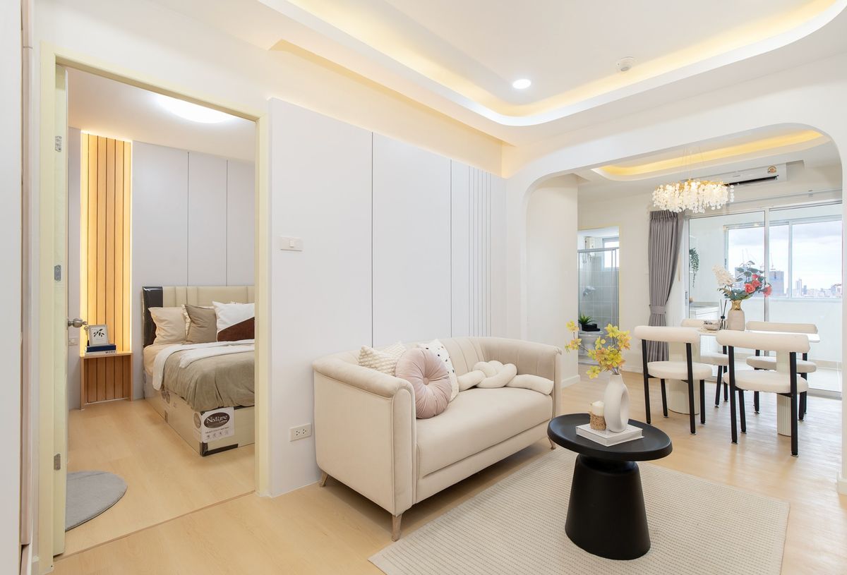 # City Home Ratchada - Pinklao 👉 Project map: https://maps.app.goo.gl/AsMvSim4GdmTVNqc7 . — Tall building, 25th floor — Large room 44.72 sq m. — 2 bedrooms 𝟏 Living room 𝟏 Separate kitchen with cabine