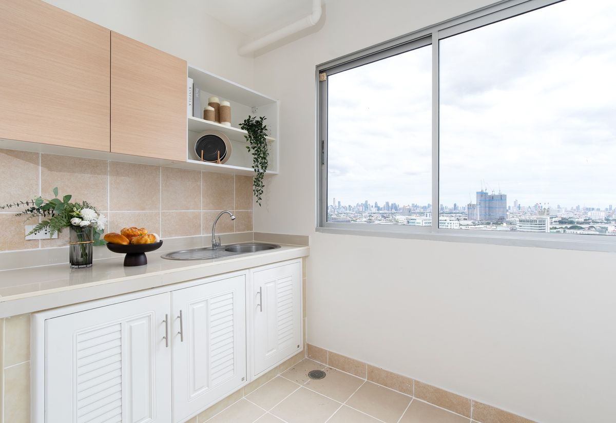 # City Home Ratchada - Pinklao 👉 Project map: https://maps.app.goo.gl/AsMvSim4GdmTVNqc7 . — Tall building, 25th floor — Large room 44.72 sq m. — 2 bedrooms 𝟏 Living room 𝟏 Separate kitchen with cabinets 𝐛𝐮𝐢𝐥𝐭-𝐢𝐧 — Arrange a living zone for . . [Common areas are complete, comfortable to live in] (𝟯0 baht/sq m.) # . — Swimming pool (large 8 x 38 meters) — Fitness — Security guard — CCTV project —Key Card door — Shops (15 units) — Garden (Roof Garden, sky garden) — Others (Fire protection system, Heat Detector and Fire Alarm, Hi-speed Internet Broadband) . 🚅 Convenient travel — Near the MRT Bang O, — Charansanitwong Road — Si Rat Expressway - Outer Ring Road — near Yanhee Hospital, — King Mongkut's University of Technology North Bangkok, Lotus's Charan Big C Wong Sawang