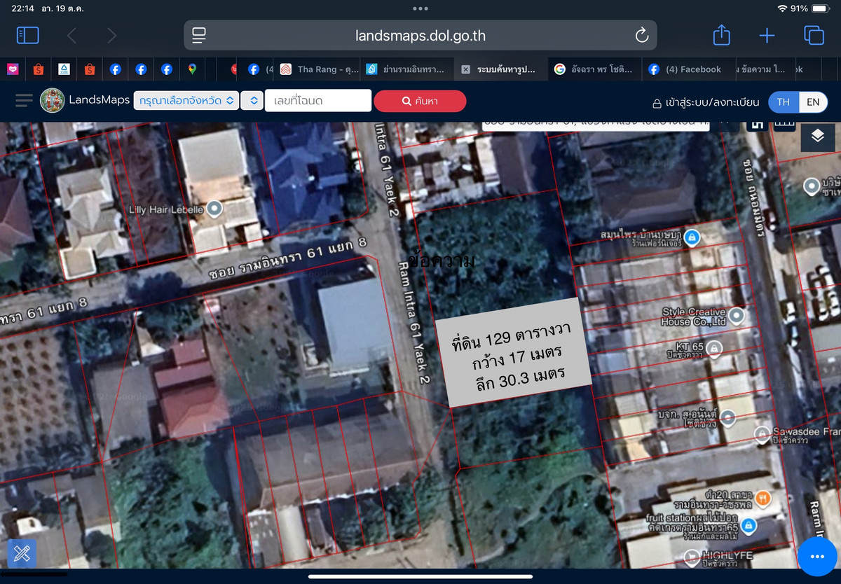 Land for sale, 129 square wah, Soi Ramintra 61, near the Pink Line, Watcharaphon Station.