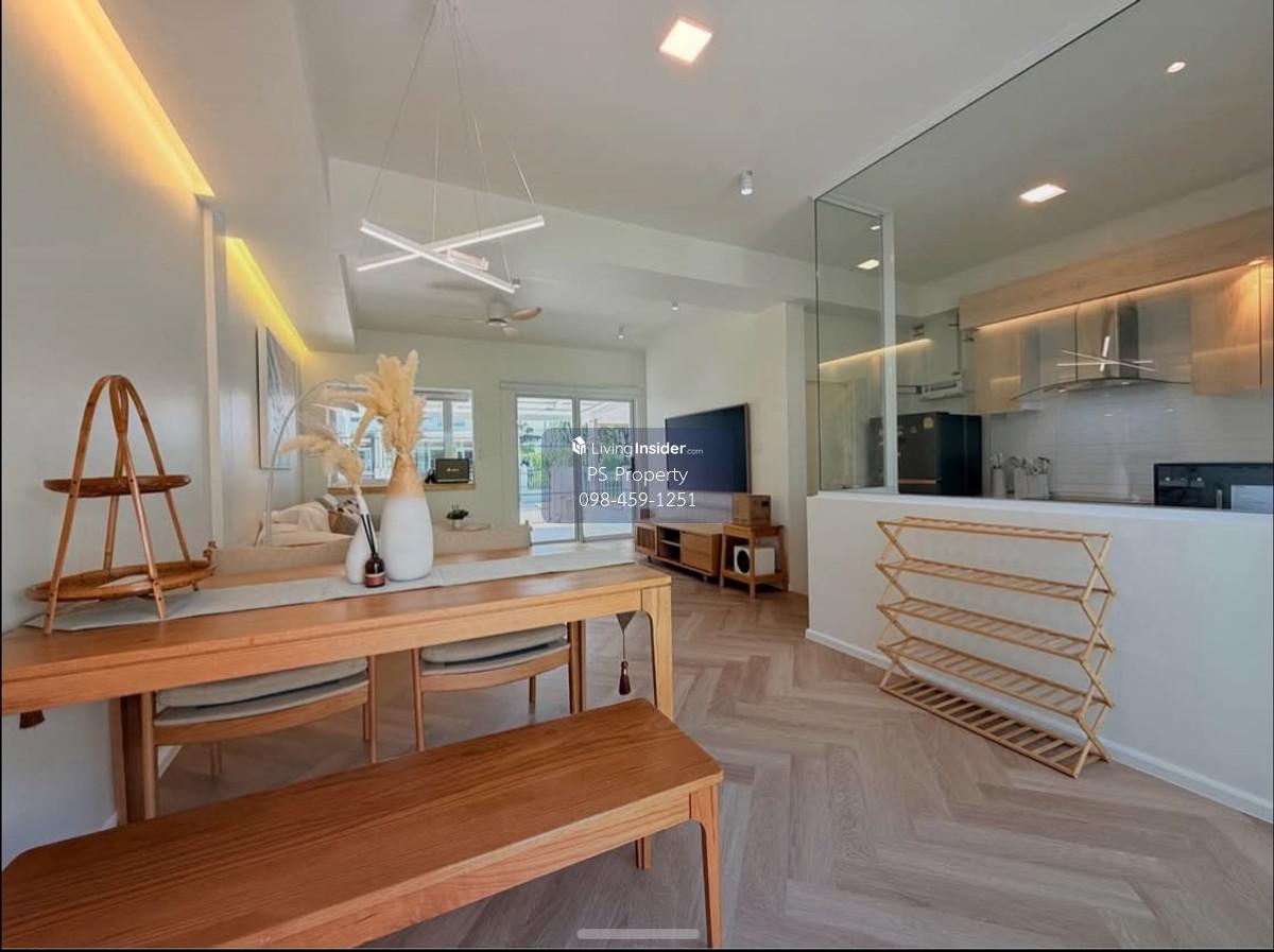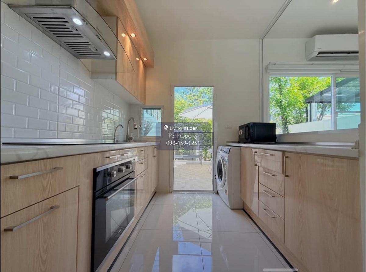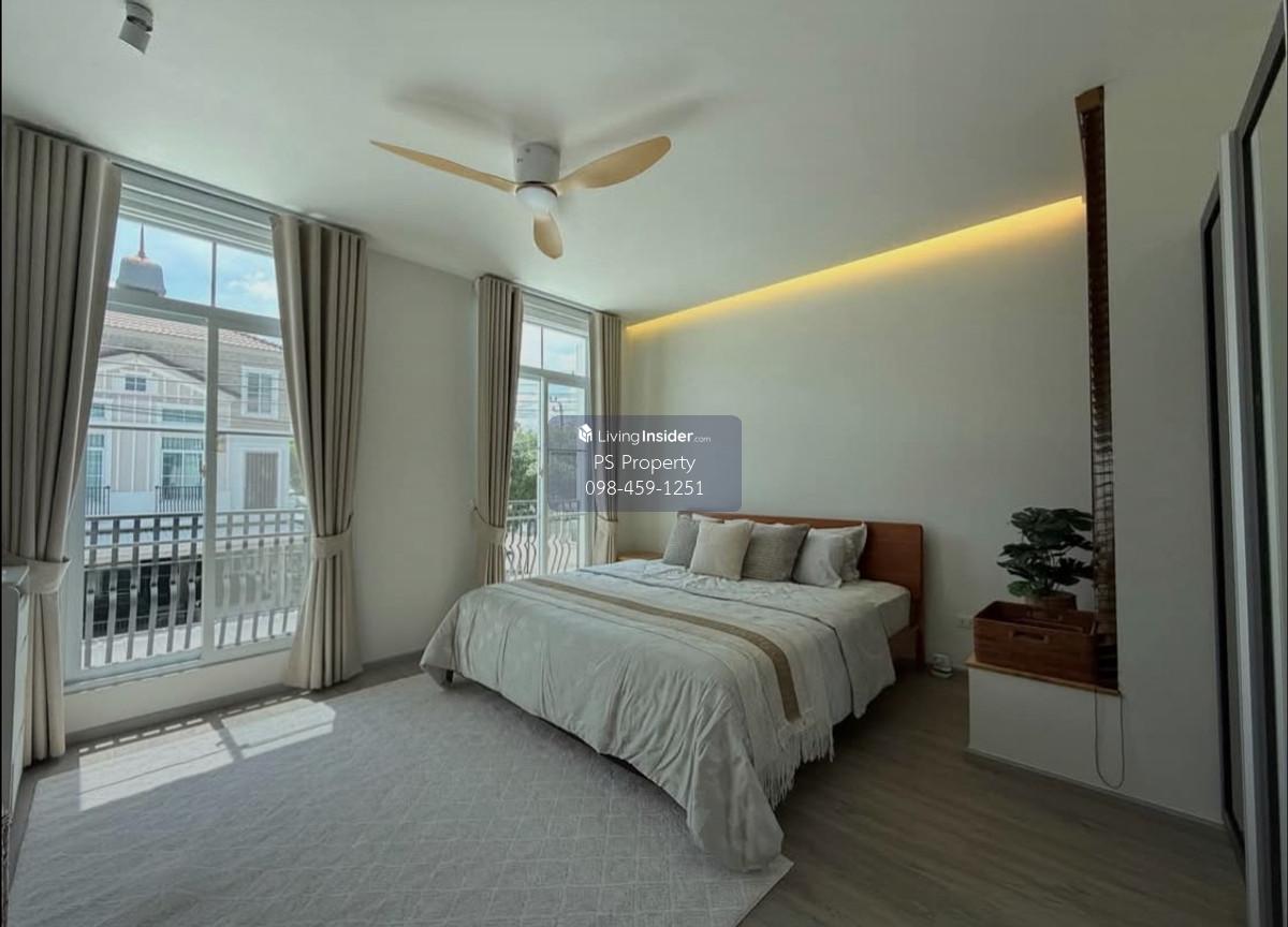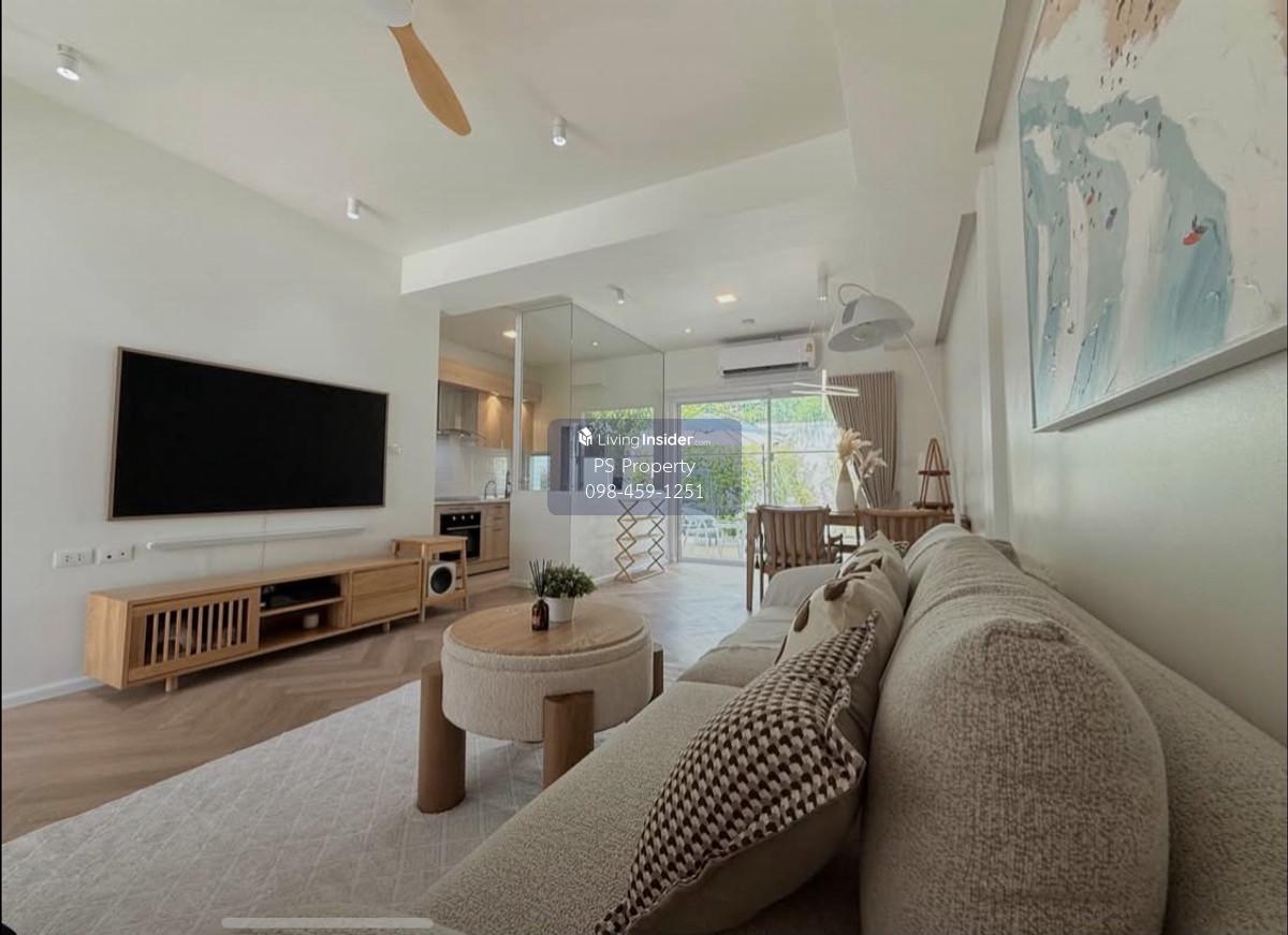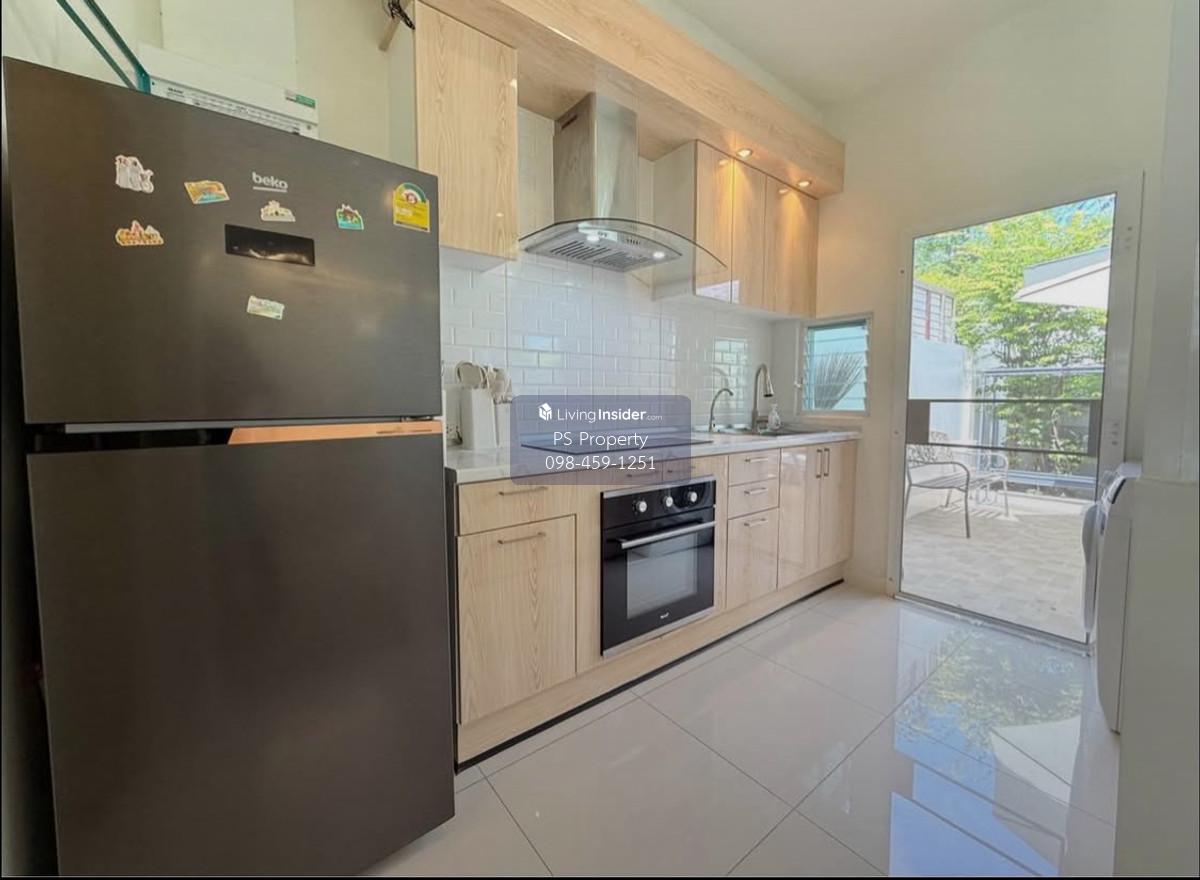 Price: 59,500 baht / month Usable area: 133 sq.m. Area: 33.25 sq.w. Floor: 2 3 bedrooms / 3 bathrooms / 1 living room / 2 parking spaces Amenities: CCTV, key card Access, fitness center, swimming pool, 24/7 security guard, co-working area, common area. Furniture included: TV, microwave, sofa, refrigerator, bed, air conditioner, water heater, Smoke Dispenser, shelf, TV cabinet, wardrobe, center table. House for rent! convenient transportation, near BTS, near the expressway, fully furnished Ready for viewing. Interested please contact: 📞Call center: Contact number 📱Hotline: Contact number 📲Whatsapp: Contact number 🖱️Line: @psproperty https://lin.ee/d8bpOBs Website: https://www.ps-property.co.th/
