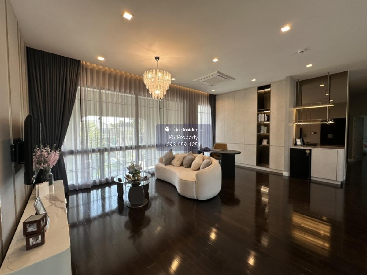 Price: 450,000 baht / month Usable area: 604 sq.m. Area: 127 sq.w. Floor: 2 5 bedrooms / 6 bathrooms / 1 living room / 3 parking spaces Amenities: CCTV, key card Access, fitness center, swimming pool, 24/7 security guard, co-working area, common area. Furniture included: TV, microwave, sofa, refrigerator, bed, air conditioner, water heater, Smoke Dispenser, shelf, TV cabinet, wardrobe, center table. House for rent! convenient transportation, near BTS, near the expressway, fully furnished Ready for viewing. Interested please contact: 📞Call center: Contact number 📱Hotline: Contact number 📲Whatsapp: Contact number 🖱️Line: @psproperty https://lin.ee/d8bpOBs Website: https://www.ps-property.co.th/
