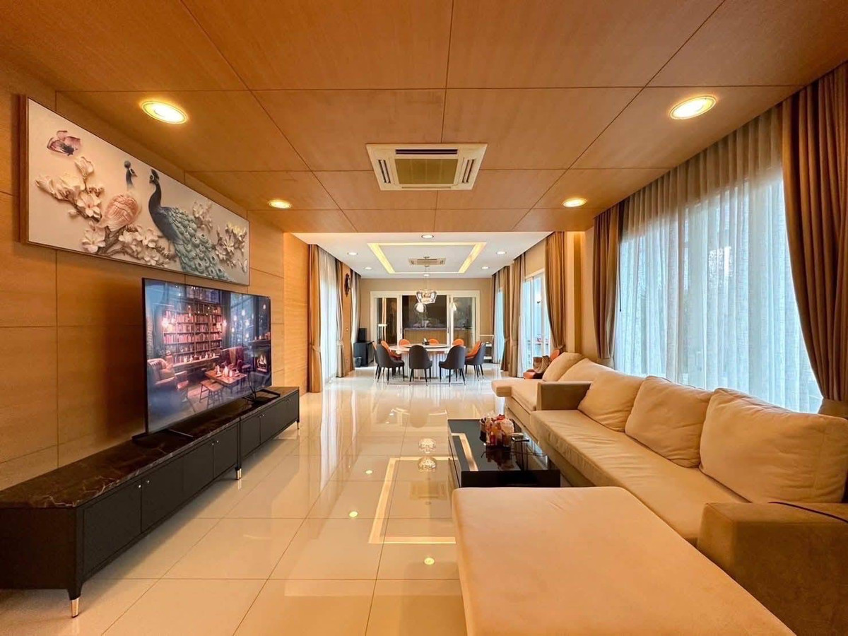 For Sale / Rent: Ultra Luxury Mansion in Windmill Golf Course, Bangna Km.10.5 A grand estate located within the prestigious Windmill Golf Course — offering serene surroundings, privacy, and breathtaking golf views. Property Details Land Area: 1.5 Rai Usable Area: 1,369 sq.m. 7 Bedrooms | 7 Bathrooms 2 Living Rooms | 3 Lounges | 2 Dining Areas 1 Home Office Thai Kitchen + Western Kitchen Separate Maid’s Quarter & Laundry Room Built-in furniture throughout, fully furnished with premium pieces 16 Air Conditioners / 8 TVs / 11 Refrigerators Ceiling height: 3.0 m (living) / 2.6 m (bedrooms) Balcony connecting 4 bedrooms Private Chlorine Swimming Pool (15m x 4.5m) with heated Jacuzzi Large fountain pond in number 8 shape 4 Indoor Parking Spaces + 10 Outdoor Deep foundation (23 meters) including private driveway Automatic remote gate system Price For Sale: 129,000,000 THB (Special Offer) For Rent: 750,000 THB/month Minimum 1-year lease (3-month deposit + 3-month advance payment) Nearby Locations Suvarnabhumi Airport Mega Bangna / Market Village / Central Bangna / Bangkok Mall Bitec Bangna Top international schools (Berkeley, Concordian, Verso, Wellington, and more) Samitivej Srinakarin / Thai Nakarin / Bangna / Chularat Hospitals Easy access to Burapha Withi Expressway, Outer Ring Road, and Motorway No.7 Close to BTS Phra Khanong and MRT Yellow Line Contact Petch for viewing: Tel/WhatsApp: Contact number LINE: @justrightpp or https://lin.ee/wNgmArV