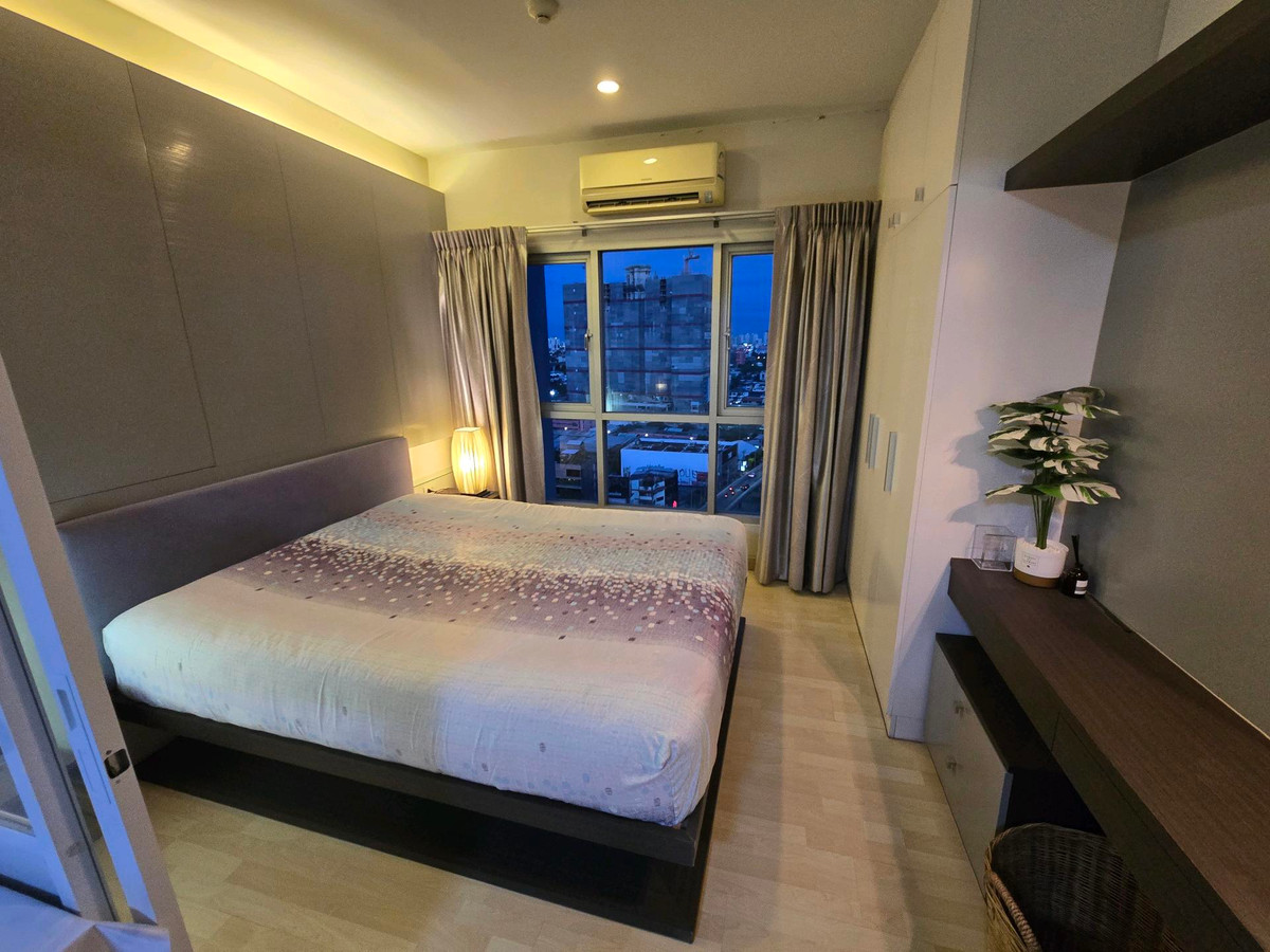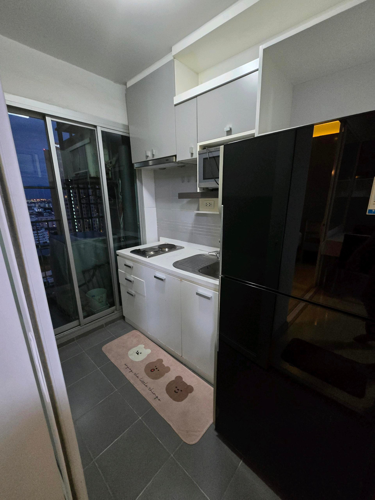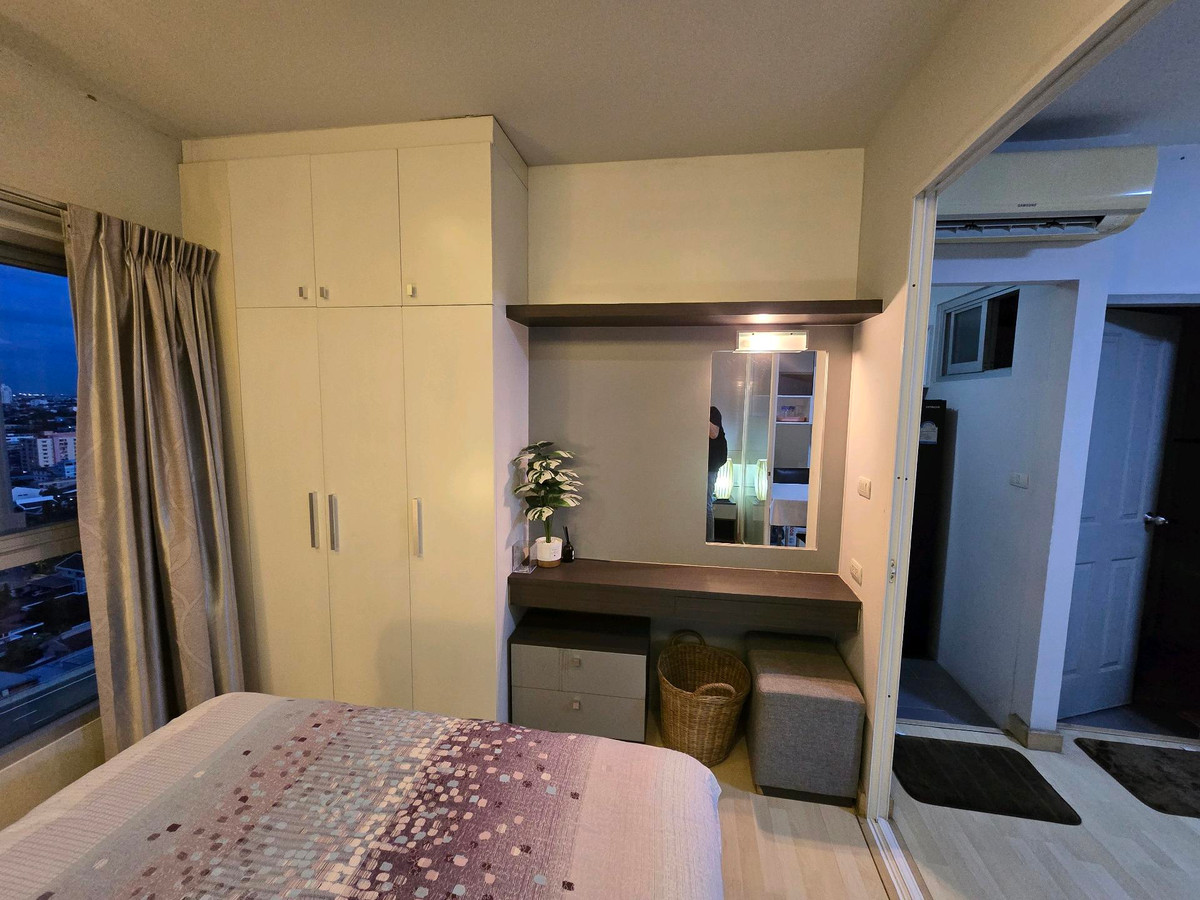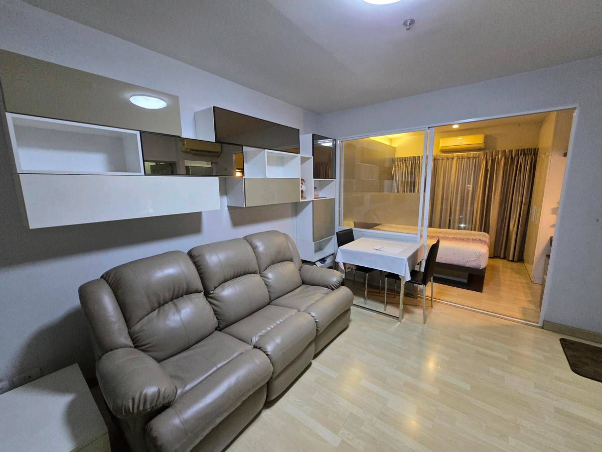 Condo for rent: The Leaf Phatthanakan, near Khlong Tan intersection Price 13,900 baht/month Room size 33.74 square meters, 1 bedroom Located on the 19th floor, view of the expressway, very good wind, receives sunlight in the morning , fully furnished 1).Smart TV Sumsung 43 inches 2). Hitachi 2 door refrigerator 3). Electrolux washing machine 4). Bosch vacuum cleaner 5). Electrolux microwave 6). Mazuma water heater 7). Electric stove with exhaust hood 8). 2 Sumsung air conditioners 9). Dining table + 2 chairs 10). 3-seat sofa, left and right, adjustable to sleep. 11). Built in SB, neat and beautiful storage shelves 12). Slumberland mattress 5 feet, sleep comfortably without back pain