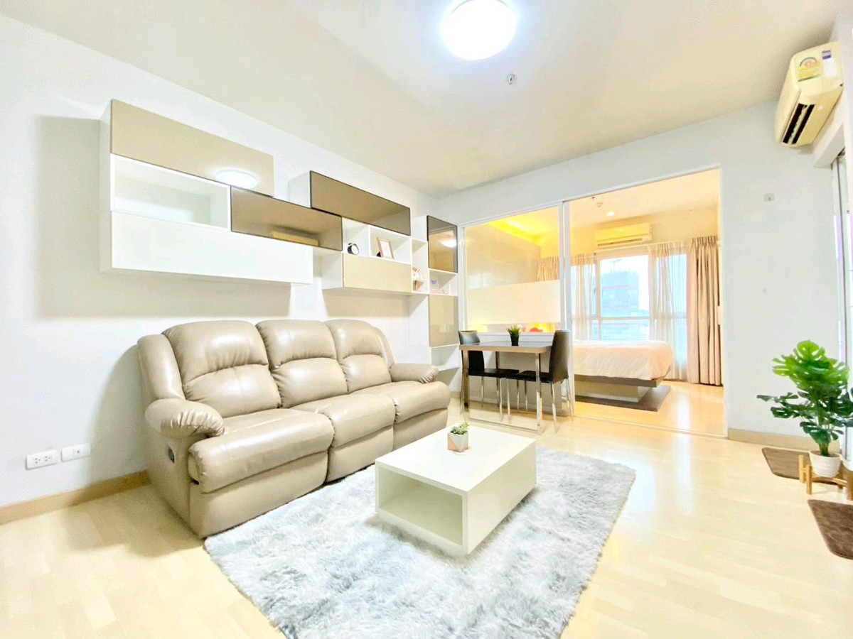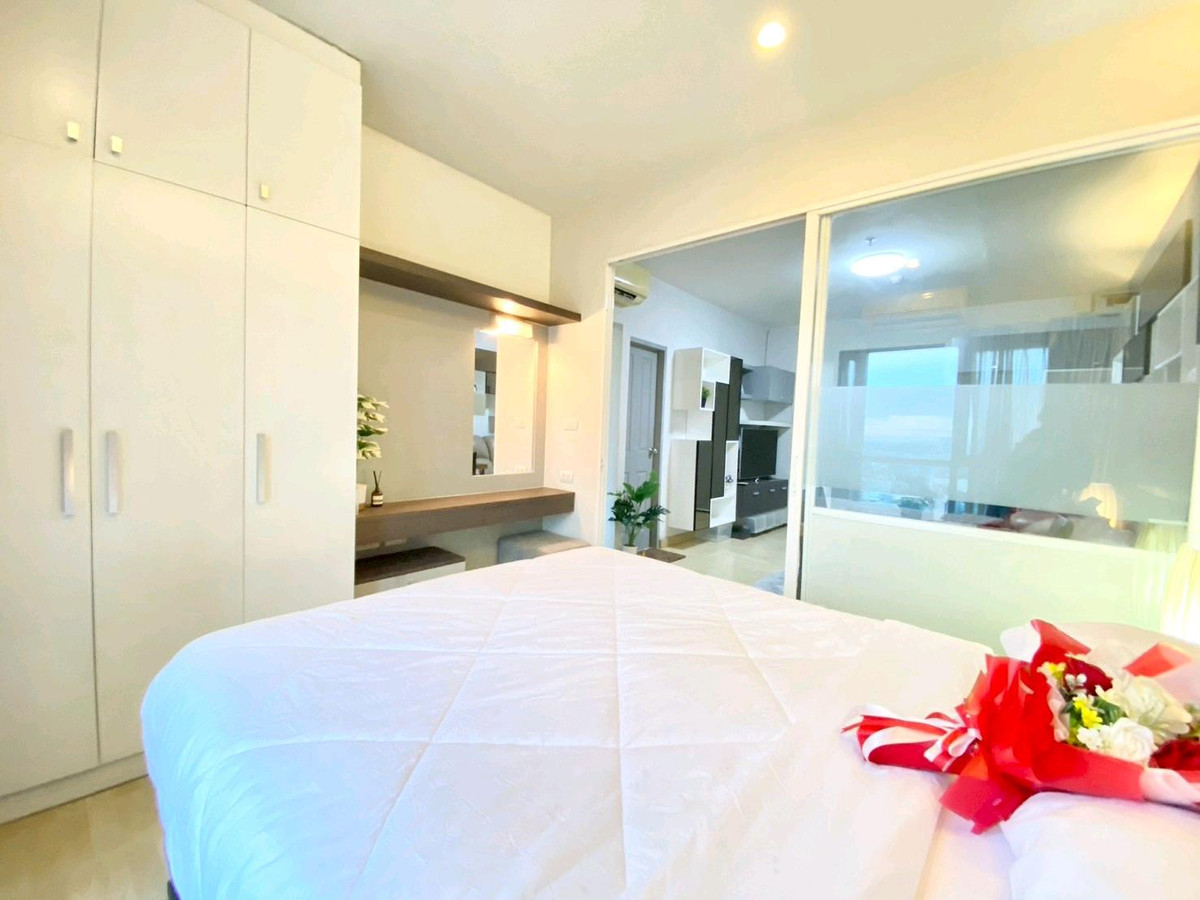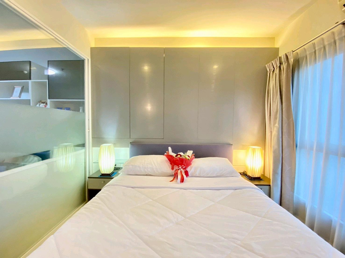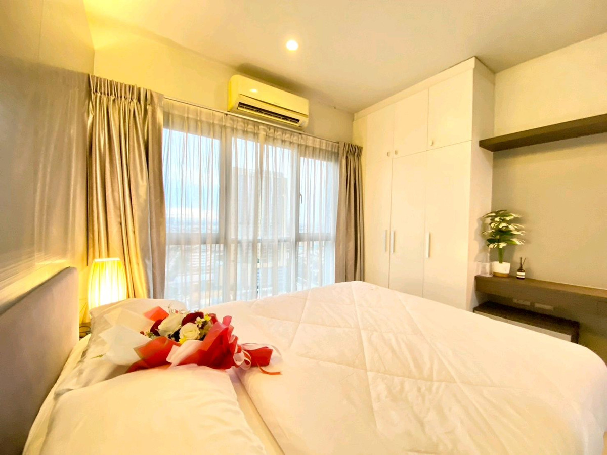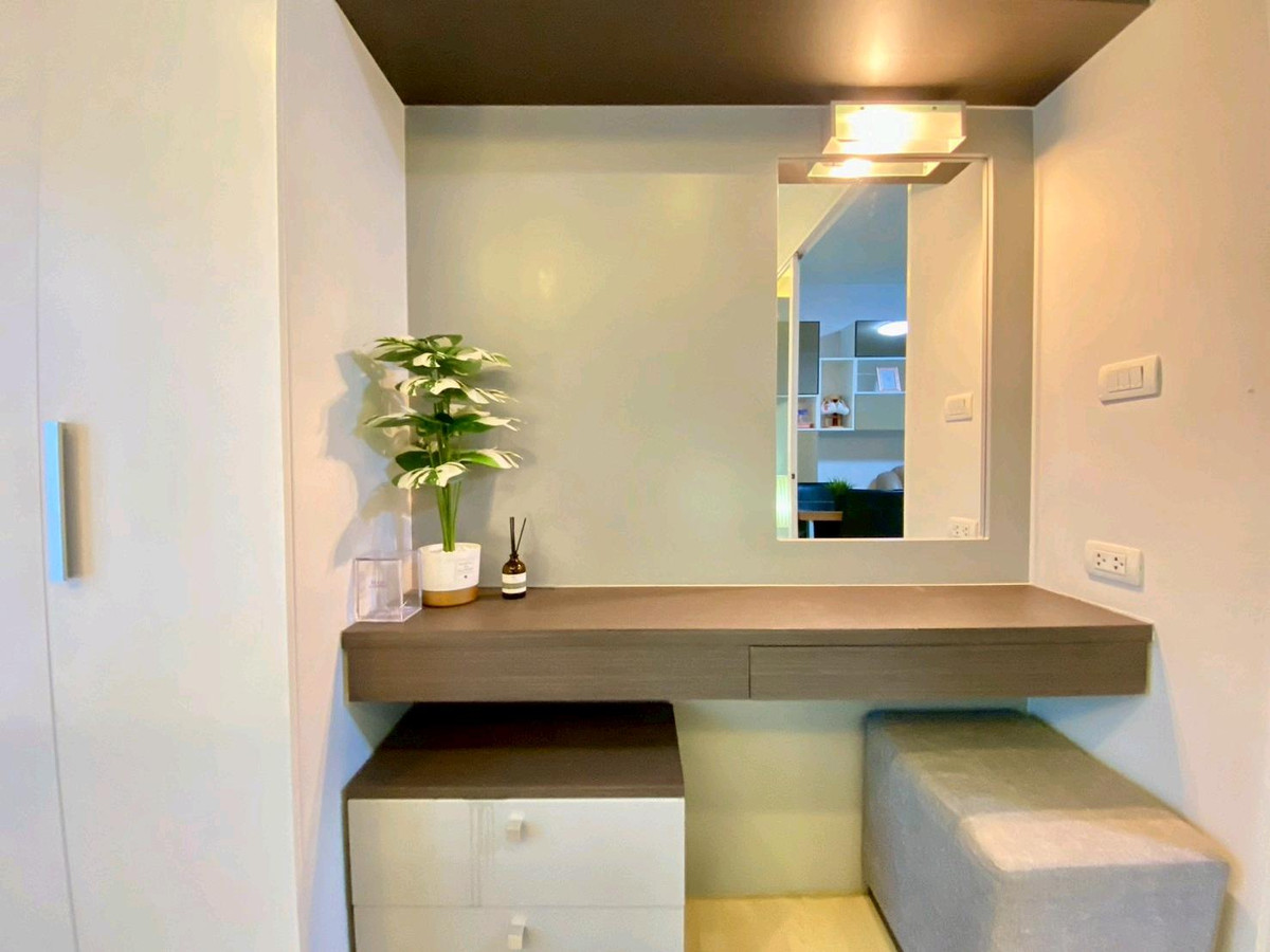 Condo for rent: The Leaf Phatthanakan, near Khlong Tan intersection Price 13,500 baht/month Room size 36 square meters, 1 bedroom Located on the 19th floor, view of the expressway, very good wind, receives sunlight in the morning , fully furnished 1).Smart TV Sumsung 43 inches 2). Hitachi 2 door refrigerator 3). Electrolux washing machine 4). Bosch vacuum cleaner 5). Electrolux microwave 6). Mazuma water heater 7). Electric stove with hood 8). 2 Sumsung air conditioners 9). Dining table + 2 chairs 10). 3-seat sofa, left and right, adjustable to sleep. 11). Built in SB, neat and beautiful storage shelves 12). Slumberland mattress 5 feet, sleep comfortably without back pain