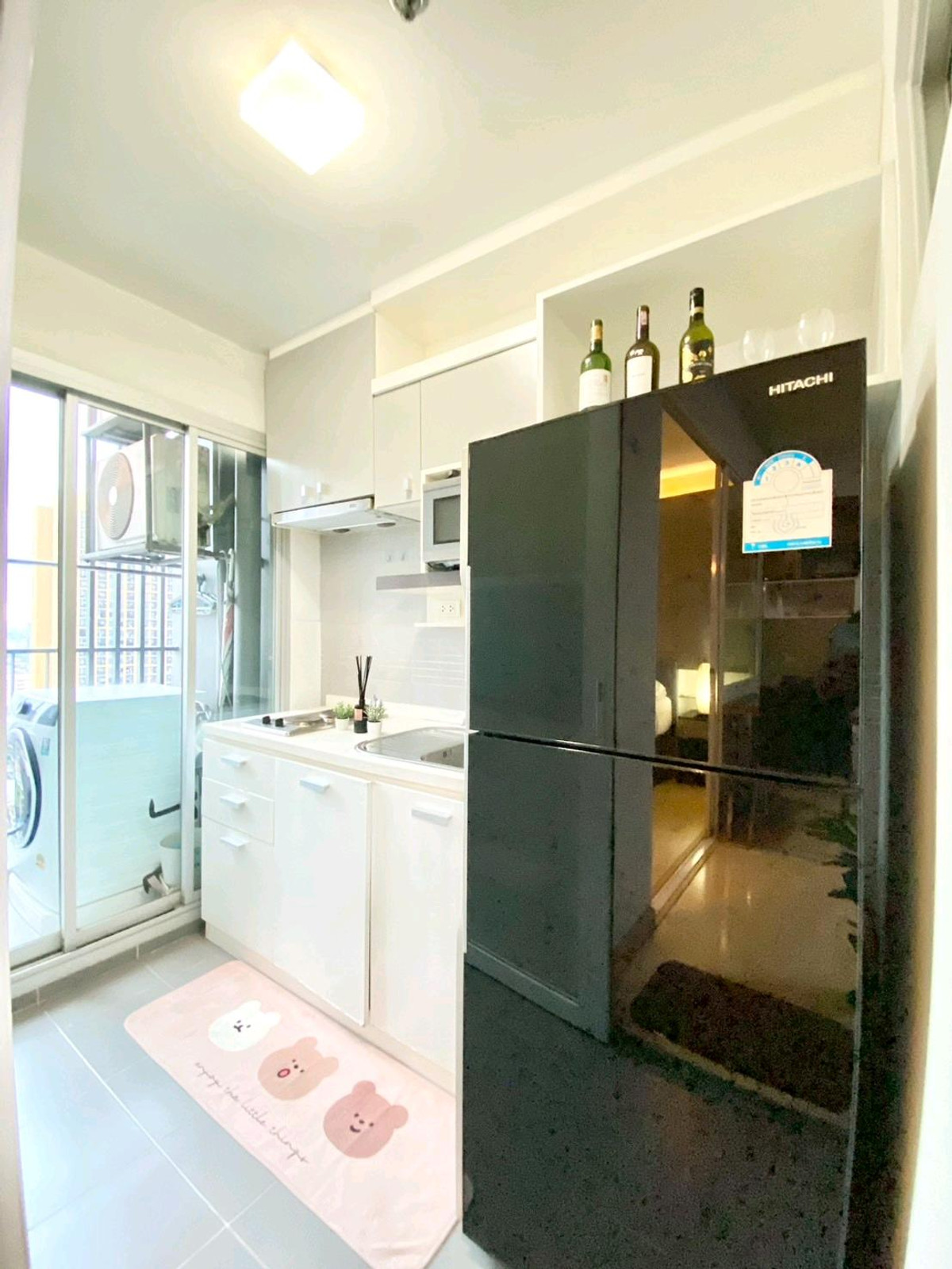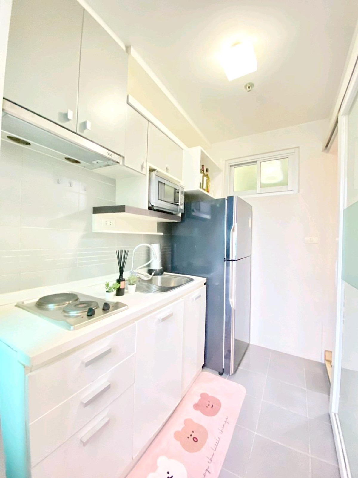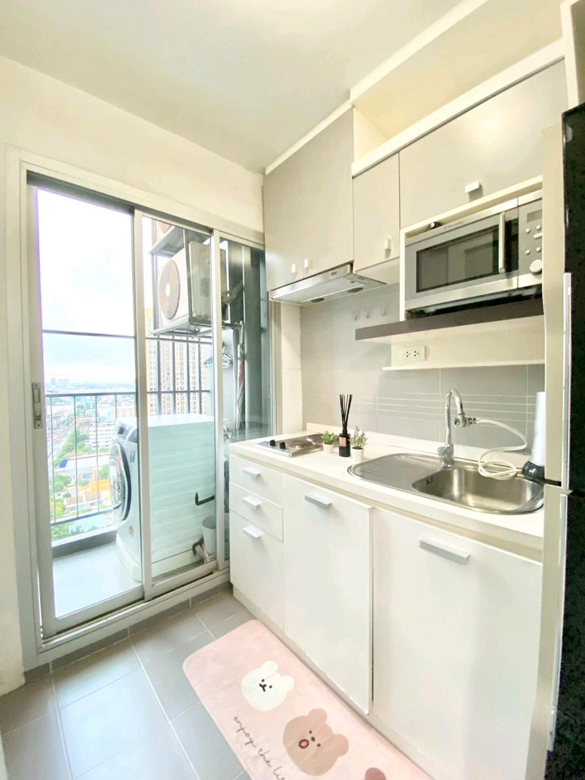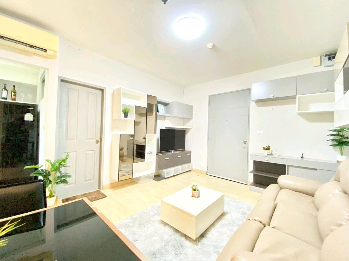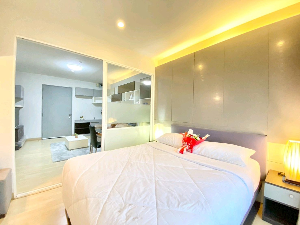 Condo for rent: The Leaf Phatthanakan, near Khlong Tan intersection Price 13,500 baht/month Room size 36 square meters, 1 bedroom Located on the 19th floor, view of the expressway, very good wind, receives sunlight in the morning , fully furnished 1).Smart TV Sumsung 43 inches 2). Hitachi 2 door refrigerator 3). Electrolux washing machine 4). Bosch vacuum cleaner 5). Electrolux microwave 6). Mazuma water heater 7). Electric stove with hood 8). 2 Sumsung air conditioners 9). Dining table + 2 chairs 10). 3-seat sofa, left and right, adjustable to sleep. 11). Built in SB, neat and beautiful storage shelves 12). Slumberland mattress 5 feet, sleep comfortably without back pain