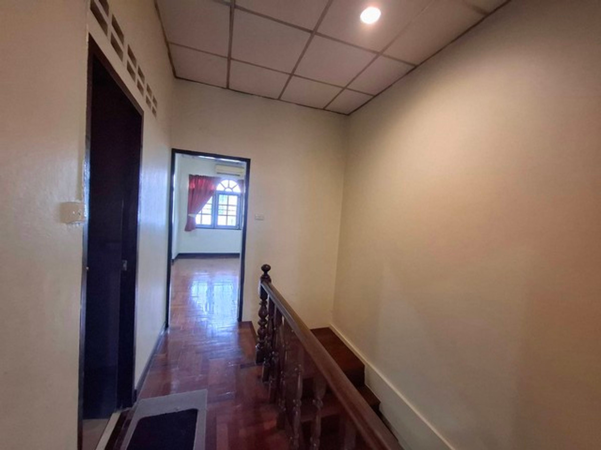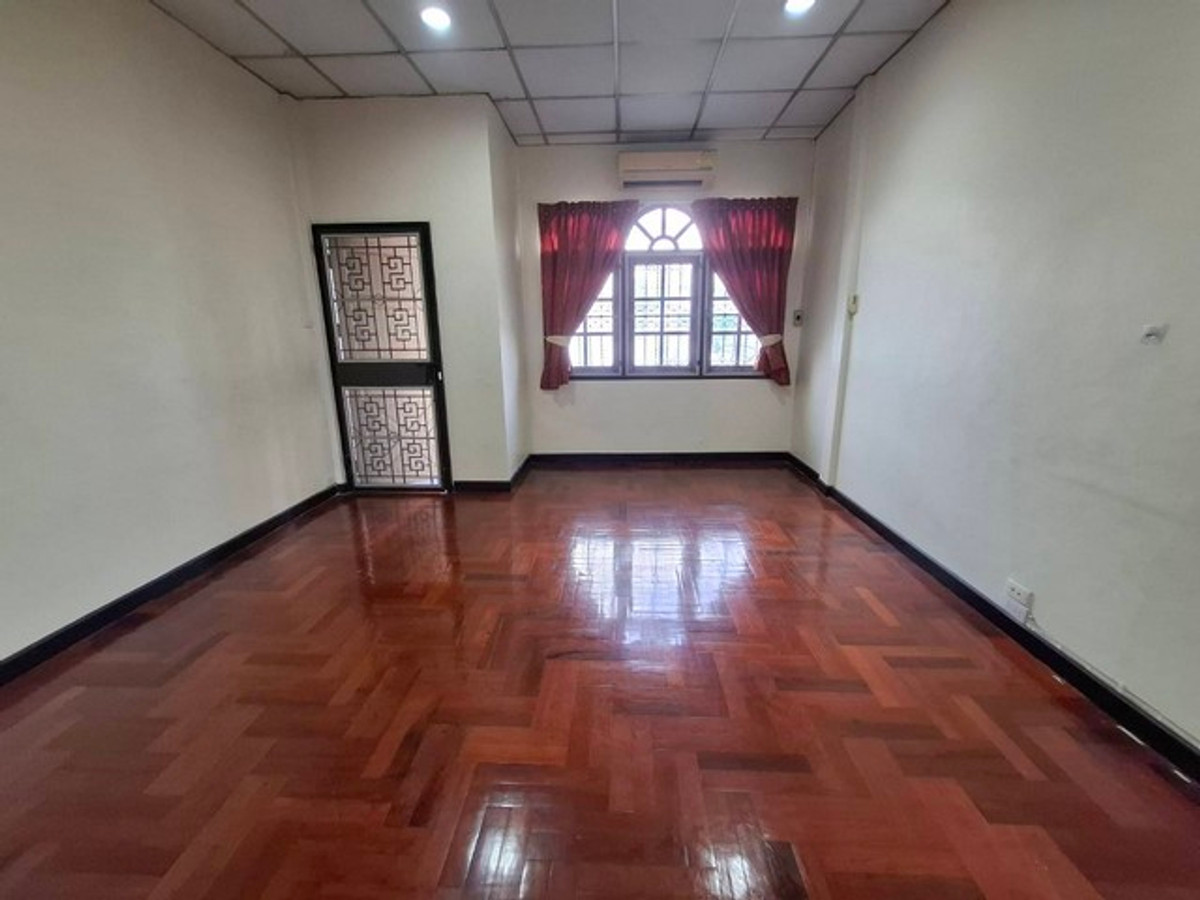 Townhouse for rent, 2 floors, 22 sq m., along Ramintra Expressway •2 bedrooms •2 bathrooms •1 kitchen, 2 air conditioners •with furniture as shown •parking for 1 car on the road Pradit Manutham (Road