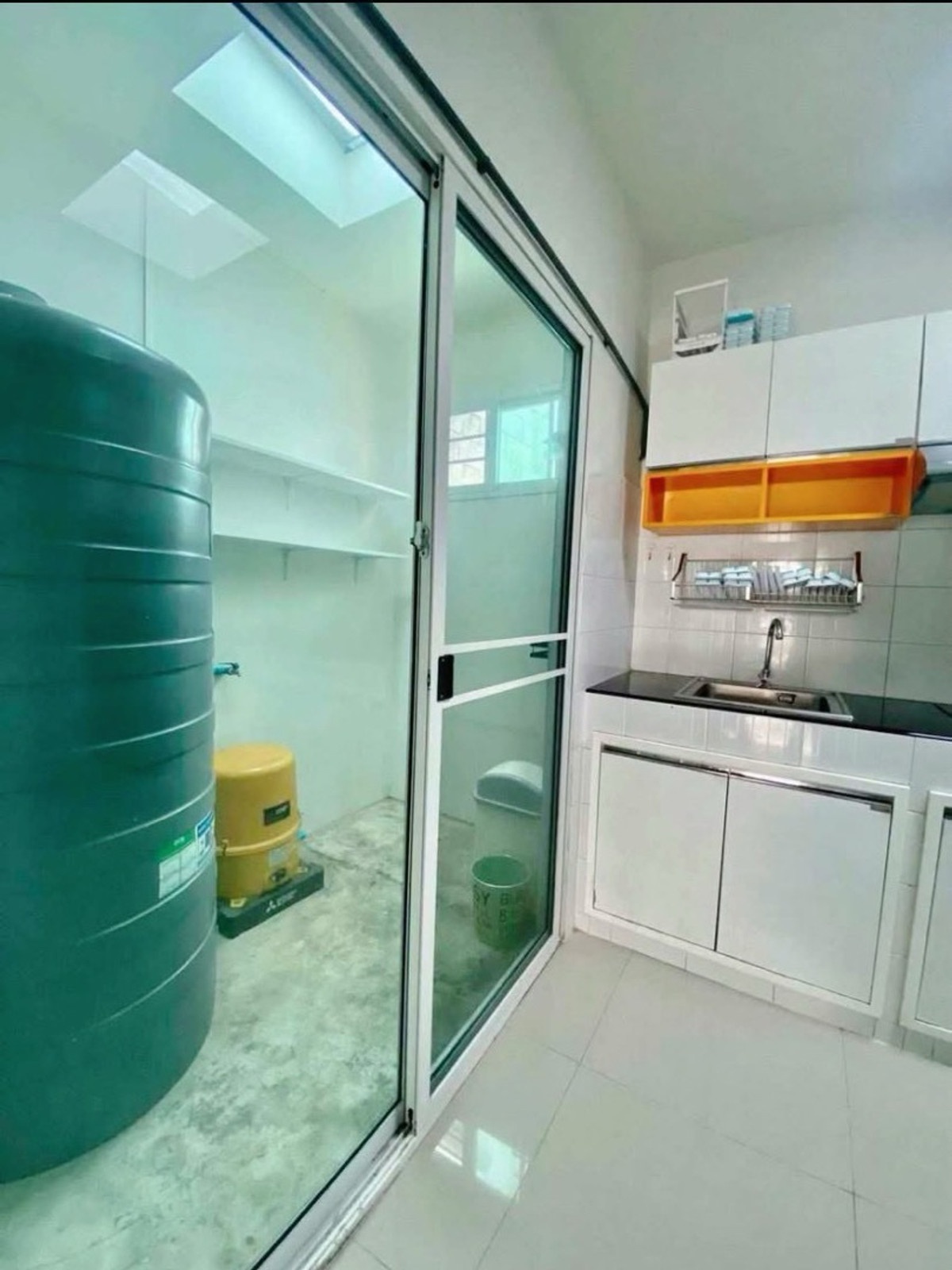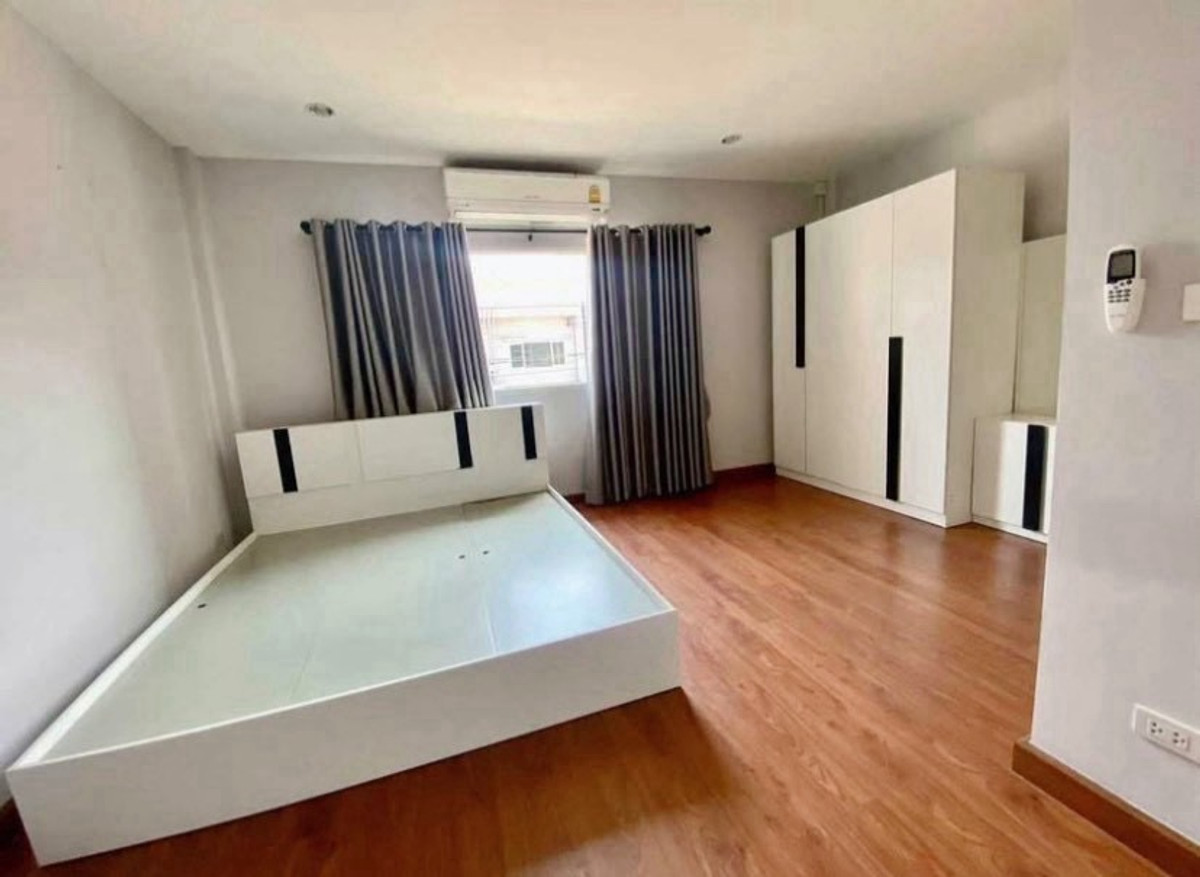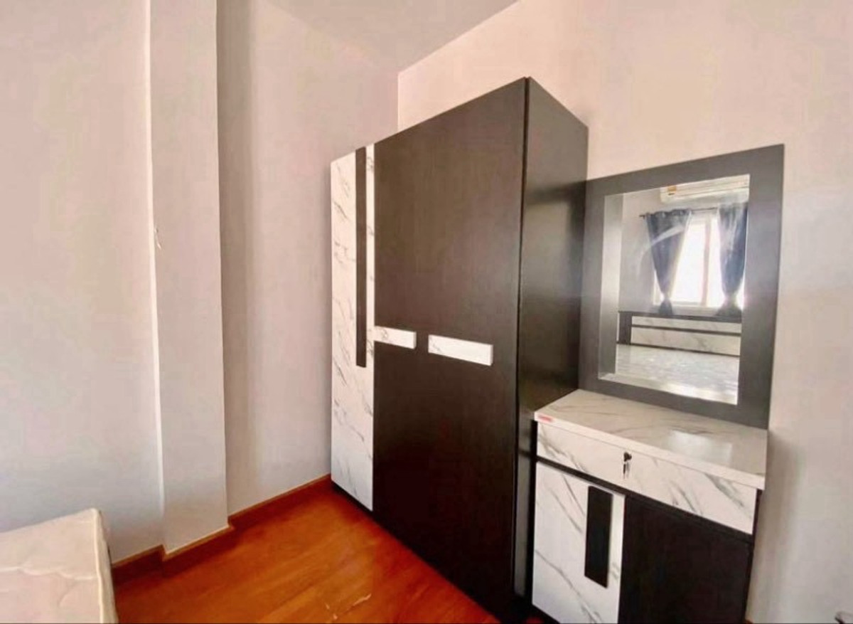 26,000.-For rent, 3-story townhome with furniture, Baan Klang Muang, Ramintra, Soi Kanchanaphisek 6/1, along the motorway. Near Fashion Island In front of the village there is 7-Eleven, CJ, market, restaurant , size 18 square meters , 3 bedrooms + 1 multi-purpose area upstairs , 3 bathrooms , 1 living room 1 kitchen counter There is a smoke hood in the back that is open. Can dry clothes behind the house , can park 2 cars in the house, has a canvas roof , furniture and electrical appliances - 3 air conditioners (1 per floor) - TV - 2 door refrigerator - Backyard washing machine - Water heater - Built-in kitchen counter - Stove and exhaust hood - Bed with mattress 1 Master bedroom upstairs - 1 large closet - dressing table There is a make-up light - L shaped sofa - TV shelf - Dining table set - Shelves Please do not accept pets ______________________________________ Rent 26,000 baht, 1 year contract First entry, 2 month warranty / 1 month advance ______________________________________ - Take a screenshot of the picture of the house - inform the month you will move in and contact Line ID at Line ID: @homestock (with @ as well) Tel. : Contact number XXX+B