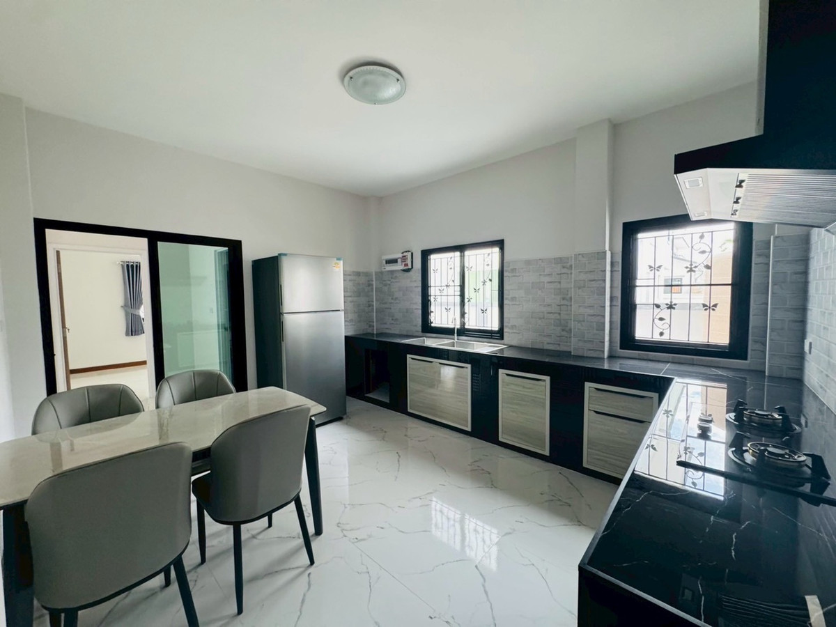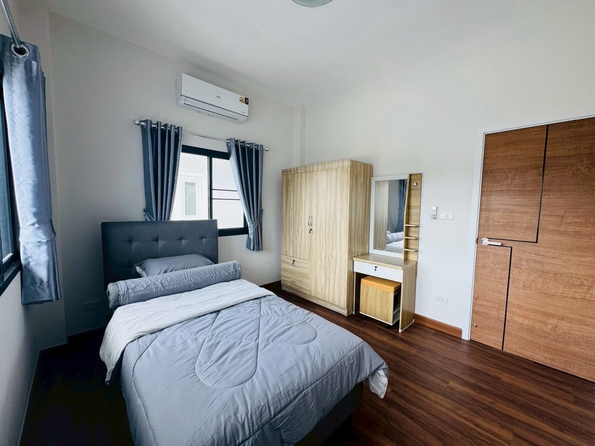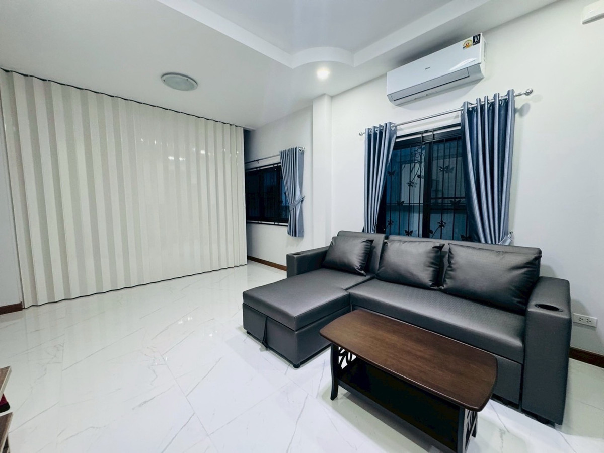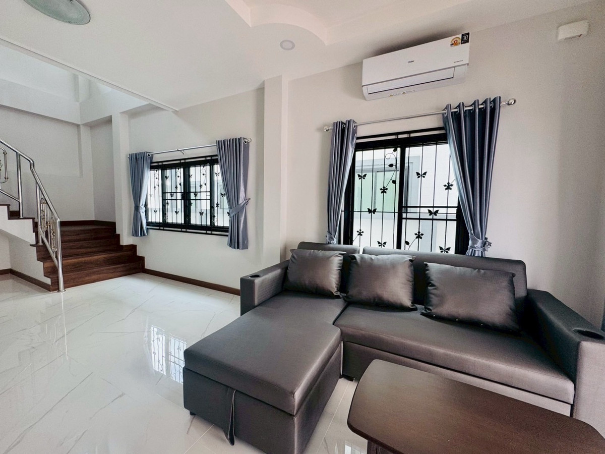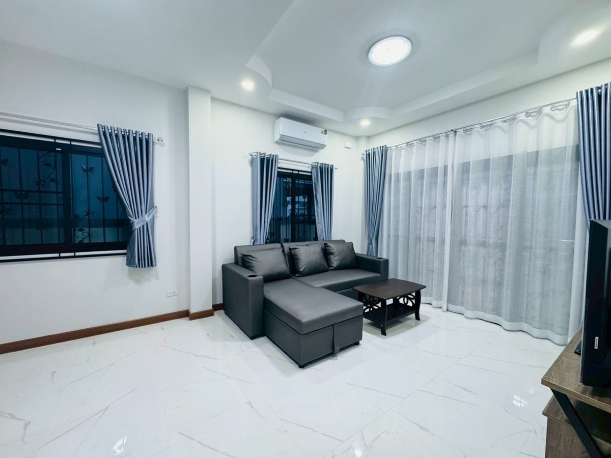 Suitable for families— Spacious—accepts animals 📌Just finished building! New furniture + electrical appliances, every piece unpacked (5 air conditioners) 🛏️3 bedrooms | 1 office room (empty room) | 🚿3 bathrooms | usable area 132.5 sq m. 🥘Large kitchen — suitable for serious cooking. 🌳There is a garden of the project, the view is open and airy, not uncomfortable. 🐶 Selling points for animal lovers ✅ Accepts small pets. ✅ No need to pay common fees. ✅Safe, private, good atmosphere 📍Very convenient location -Next to PTT gas station (there are restaurants, cafes, 7-11, beauty salons) -Easy to travel, can enter and exit in many ways. -Near Varee International School / Montfort / Unity etc. 💰Rent 32,000 baht/month 📆Minimum contract 1 year | 2 months insurance + 1 month advance If interested, contact Ploy Ploy. Tel / Contact number