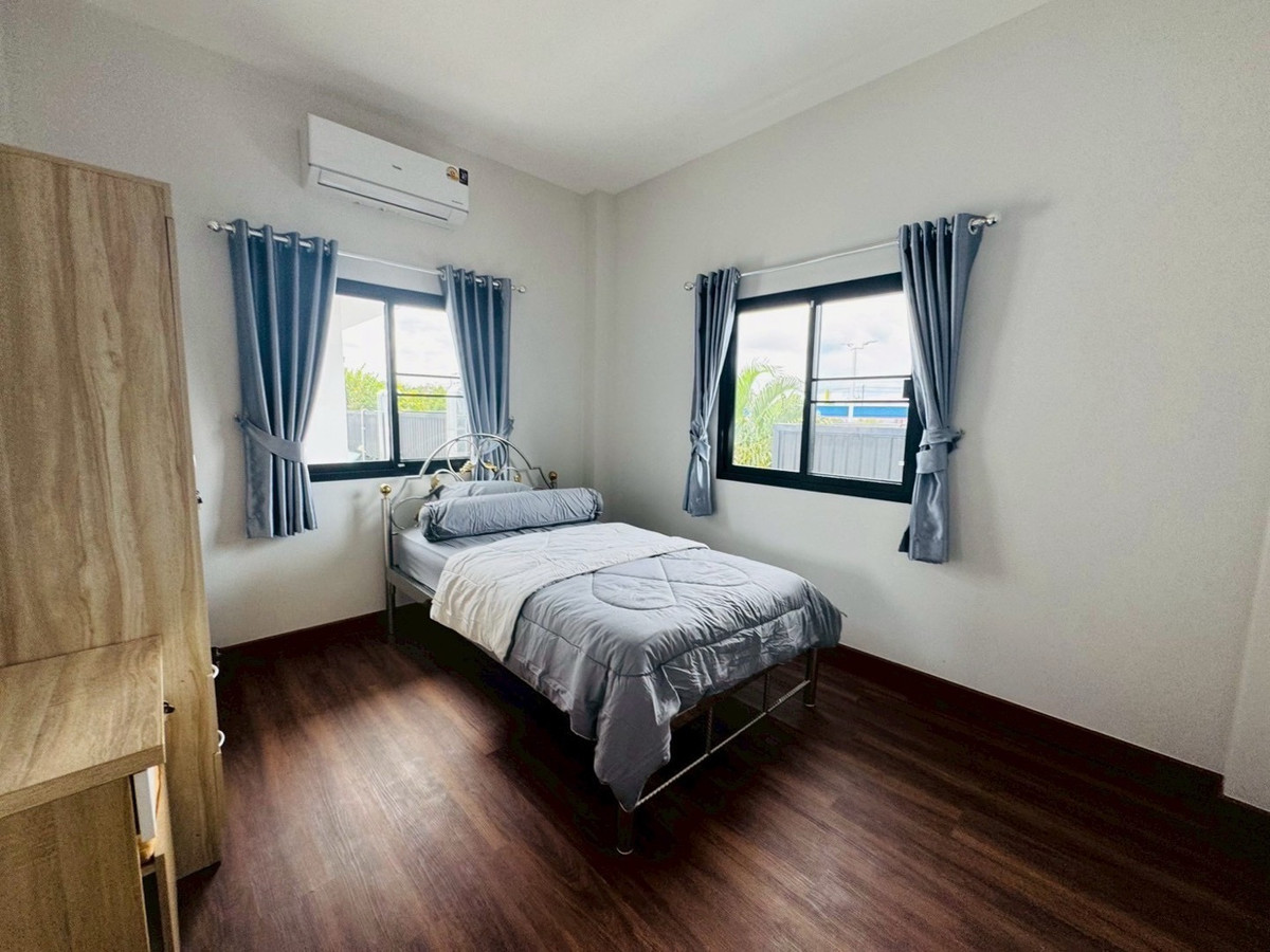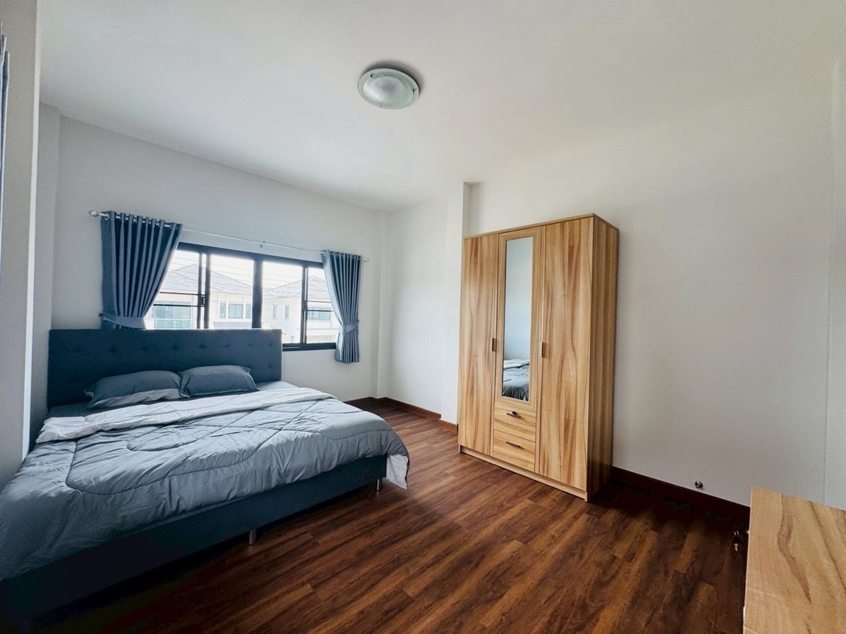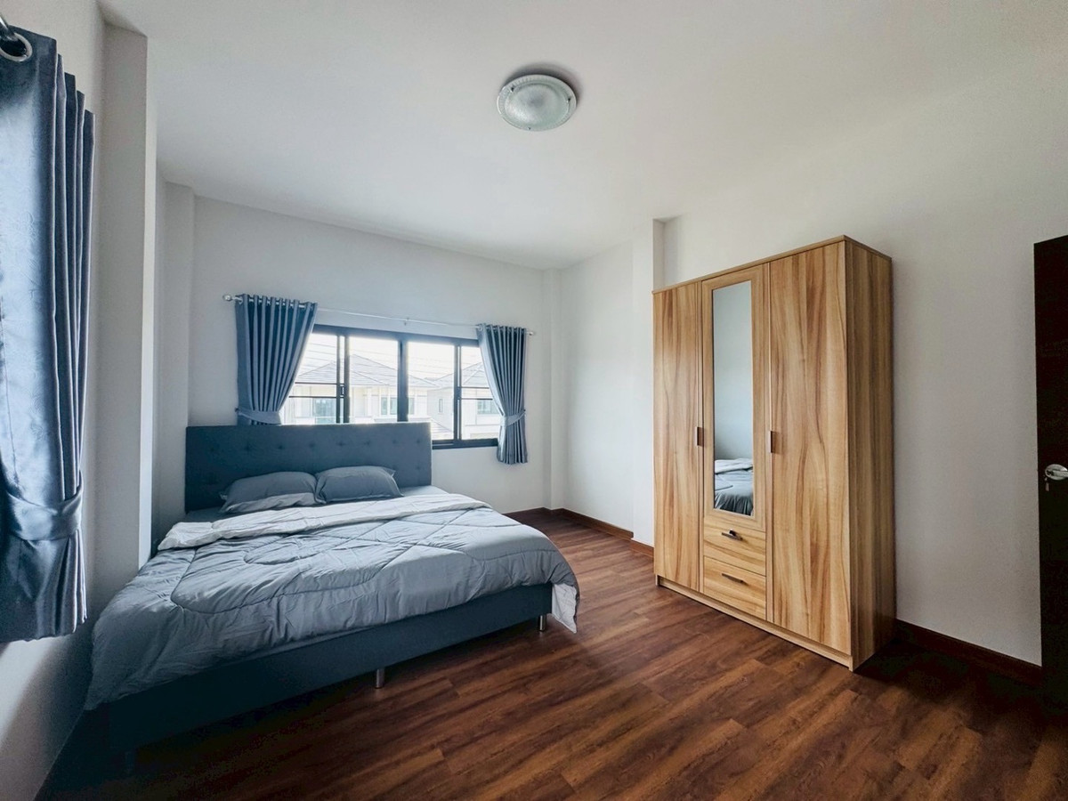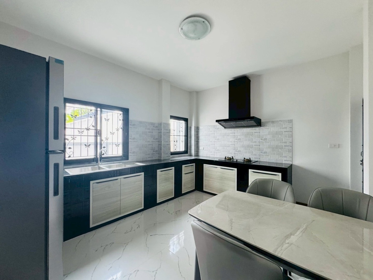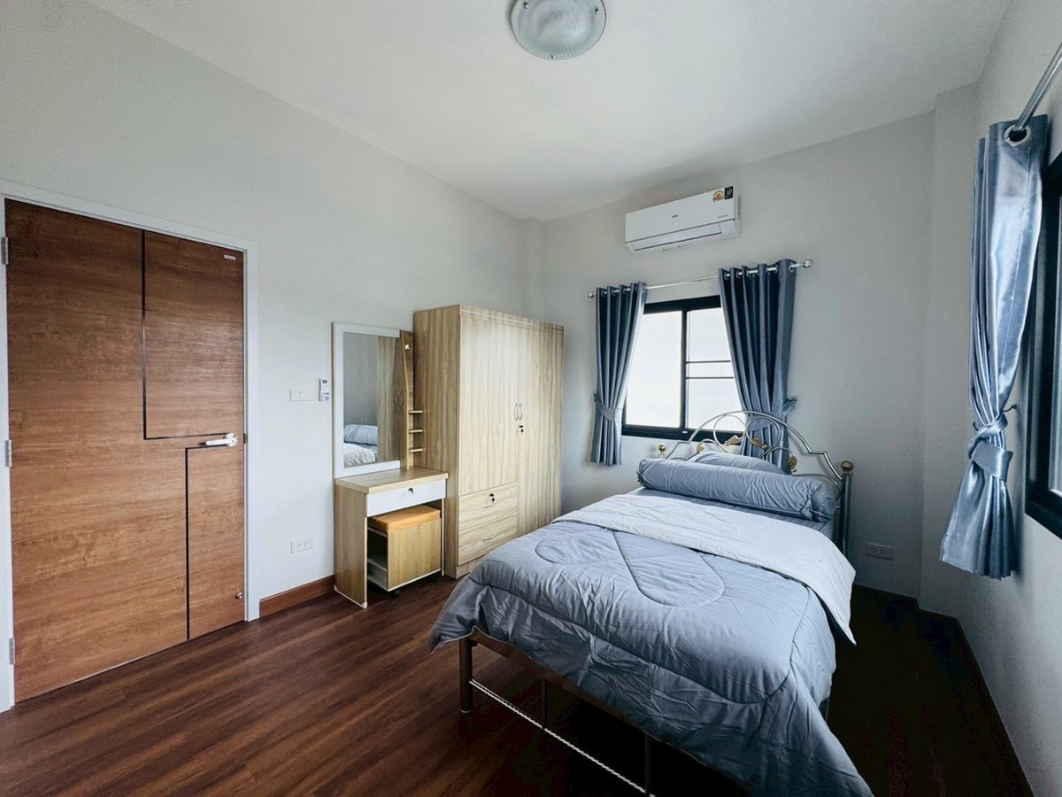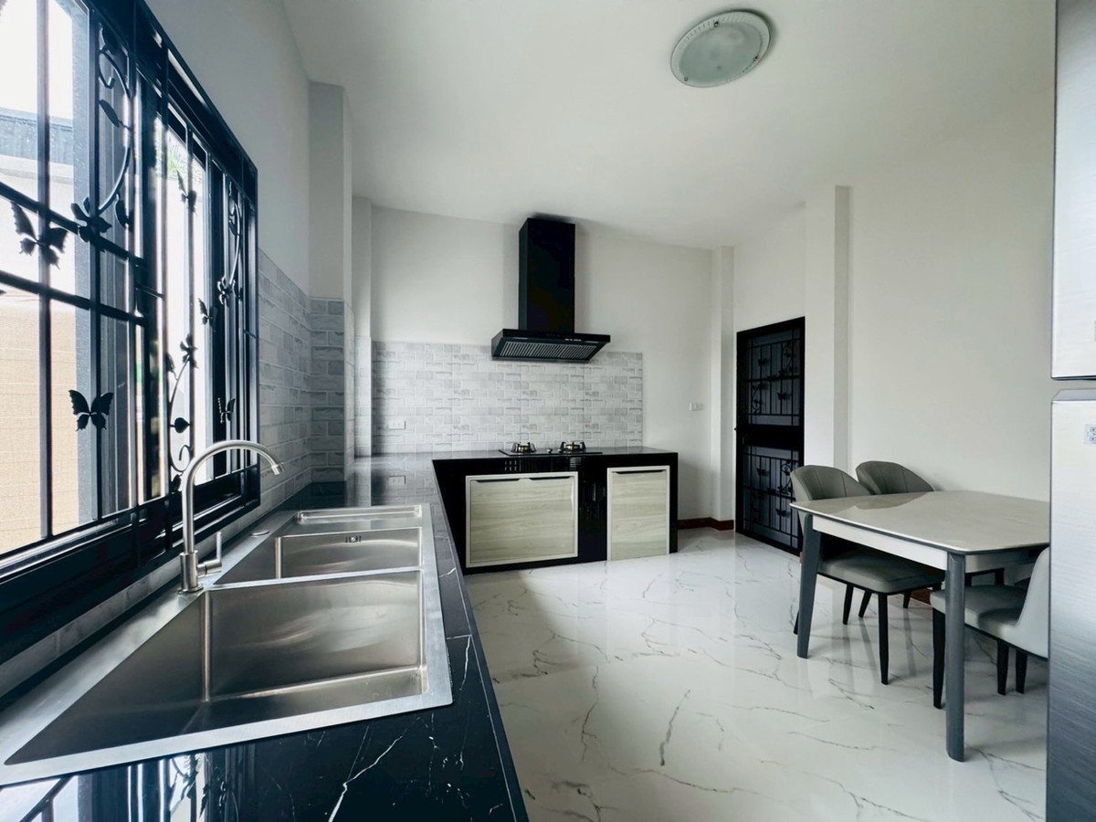 Suitable for families— Spacious—accepts animals 📌Just finished building! New furniture + electrical appliances, every piece unpacked (5 air conditioners) 🛏️3 bedrooms | 1 office room (empty room) | 🚿3 bathrooms | usable area 132.5 sq m. 🥘Large kitchen — suitable for serious cooking. 🌳There is a garden of the project, the view is open and airy, not uncomfortable. 🐶 Selling points for animal lovers ✅ Accepts small pets. ✅ No need to pay common fees. ✅Safe, private, good atmosphere 📍Very convenient location -Next to PTT gas station (there are restaurants, cafes, 7-11, beauty salons) -Easy to travel, can enter and exit in many ways. -Near Varee International School / Montfort / Unity etc. 💰Rent 32,000 baht/month 📆Minimum contract 1 year | 2 months insurance + 1 month advance If interested, contact Ploy Ploy. Tel / Contact number