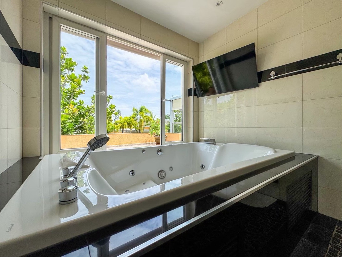 SIAM ROYAL VIEW PATTAYA Village (FOR SALE AND AVAILABLE) For rent For sale and rent 🔅 Land area 2,400 sq m. 🔅 uses space 1,000 sq m. 🔆 Beautiful, private plot in the corner 🔅 Very good location 🔅The house has very large lawn (enough for another building) 🔅 Very privacy Half 1 Rai of land size in a luxury village. Beautiful plot in the corner. Rare piece it’s hard to find. ------------------ 7 bedrooms 8 Bathrooms Large double living room Dining Room Kitchen Common room Double volume 15 Parkings ------------------ ⚜️ Selling price 99MB!!! ⚜️ Renting price 180,000 Baht/month Location : https://maps.app.goo.gl/GRg5YiEbSpPF12pK9?g_st=ipc SIAM ROYAL VIEW PATTAYA Village (FOR SALE AND AVAILABLE) For sale and rent Details : ▪️ Land size 600 square meters ▪️ Usable area 1,000 square meters ▪️ 7 bedrooms / 8 bathrooms ▪️ Parking for 15 cars ▪️ Corner back ▪️ Private swimming pool Price : ▪️Selling for 99,000,000.- (transfer half each) ▪️Rent 180,000.-/ month