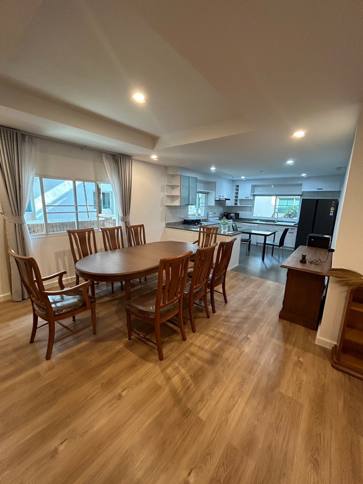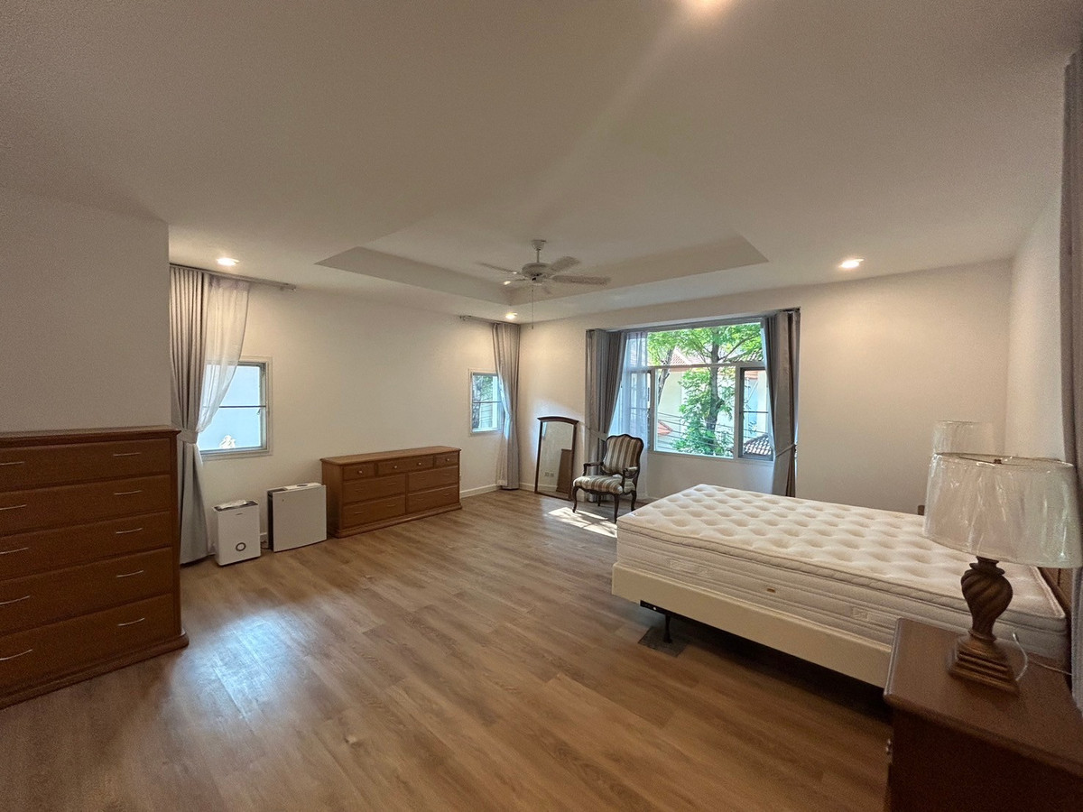Single house for rent, Nichada Thani, 4 bedrooms,Luxury near ISB_Sunshine International School_Regent . >>>House details Regent - Usable area 400 square meters - Bedrooms: 4 rooms - Bathrooms: 4 rooms - Kitchen: 1 room - Living room: 1 room - Parking space: 2 cars - Dining room - Multi-purpose washing area . >>>Furniture and electrical appliances - Sofa - Dining table - Work desk - Bed & mattress - Cabinet - Curtains - Air conditioner - Refrigerator - Kitchen set - Stove - Smoke hood & stove - Oven . >>>Project Highlights - Location with many entrances and exits - High project quality Good security system - Complete facilities - Suitable for families and lifestyles that require space - Pleasant environment A lot of green space . >>>Facilities within the project - ISB International School - Fitness - Sports Center - Olympic standard swimming pool - Squat court - Supermarket - Hospital - Christian church - Japanese restaurant -Starbuck - CCTV - 24 hour security . >>>Nearby places - Don Mueang Airport - Pink Line MRT station - Si Rat Expressway - Muang Thong Thani - Central Chaengwattana - Chan at The Avenue Chaengwattana 14 - World Medical Center Hospital - PIM Demonstration School - Saint Frank Muang Thong School =============== Interestet Contact Contact number Line Id : @docondo