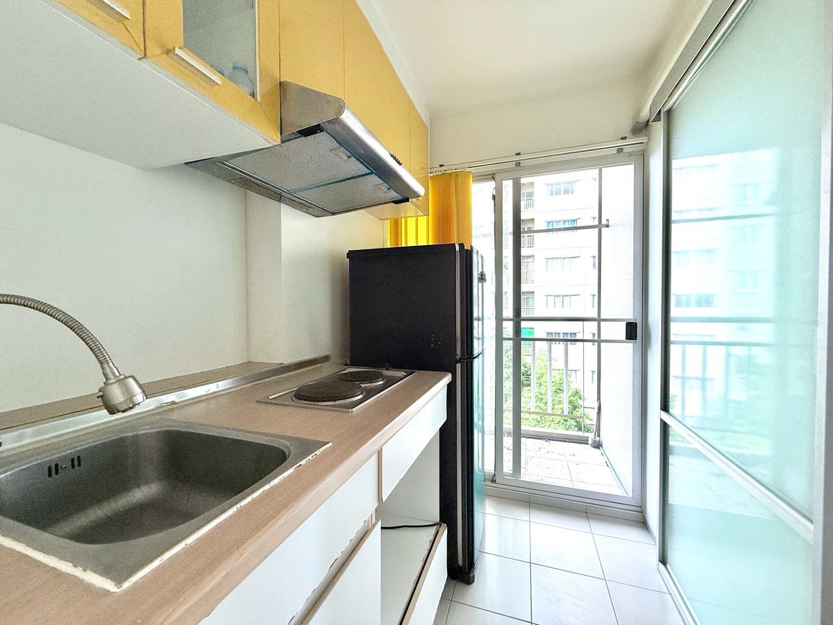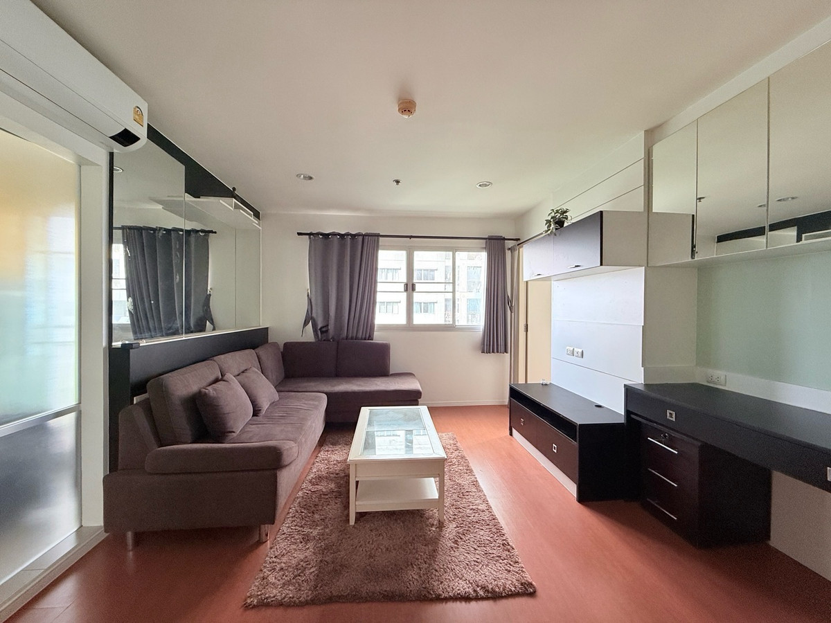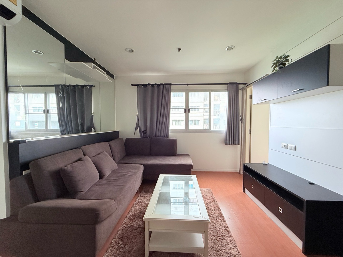 Lumpini Mega City Bangna | Building E 2-bedrooms, 1-bathroom unit Size: 45.68 sq.m. | 5th floor | Open view, North-facing window Fully furnished as shown in photos • 3 Air conditioners • Hood + Stove