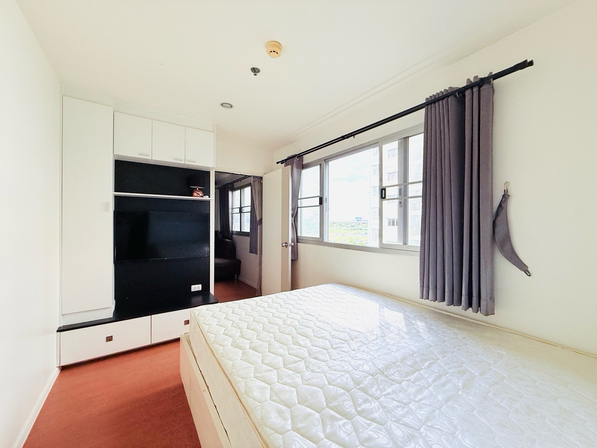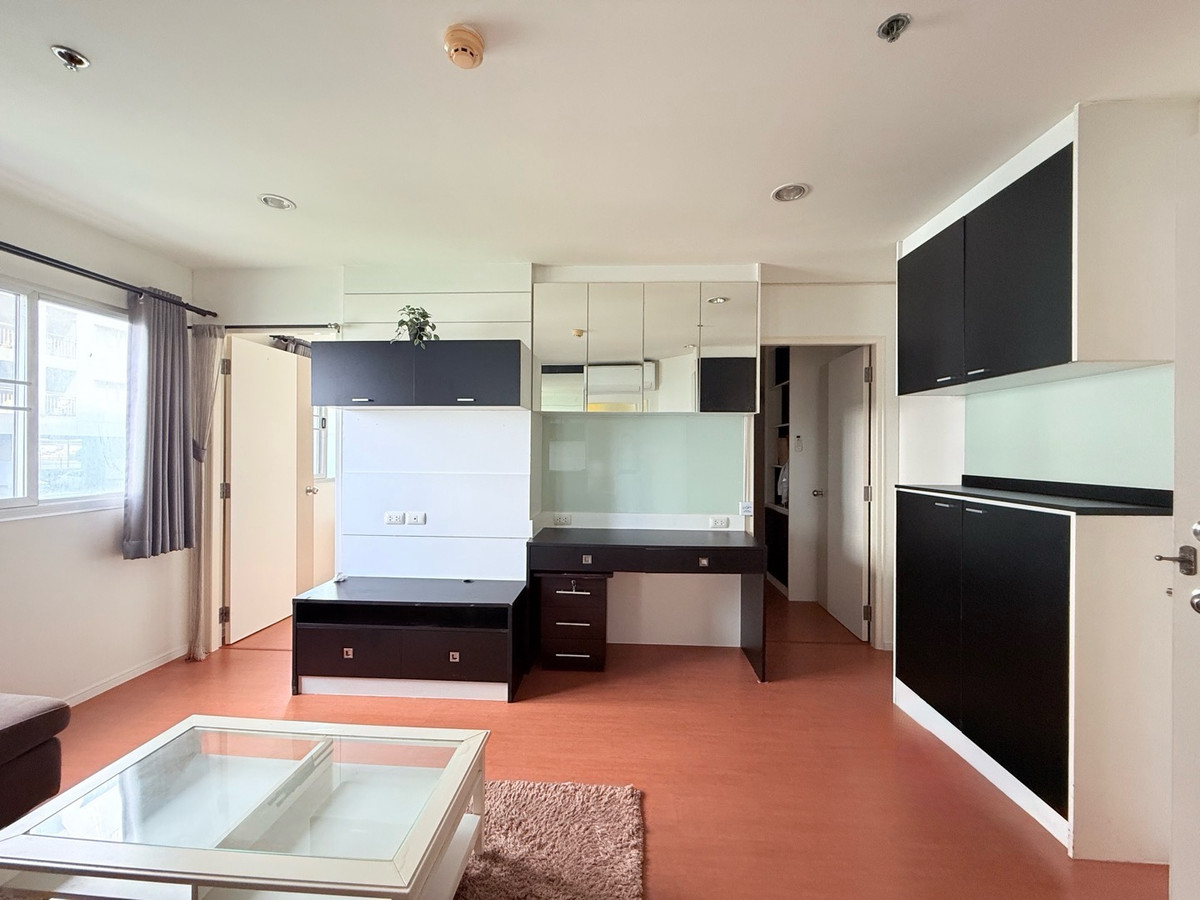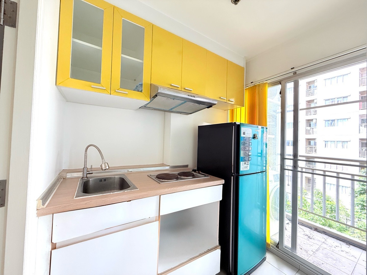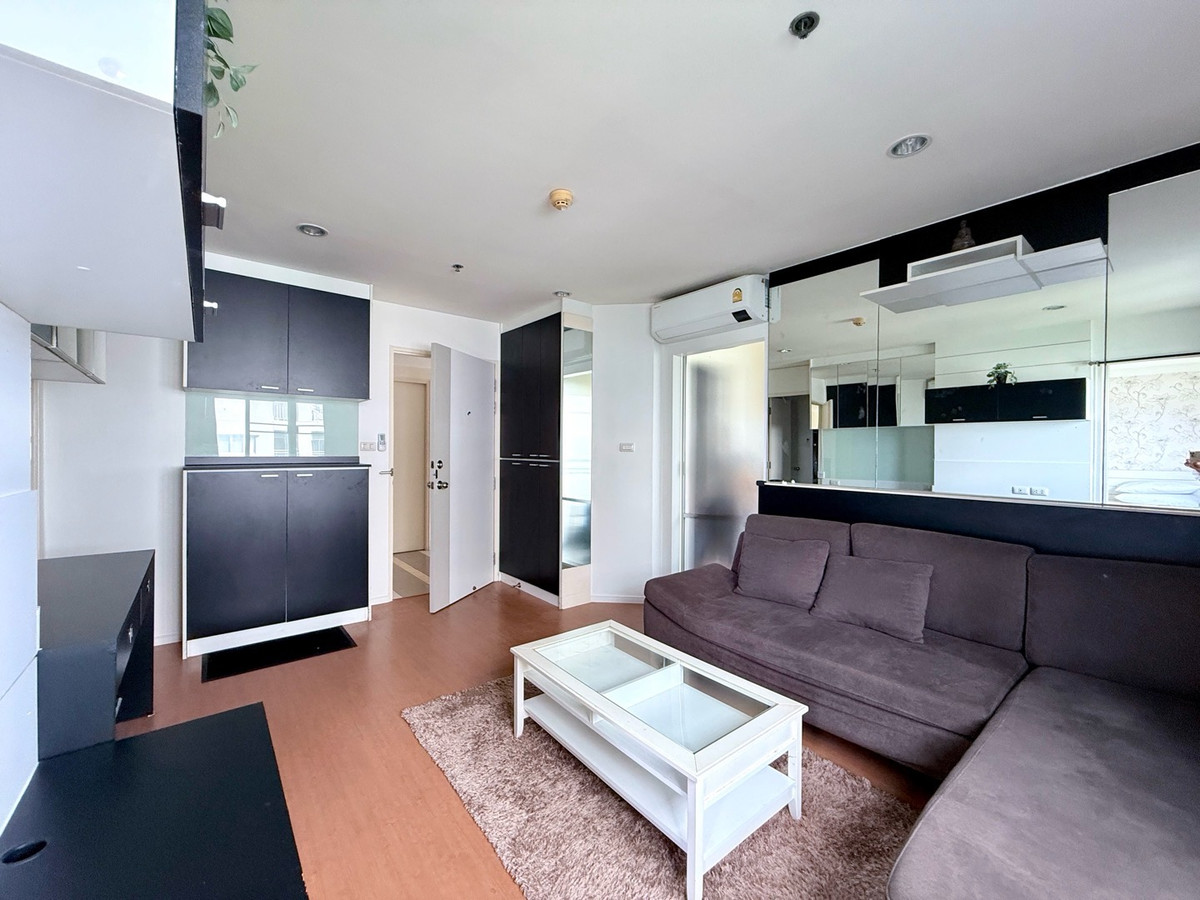 Lumpini Mega City Bangna | Building E 2-bedrooms, 1-bathroom unit Size: 45.68 sq.m. | 5th floor | Open view, North-facing window Fully furnished as shown in photos • 3 Air conditioners • Hood + Stove