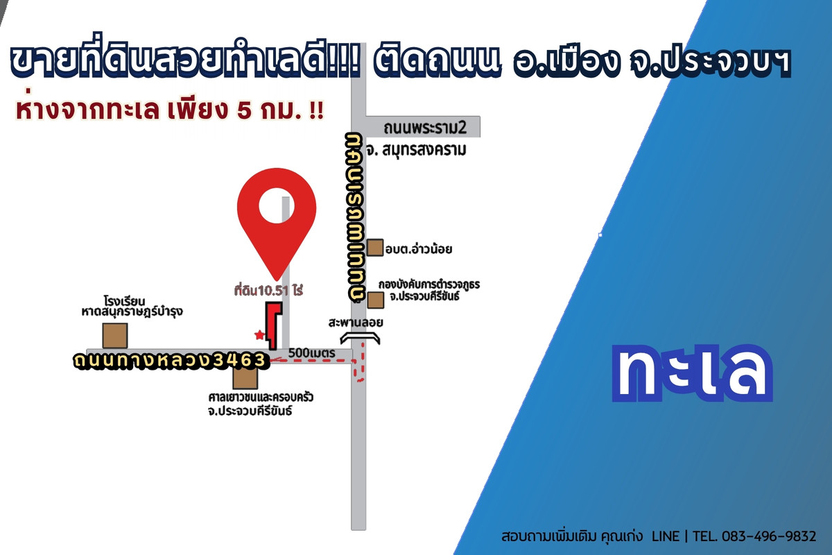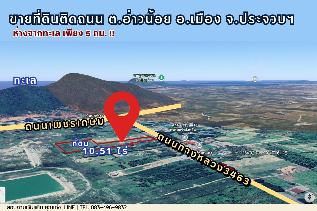 Land for sale, good location‼️ next to the road, close to the sea, only 5 km., mountain view, suitable for both residential and recreational use. and investment projects such as pool villas, small resorts . 🚀 Who is this land suitable for? • Owner of cold money → Buy and hold for 3 years, profit from land value up ~20% • Investor, speculation type, sub-sell • New generation developer developing Pool Villa → penetrating the foreign market and growing retirees . 📍 Location: Ao Noi Subdistrict, Mueang District, Prachuap Khiri Khan Province 🛣️ Next to the main road, convenient travel, close to the community 🌊 Only 5 kilometers from Ao Noi beach and close to a beautiful, natural mountain 🏡 Suitable for building a vacation home / resort / private pool villa 🌅 Quiet atmosphere, mountain view, close to the sea 🚗 Travel only 10 minutes to Prachuap city. Near tourist attractions, Wat Ao Noi and Ao Manao 💰 Investment price suitable for investors or those looking for space to build a vacation home . 📍There are 2 title deeds • 7 rai 70 wa (7.175 rai) and • 3 rai 1 ngan 34 wa (3.335 rai) Total area: 10 rai 2 ngan 104 Wa (≈10.51 rai) Price: 19,969,000 Baht MAP >> https://maps.app.goo.gl/mw94nXrMBqV1PsGH7 . ☎️ If interested, contact:𝗟𝗶𝗻𝗲 ID : kd9832 📱Tel. : Contact number , Contact number. . #Land in Prachuap near the sea. #LuxuryLand #Land next to the main road #Prachuap Land #Real Estate Investment #Pool Villa #LandForInvestment #ExclusiveProperty #LuxuryRealEstate #Land for sale next to the road near the sea