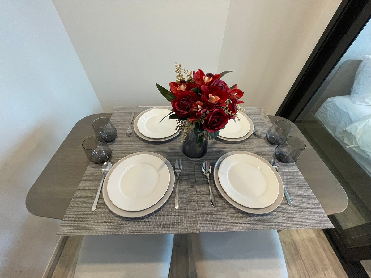 Condo fully furnished Complete with furniture and electrical appliances. Just lift your bags and move in immediately Excellent location, close to Huai Khwang MRT, just 120 meters, just 2–3 minutes wal