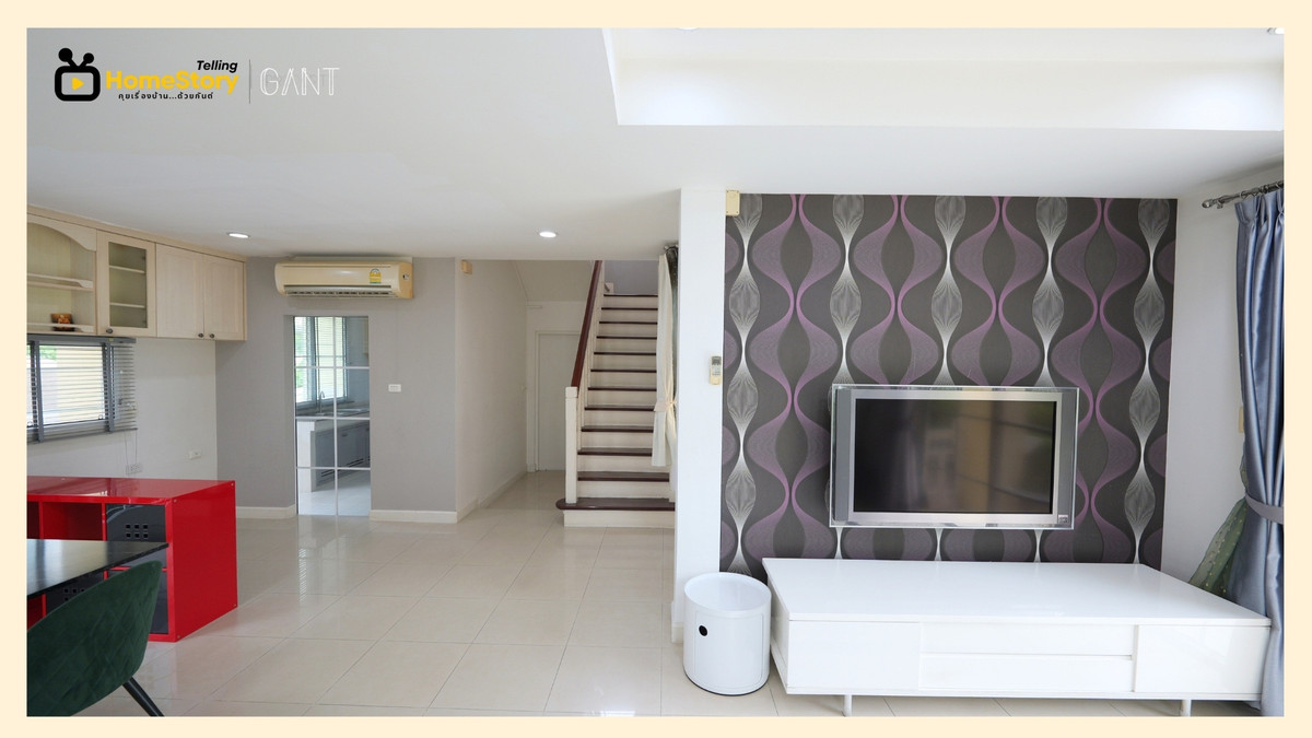 Single house for sale, 3 bedrooms, ready to move in, Chaiyaphruek Village 2 Tiwanon-Wongwaen Rd. 345, Bang Khu Wat Subdistrict, Pathum Thani (Gant-300) Beautiful house ready to move in. Usable area 210 sq m divided into 3 bedrooms, 3 bathrooms, 1 office room, 2 parking spaces on land area 70.4 sq m Corner house. Near the garden with 5 air conditioners and a complete set of good quality furniture , modern built-in kitchen Convenient transportation. Can connect to many routes. Both Pathum Thani, Rangsit, Don Mueang, Bang Yai or Ratchaphruek Selling for 5.49 million baht If interested, contact Khun Kan Contact number, Contact number Line : @GantProperty