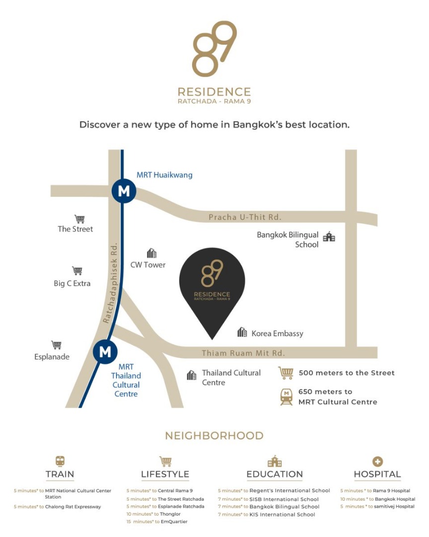 Welcome to 89 Residence | Ratchada – Rama 9 A new generation of Natural Luxury Homes,4-storey modern freeform design with Private Rooftop Lounge & Pool Located in Bangkok’s emerging New CBD — just 5 mins from MRT Accepting brokers, 5% commission 📌 Highlights: Fully furnished and decorated as shown in photos Ready to move in / Ready to rent out immediately Estimated rental income up to 150,000 THB/month Auspicious house number "89" for every unit Regular price: 26,500,000 baht 🔥 Special promotion until the end of the year: only 22,500,000 baht 📍 Surrounded by: MRT Thailand Cultural Centre – 900 m The Street, Big C, Esplanade — 5 mins away Top international schools & major embassies nearby 💡 Sales Condition: 30-Year Leasehold* 📞 Book a private viewing today Line: @89Residence | Call: Contact number / Contact number