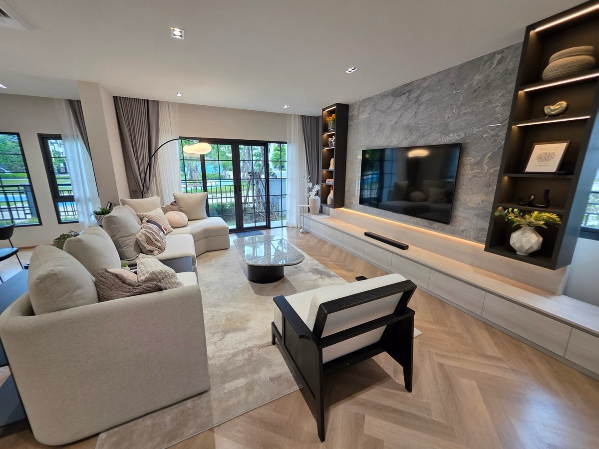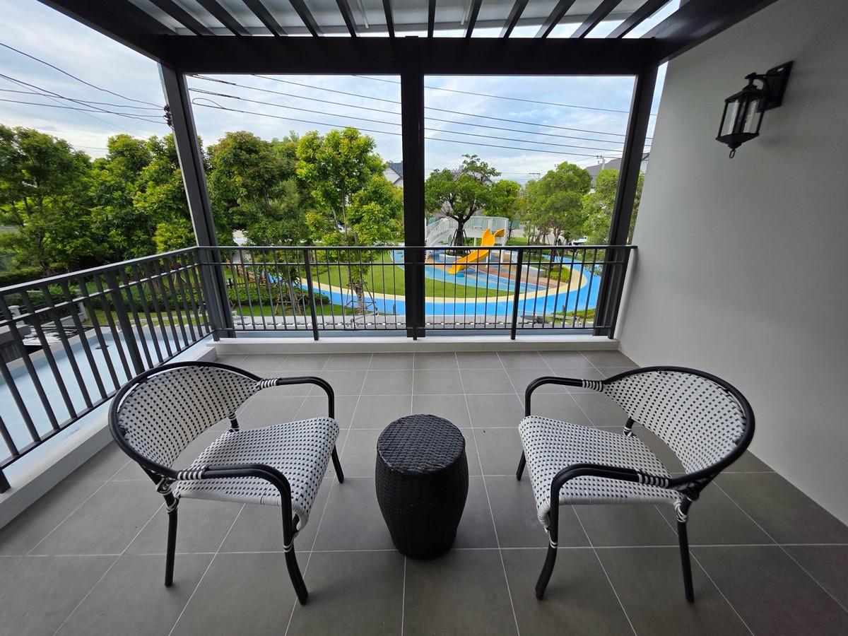 [ Owner Post ] House for rent, Centro Bangna, garden front plot, no house opposite. Fully decorated You can see a view of the garden from almost every room The project is only 1 kilometer from the entrance of Mega Bangna on the road along the southern side of Kanchanaburi Expressway. House details House location: Phase 2, garden front, outside corner location. Land area : 64.5 sq m Usable area : 303 sq m Baan Hantit : North Parking for 3 cars 4 bedrooms 5 bathrooms with a bathtub in the master bedroom and every bedroom has its own bathroom Maids room with 1 bathroom Open Living space : Living room combine with dining room 1 2nd floor balcony with furniture, roof, can sit and admire the outdoor view without getting hot 1 kitchen with pantry, 1 spot behind the dining table Home theater room, garden view, with electric reclining sofa, genuine leather. 1 storage room with 2 additional lockers Shoe storage cabinet with rack, can hold more than 100 pairs Digital door lock EV Charger installed List of electrical appliances TV : 3 units (75" x 2 and 65" x 1) Soundbar 2 units Suf Air conditioner: 7 units (all rooms) Water heater: 4 unit Microwave unit: 1 unit Oven: 1 unit Electric stove: 1 unit Dishwasher: 1 unit Refrigerator: 2 unit Washing machine: 1 unit Dryer: 1 unit Rental price: 190,000/month minimum contract 1 Year Price includes gardening fee, common area fee, internet fee , air conditioner cleaning fee 2 times a year https://maps.app.goo.gl/Zw5zdQmJoGTditu1A?g_st=ic Contact: Ice Phone number: Contact number Line ID: theice54