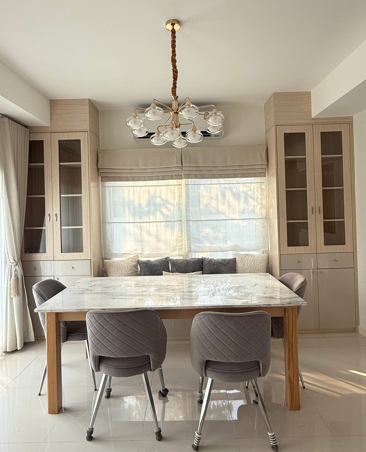 💥House for rent 💵 69,000 baht / month Chaiyaphruek Village, Expressway #Ramindra - Chatuchot #Bangkok ❤️ If interested, contact: ( AG ) Na Tel No: Contact number , Contact number ❤️ Line ID : Contact number 🌲Big, shady project Nice place to live with complete amenities . The highlight is the park with a large lake. It comes with a playground, clubhouse, fitness room, and saltwater swimming pool. Security guard + CCTV And a 24-hour security system 🏡 🏡 The house is decorated with built-in furniture (Built-in), ready to move in. Fully furnished, 3 year old house, very new 🏡 Corner house, beautiful plot, next to a large park. Shady area around the house On the side there is a large field area. For gardening - 3 bedrooms - 3 bathrooms (with water heater) 4 air conditioners (air conditioned in every room) Bed Ready to sleep 2 bedrooms 2 TVs / refrigerator / washing machine / electric stove / range hood / remote control door Area size 70 sq m. Usable area 161 sq m. House faces southeast Near the expressway. (Chatuchot Checkpoint) just 1.7 km. within a 4 minute drive to Kanchanaphisek Outer Ring Road near Chalong Rat Expressway. Kanchanaphisek Expressway Ramintra Rd. Watcharaphon Rd. Sai Mai Rd. Sukhapiban 5 Rd. Pink Line (Khae Rai-Min Buri) Green Line (Mochit-Saphan Mai-Khu Khot) Near many shopping centers and amenities such as Fashion Island, Promenade, Central Ramintra, Don Mueang Airport, The Crystal, Central Festival Eastville.