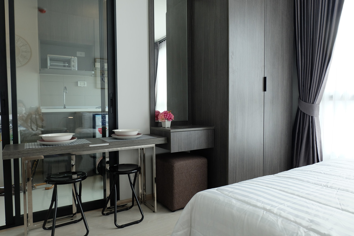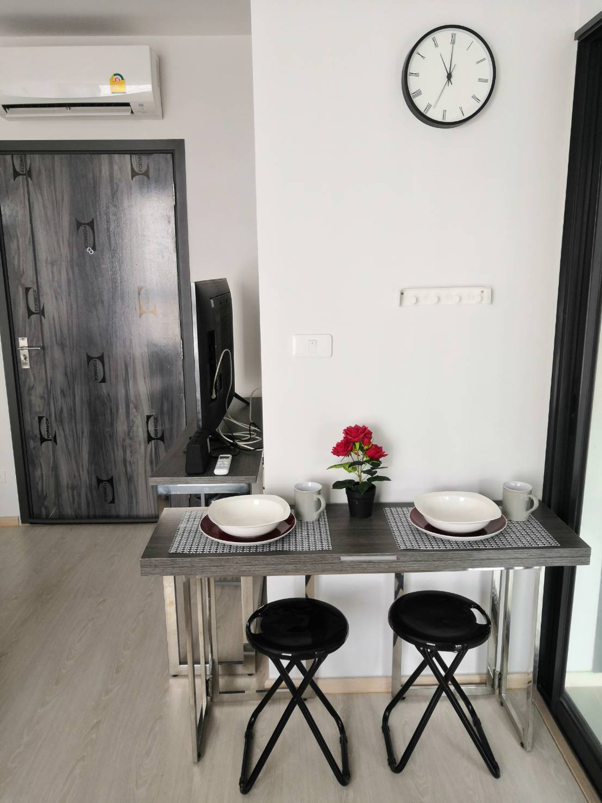 Furniture in the room - Build in kitchen set (there is a glass door separating the kitchen from the bedroom) - Electric stove - Range hood - Refrigerator - Microwave - Water heater - Smart TV - Washing machine - Wardrobe - Dressing table - Foldable multi-purpose table - Sofa L Shape Project facilities -Rooftop swimming pool (Sky pool) - Ground floor swimming pool -Fitness 360° -Sauna room - Steam room -Laundry room -Co working space - Meeting room - Kid room -Parking building -There is 7-11 in the project Facilities and transportation - Macro (located across the project) - There is a free BTS shuttle van. Udomsuk (700 m.) Thank you. Contact Person or Owner: Khun Nuch Tel : Contact number Line : Contact number