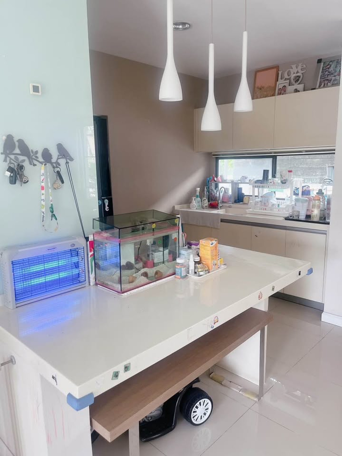 Announcing the sale of Mongkol Manthana Lake Watcharapol This house is ready to deliver the power of happiness, success and stability to you. 2-storey detached house in the Manthana Lake project. Watcharaphon Land area 65 square wah | Spacious usable area | Recommended for excellent Feng Shui by a professional master ________________________________________ The reason why this house is special: • The front of the house faces south - an auspicious direction to receive the power of success and fame in the 9 era. • Located in the lake zone, can enter and exit in 2 ways, quiet, only 5 minutes walk to the central lake. With a 1 kilometer long walkway around the lake, you can run around or walk holding your childs hand to admire the view • Feng Shui of the house, special adjustments: o Open to good energy o Release pressure o Increase financial power Growth of family members • Create a quiet corner and center of life energy. To enhance mental and mental health • Install 5Kw rooftop solar to help save on long-term electricity bills • Complete with separate maids house. Create privacy for your family • Green garden area around the house, good light, cool breeze, friendly neighbors ________________________________________ Complete amenities: • Luxurious clubhouse with: o fitness / sauna room / childrens playroom / playground / swimming pool • The road in the project is wide. safe atmosphere Quiet, suitable for families • Near Sarasas Wittaya School / Siriwat School, convenient travel • Only 10 minutes to the entrance and exit point of Chalong Rat Expressway. Conveniently connected to the city in every direction __________________________ "This house It is the beginning of happiness, success, and stability for our family . We want to pass on this good energy to the new owner. To receive the blessings of this house like we have."