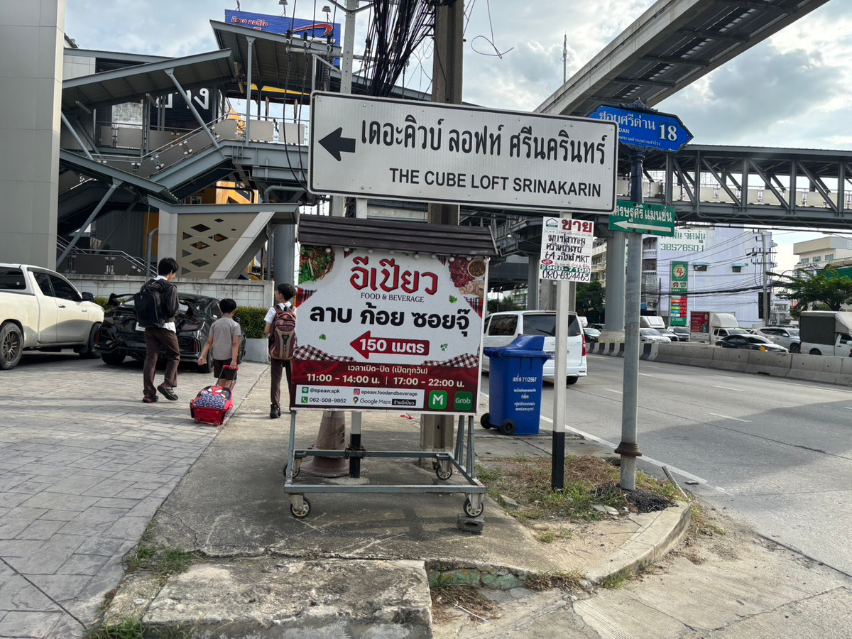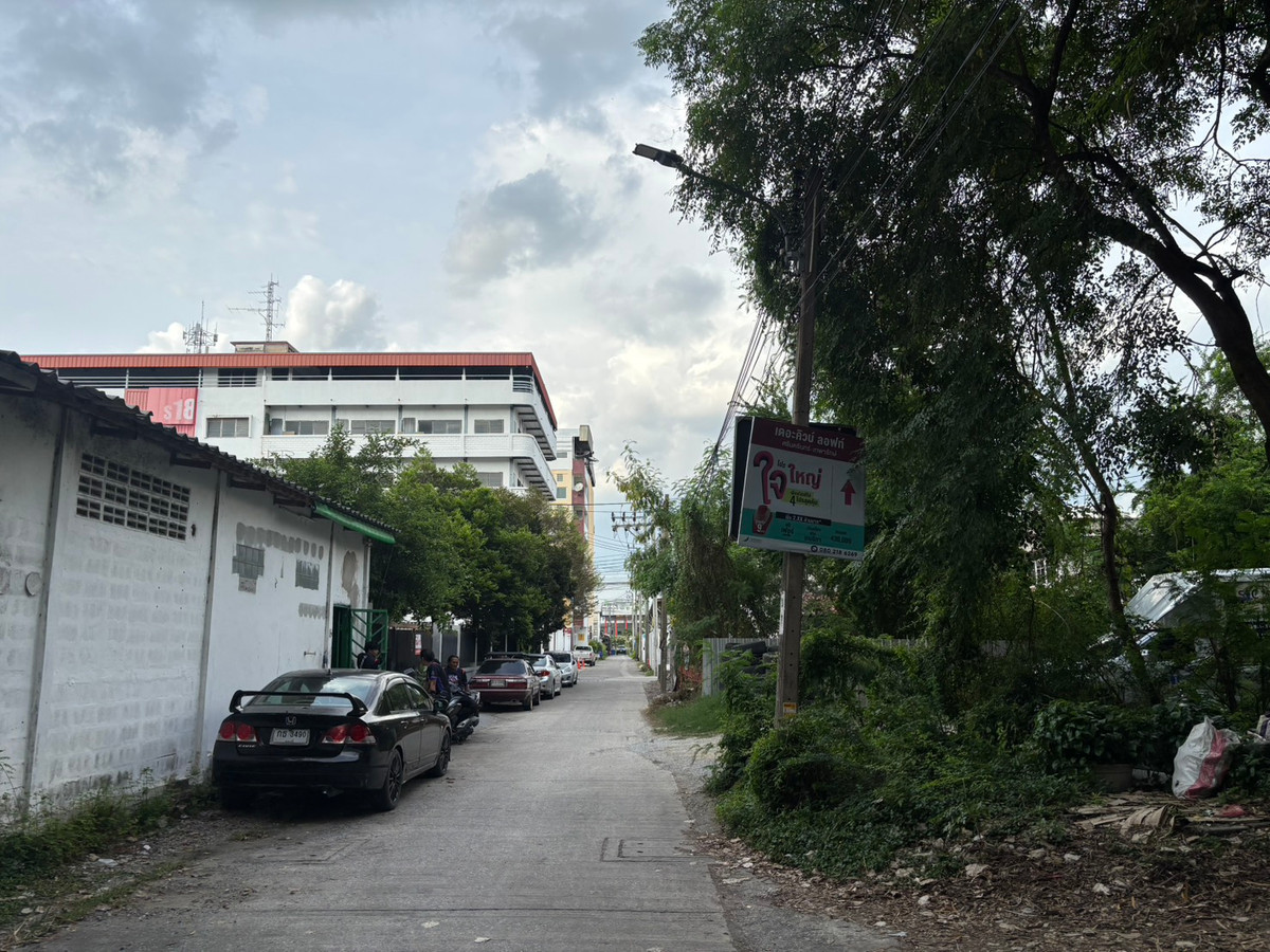 Land for sale, 2 plots, good location, 100 sq m each, Srinakarin Road, Soi Sri Dan 18, near the entrance to the Yellow Line. Sri Bearing Station