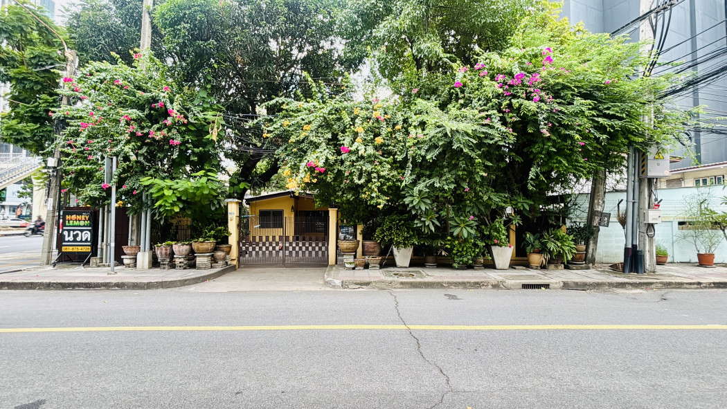 Land for sale in Sathorn, size 99 sq wah on Narathiwat Road, with house. :: Highlights :: Convenient transportation On main road Near BRT :: Details :: - size 99 sq wah 16-meter frontage 24-meter dept