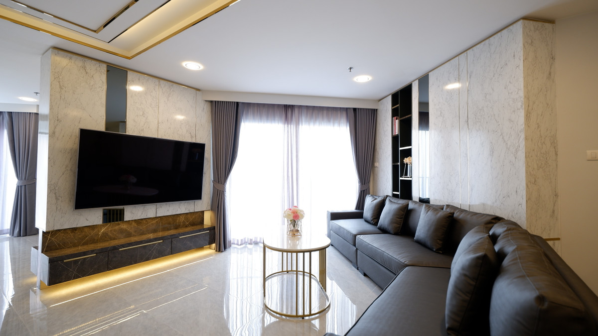 Golden location! : Walk 500 m. to MRT Rama 9, next to Central Rama 9, near the office area and foreign community, near the Sukhumvit-Asoke zone, only 2 stations Large room 193.49 sq m. 34th-35th floor