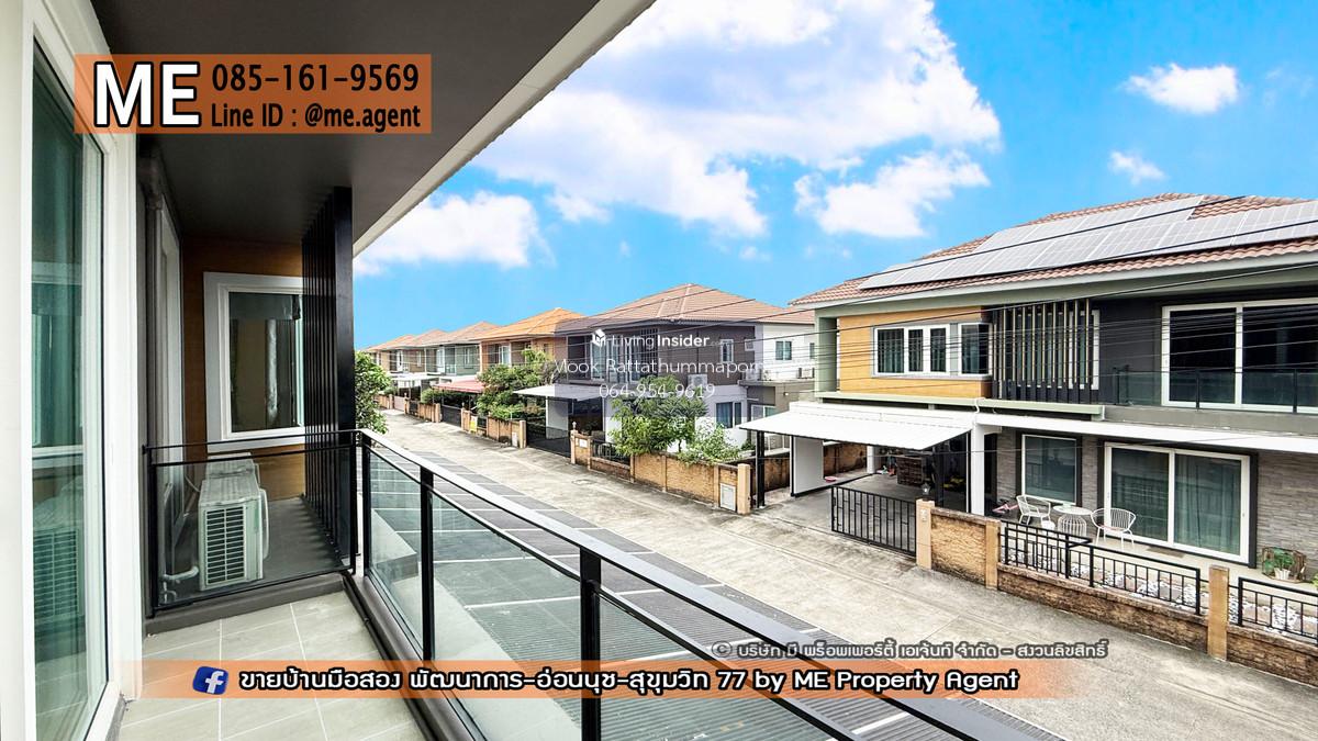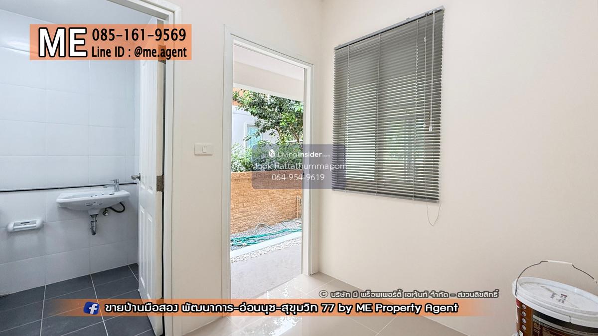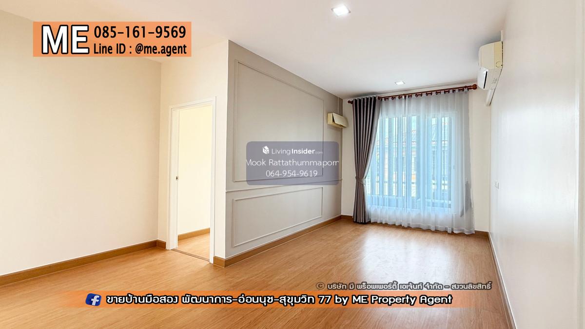- Area 53.7 Sqw 191 Sqm - 4 bedrooms, 4 bathrooms - Maid's room + bathroom - 2 parking spaces Renovated list - New SPC flooring - New paint (both interior and exterior) - New bathroom tiles - New sanitary fixtures Free - Built-in furniture - Curtain set - Water pump + water tank - 6 air conditioners . Price: 8.29 million baht . Contact us at ME Property Agent Tel: Contact number Line ID: mook5164 LINE: @me.agent Follow us on the ME page for beautiful homes Inbox or FACEBOOK: https://www.facebook.com/MEpropertyAgent Nearby Places • 7-Eleven: 1.5 km • Family Mart: 1.5 km • The Paseo: 6.4 km • Max Value: 7.7 km • Seacon Square: 8.3 km • Paradise Park: 8.8 km • London Street: 9.1 km • Airlink Park: 10.5 km • Big C On Nut: 10.9 km • The Mall Bangkapi: 11.4 km • Big C Bangna: 12 km • Central Bangna: 12 km • Tesco Lotus On Nut: 12.7 km • The Nine: 12.8 km • The Mall Ram 1 and 2: 13.1 km • BITEC Bangna: 21 km • ABAC: 11.4 km • Ramkhamhaeng University: 12.9 km km • Triam Udom Suksa School: 13.1 km • King Mongkut's University of Technology Thonburi: 13.4 km • Bangkok Prep: 15.1 km • NIDA: 15.6 km • Sirindhorn Hospital: 4.7 km • Vibharam Hospital: 8 km • ARL Ban Thap Chang: 5.9 km • Suan Luang Rama IX Park: 8.4 km • Wat Lat Krabang: 10 km • Karunwet Hospital Sukhapiban 3: 12 km • Suvarnabhumi Airport: 13 km Facilities • Clubhouse • Swimming pool • Fitness center • Lake • Public park • Jogging track • Easy Pass entry/exit system • CCTV • 24-hour security