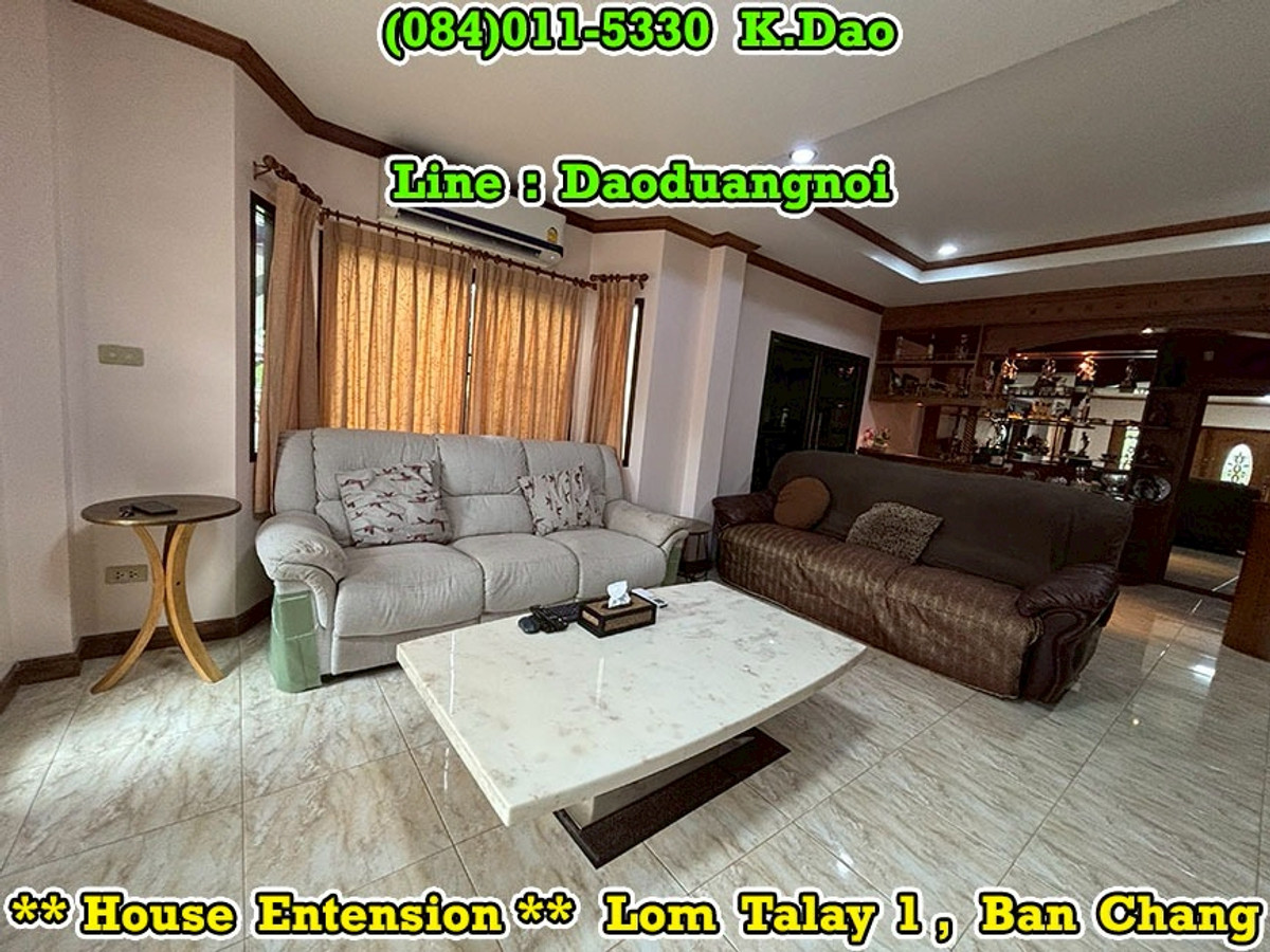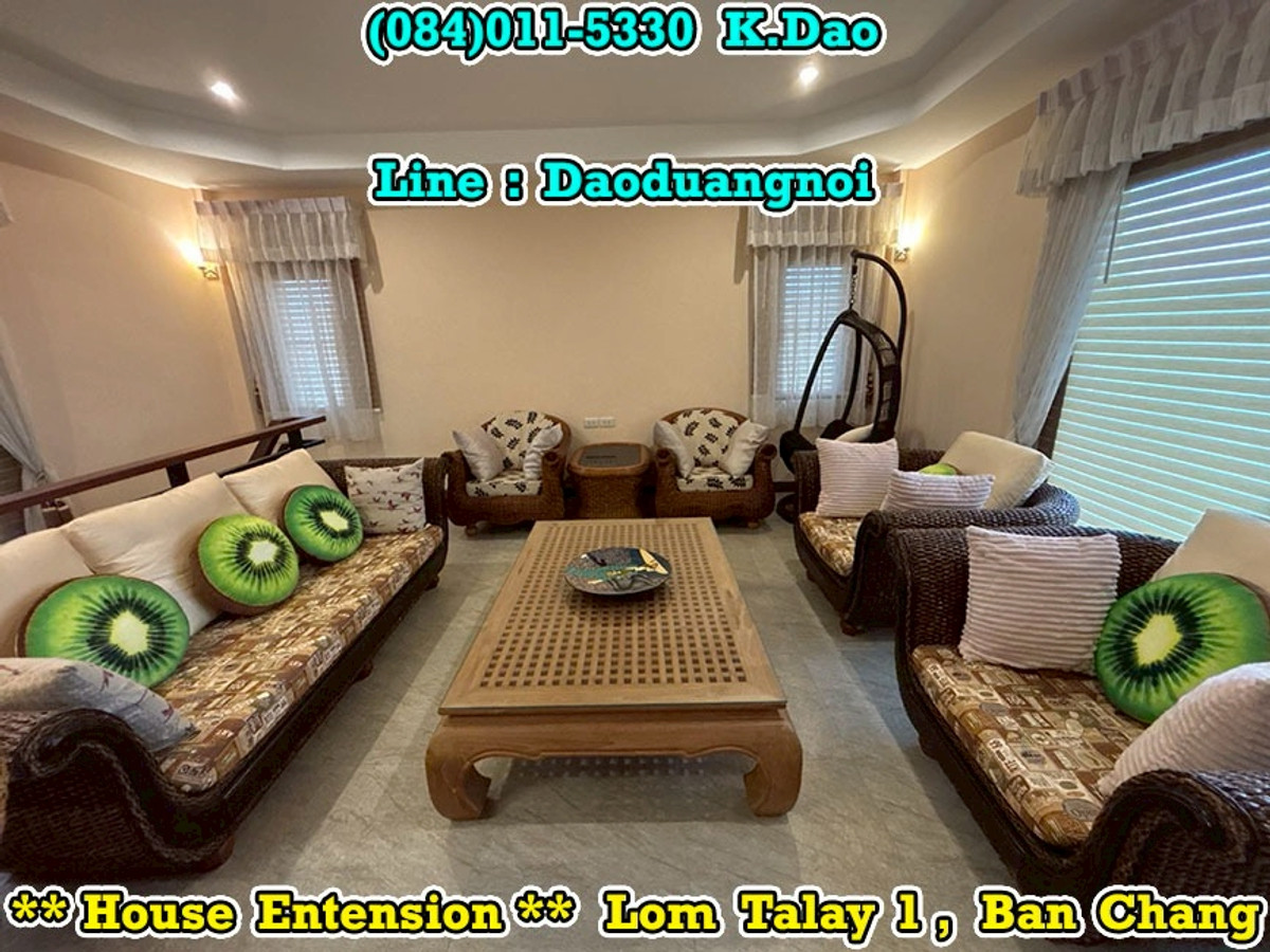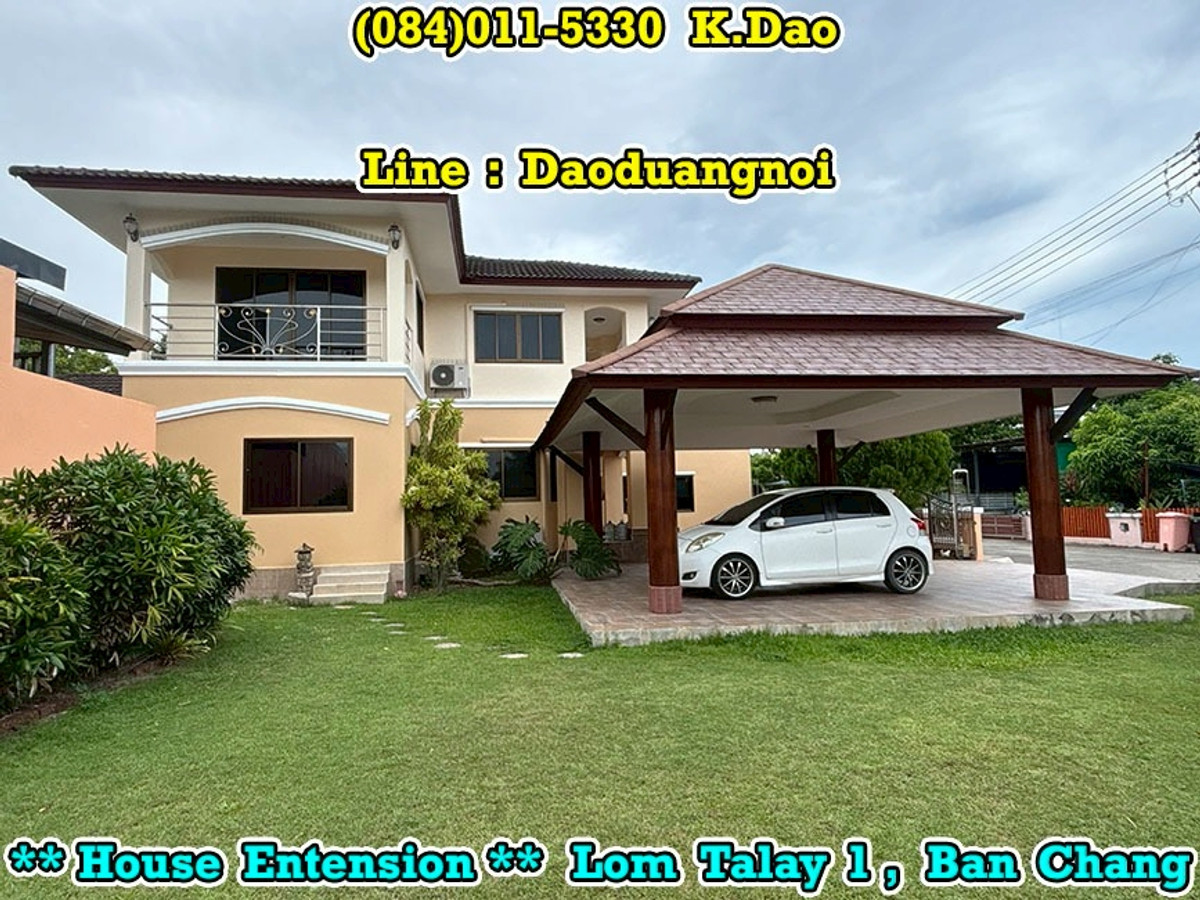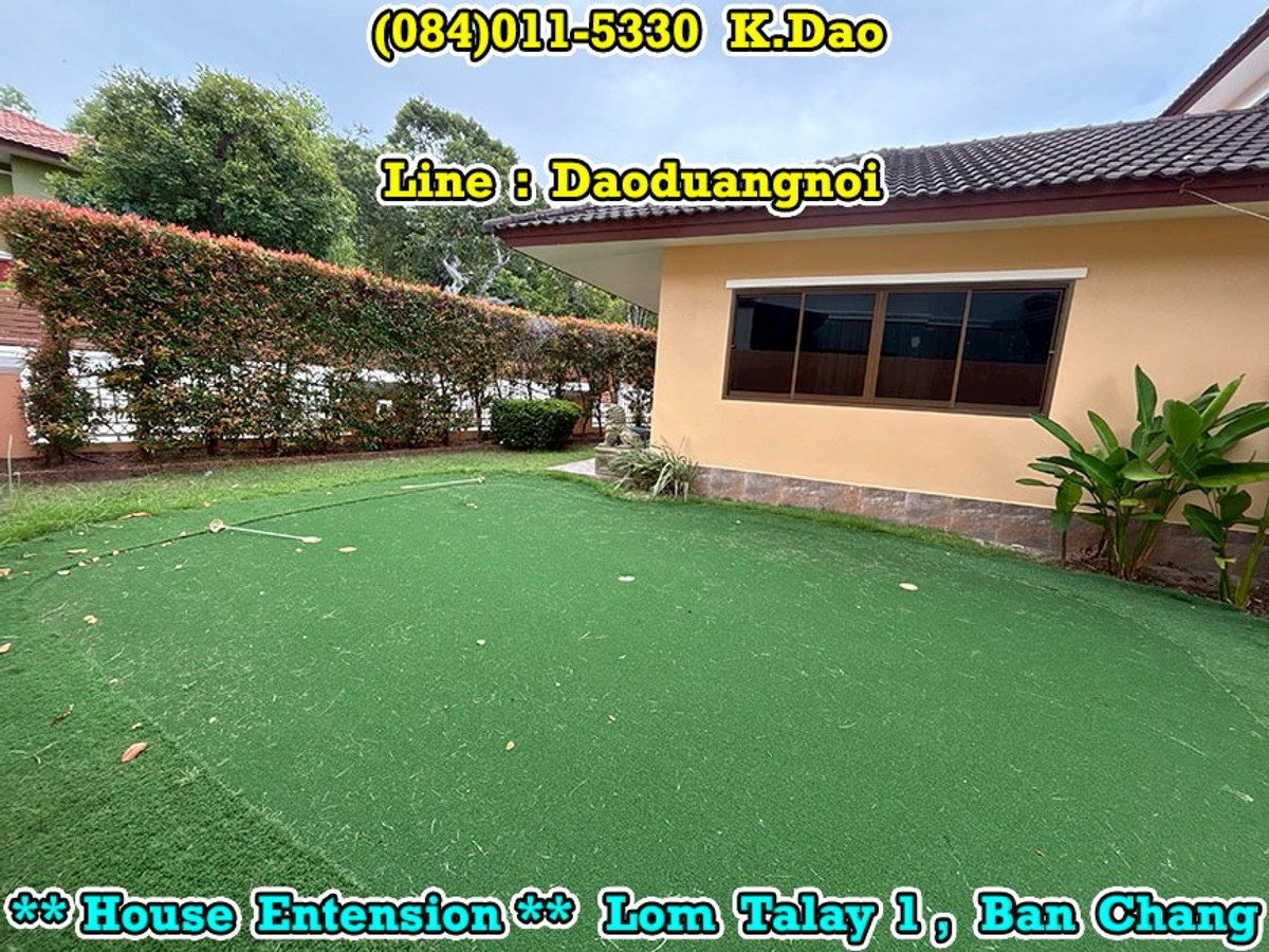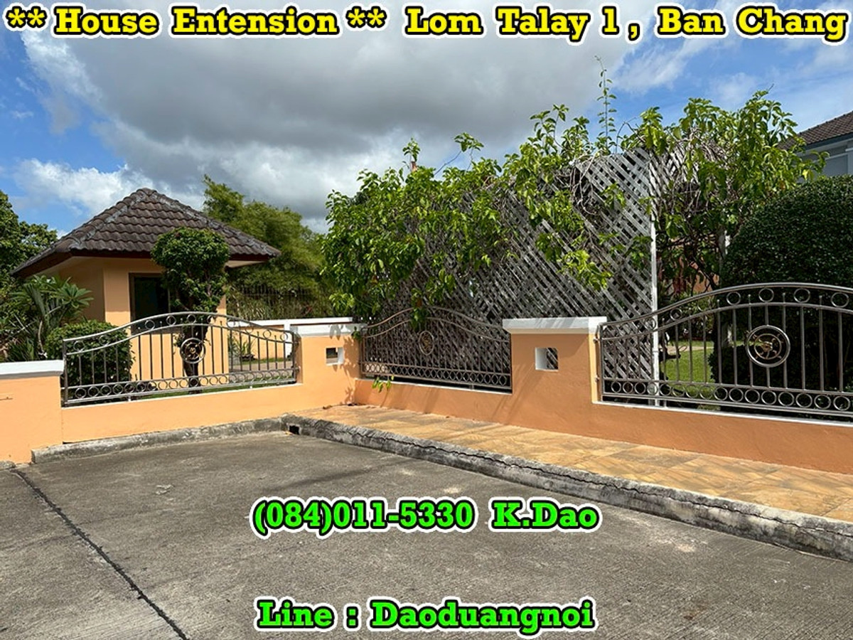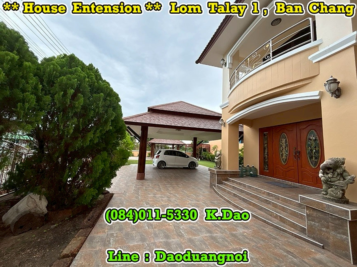 +++ House Extension for Sale +++ Lom Talay 1, Ban Chang Near Phayun Beach Near Map Ta Phut Industrial Estate (Nong Fab Cross-Section) Great Location. Convenient for a Journey. Location : https://goo.gl/maps/sWaQeTwUggaxBKik9 Land Area 215.8 Sqr.wah (2 Title Deeds) 4 Bedrooms 4 Bathrooms 2 Balconies 2 Living Rooms 1 Office Room 1 Kitchen 2 Counter Bars 1 Dining Room 1 Fitness Room 1 Golf Simulator Room 1 Backyard Putting Green 2 Pavilions 2 Parking Luxury Fully Furnished Beautiful Garden *** Sales Price 7.8 MB *** Facility - Swimming Pool - Community Park with Playground - Keycard for Enter & Exit the Village - 24-Hour Security Guard +++ High Security +++ Contact for buying with Dao. Tel. : (084)011-5330 Line ID : Daoduangnoi WhatsApp : Contact number https://www.facebook.com/ThePastelProperty