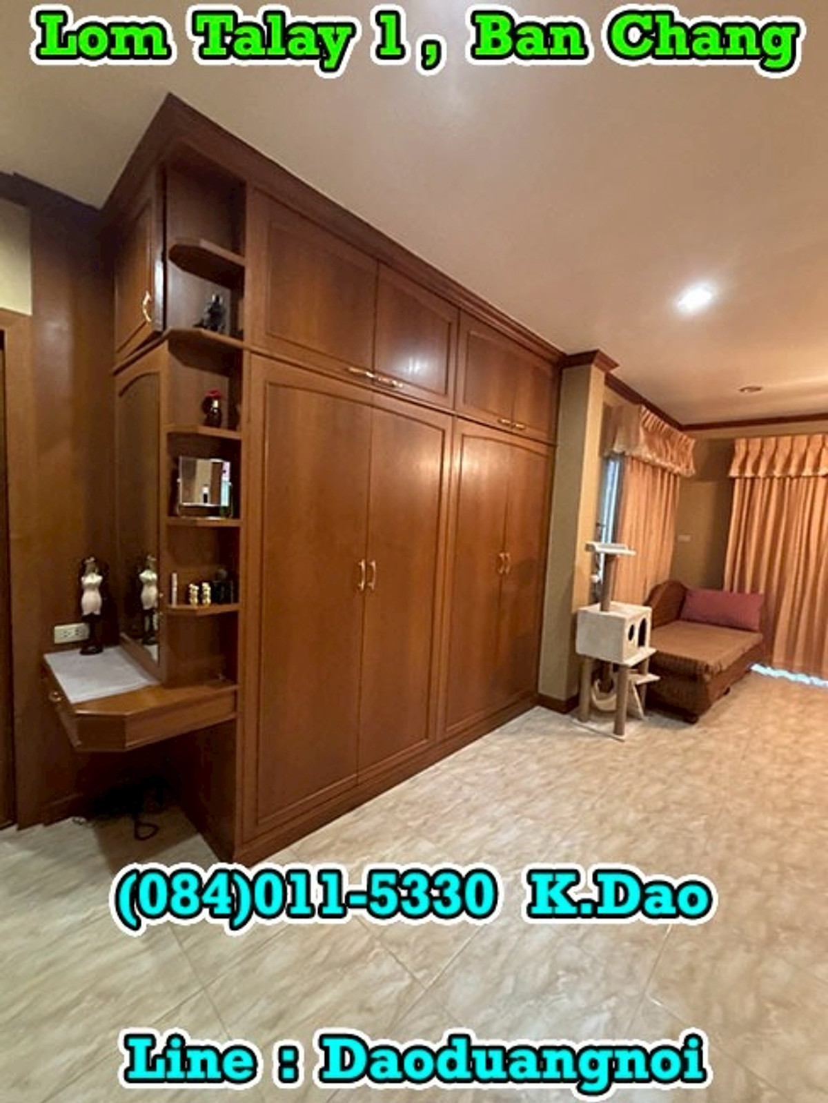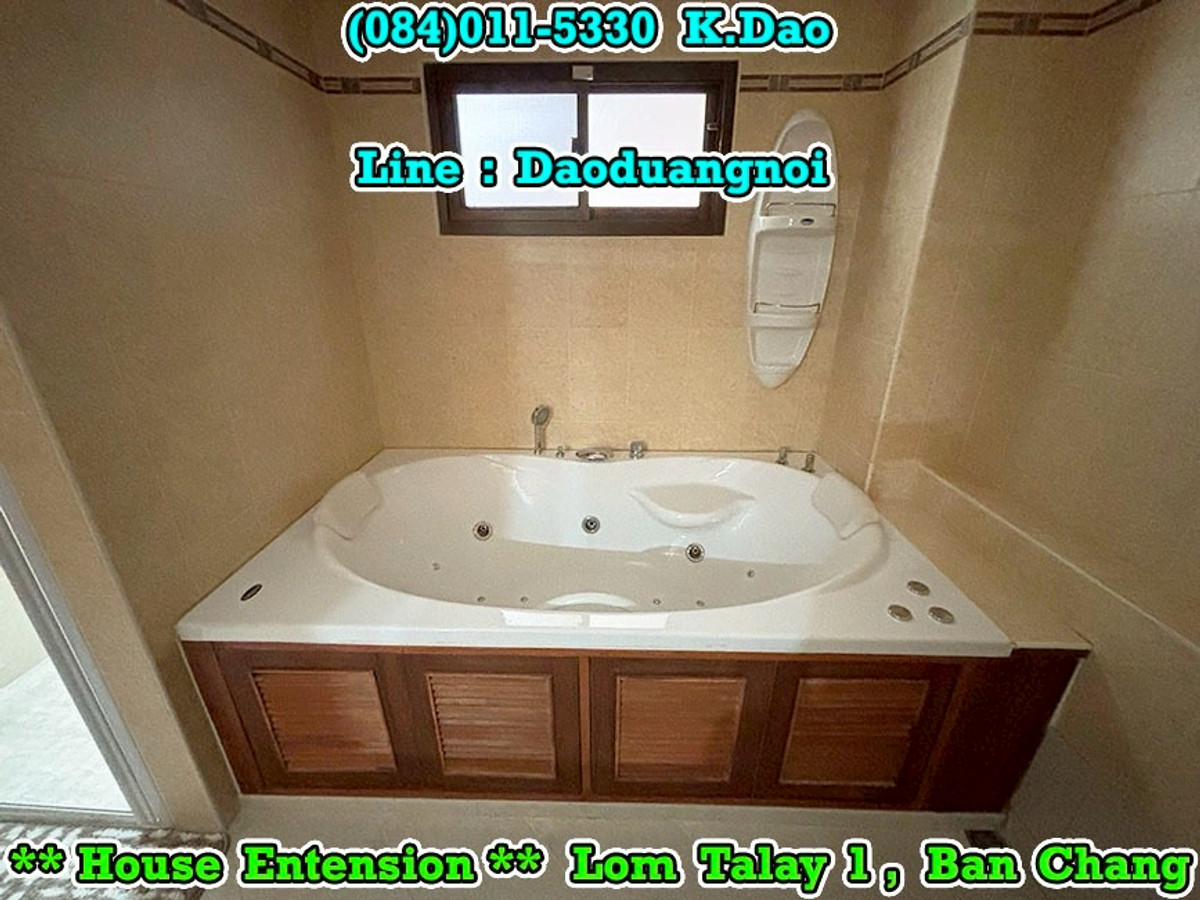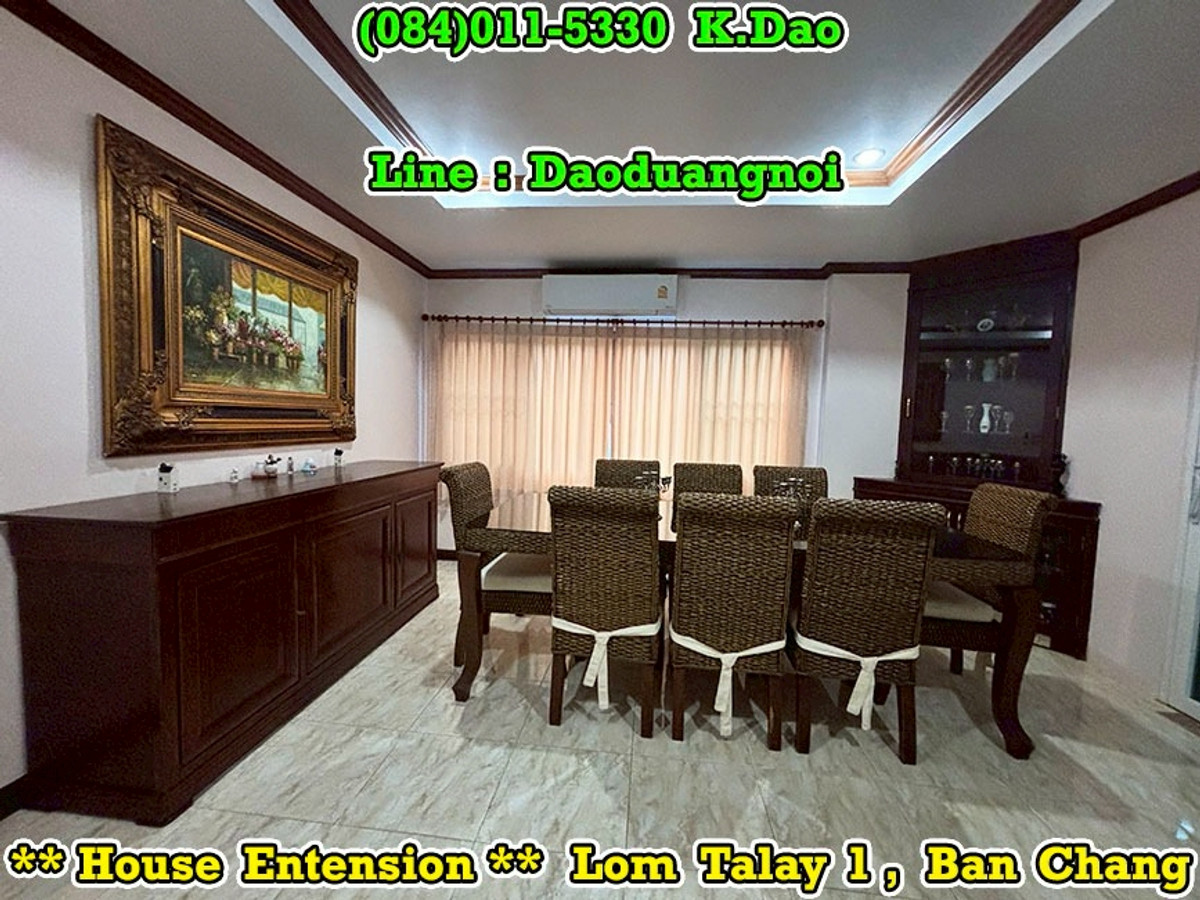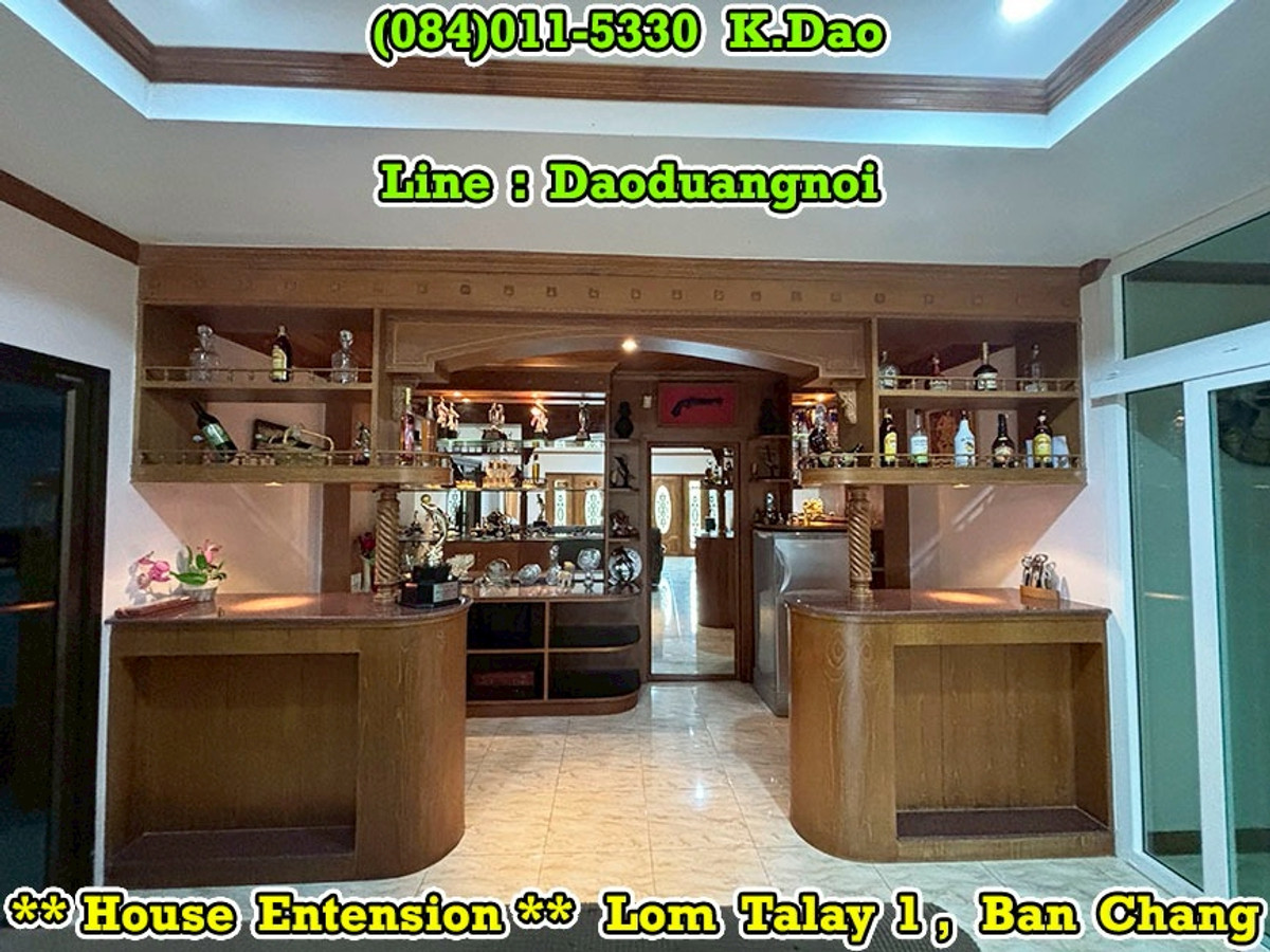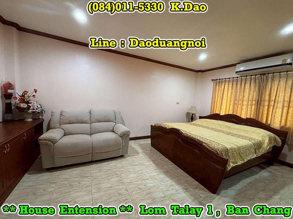 +++ House Extension for Sale +++ Lom Talay 1, Ban Chang Near Phayun Beach Near Map Ta Phut Industrial Estate (Nong Fab Cross-Section) Great Location. Convenient for a Journey. Location : https://goo.gl/maps/sWaQeTwUggaxBKik9 Land Area 215.8 Sqr.wah (2 Title Deeds) 4 Bedrooms 4 Bathrooms 2 Balconies 2 Living Rooms 1 Office Room 1 Kitchen 2 Counter Bars 1 Dining Room 1 Fitness Room 1 Golf Simulator Room 1 Backyard Putting Green 2 Pavilions 2 Parking Luxury Fully Furnished Beautiful Garden *** Sales Price 7.8 MB *** Facility - Swimming Pool - Community Park with Playground - Keycard for Enter & Exit the Village - 24-Hour Security Guard +++ High Security +++ Contact for buying with Dao. Tel. : (084)011-5330 Line ID : Daoduangnoi WhatsApp : Contact number https://www.facebook.com/ThePastelProperty