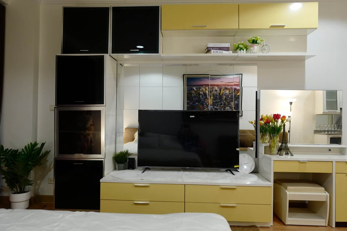 Rent code RR1318 Condo The Platinum Condo , room size 48 sq m., 1 bedroom, 1 bathroom , 23rd floor, city view, 1 car parking space, next to BTS Ratchathewi , ready to move in. Furniture and electrical