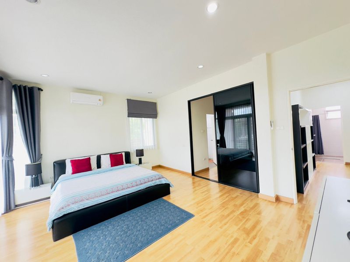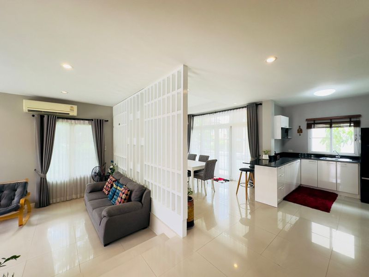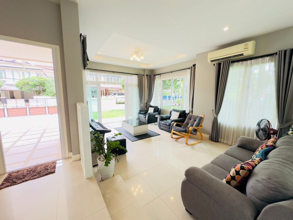 Details: Area: 120 sq m Usable area: 320 sq m 4 bedrooms, 4 bathrooms Separate kitchen + dining room Large living room + maids room Parking for up to 4 cars Automatic remote door system Rental price 55,000 baht/month, 1 year rental contract 1 month in advance + deposit. 2 months Selling price 9,900,000 million baht Transfer fee is half each. (Price negotiable) Facilities within the project : - 24 hour security system - Garden and playground - Near 7-Eleven, Mixed Food Market. Kindergarten Potential location, convenient travel : - Near many industrial estates - Near shopping areas, schools and government offices - Suvarnabhumi Airport only 50 minutes - Chonburi city 30 minutes, Pattaya 20 minutes F-A1