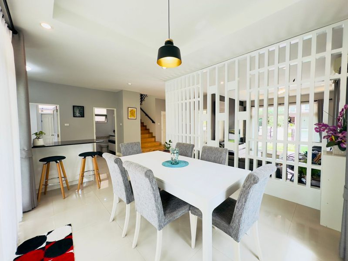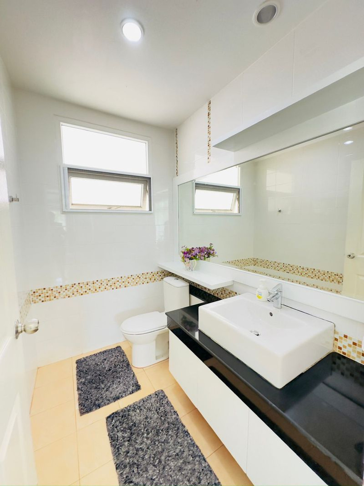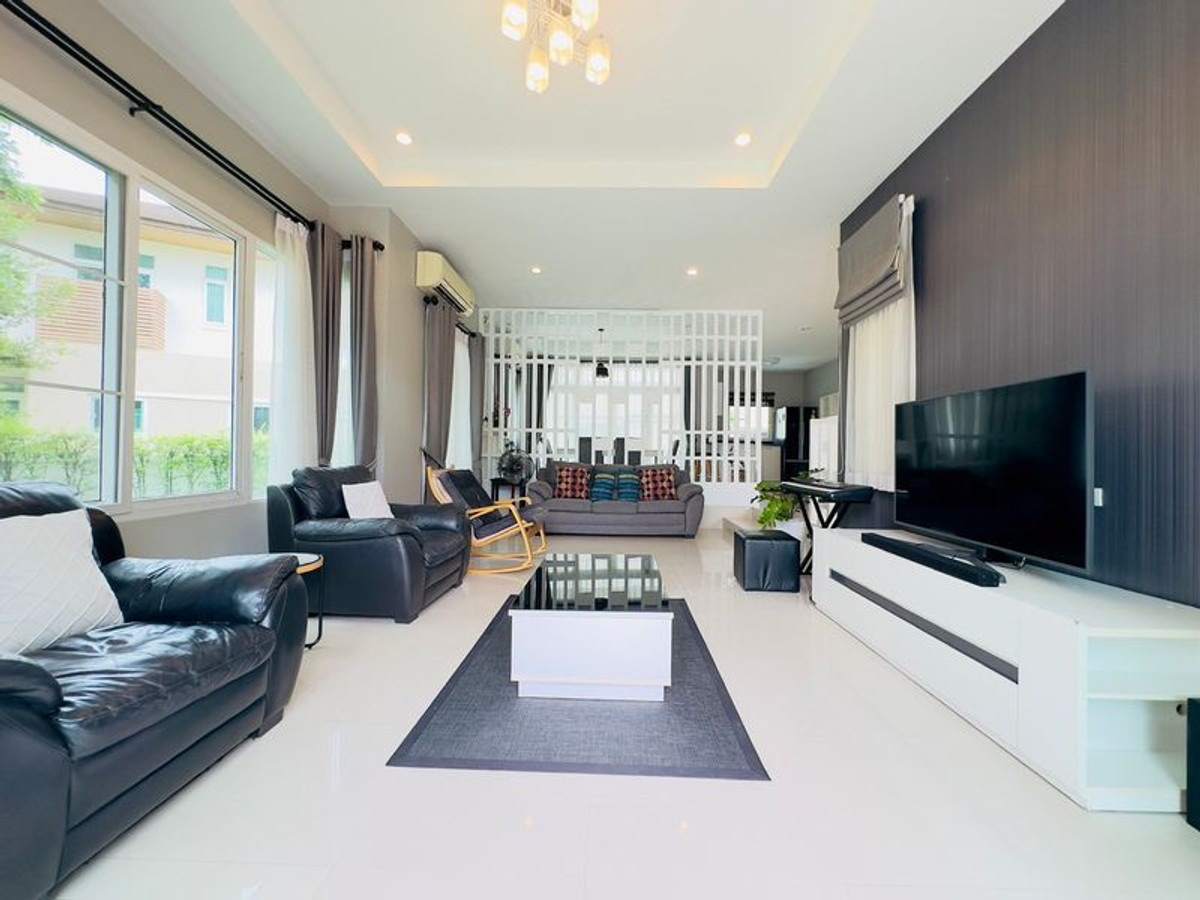 Details: Area: 120 sq m Usable area: 320 sq m 4 bedrooms, 4 bathrooms Separate kitchen + dining room Large living room + maids room Parking for up to 4 cars Automatic remote door system Rental price 55,000 baht/month, 1 year rental contract 1 month in advance + deposit. 2 months Selling price 9,900,000 million baht Transfer fee is half each. (Price negotiable) Facilities within the project : - 24 hour security system - Garden and playground - Near 7-Eleven, Mixed Food Market. Kindergarten Potential location, convenient travel : - Near many industrial estates - Near shopping areas, schools and government offices - Suvarnabhumi Airport only 50 minutes - Chonburi city 30 minutes, Pattaya 20 minutes F-A1