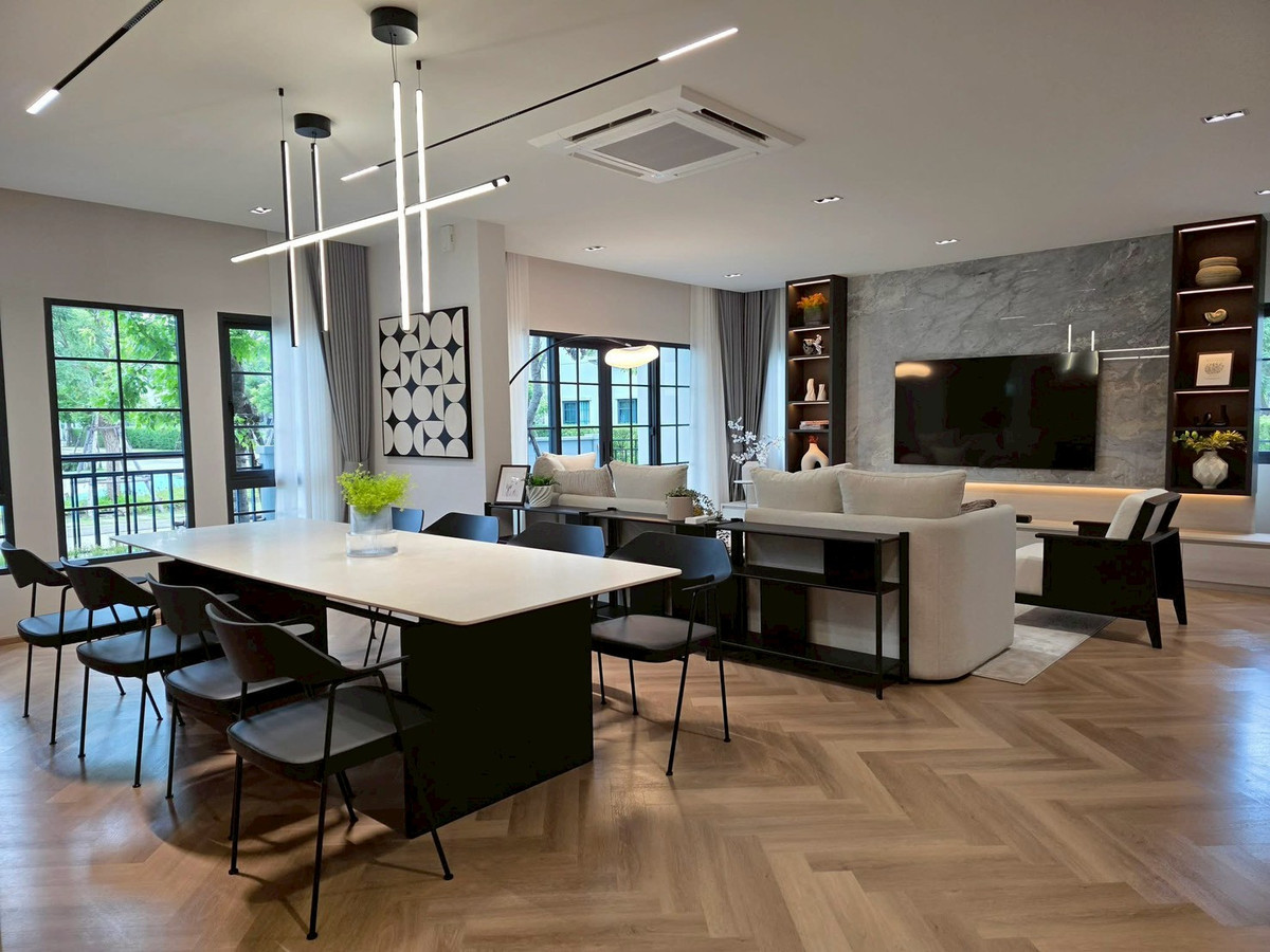 💎 House for rent, Centro Bangna - in front of a large garden, fully decorated, luxurious, ready to move in, 4 bedrooms, 5 bathrooms, corner, in front of the garden, no house opposite. You can see a view of the garden from almost every room! Just 1 km. from Mega Bangna on the road along the southern Kanchanaphisek Expressway 💰 Rental price 190,000 baht/month ✅ Includes common fees / gardening fees / Internet fees / air conditioner cleaning fees 2 times a year 🏠 House details Project: Centro Bangna (Phase 2) Location: Corner plot in front of the main garden, no house opposite Land area: 64.5 sq m Usable area: 303 sq m House facing direction: North 🌿 Parking: 3 Itchy 🛋️ Home functions 4 bedrooms (all rooms have their own bathroom) 5 bathrooms 🛁 (Master Bedroom has a bathtub) Maids room with attached bathroom Open Living Space - living area connected to the dining room Thai kitchen + Pantry + oven, electric stove, dishwasher Home Theater room, garden view with genuine leather sofa with electric recline. 🎬 2nd floor balcony with roof, sit and admire the garden view without getting hot. ☀️ Storage room + large shoe cabinet (capacity over 100 pairs) Digital Door Lock system EV Charger installed ⚡ 🔌 Complete set of electrical appliances 3 TVs (75" x 2, 65" x 1) 2 Soundbar 7 air conditioners 4 water heaters 2 refrigerators / Microwave / oven / electric stove / dishwasher Washing machine + dryer 📍 Nearby places Mega Bangna 🛍️ — 1 km. (3 minutes) IKEA Bangna 🪑 — 1 km. Central Village / King Power Srivaree 👑 — 9 km. Concordian International School / Berkeley / Wells 🏫 — 5–10 minutes Suvarnabhumi Airport ✈️ — 12 Km. Thainakarin Hospital / Sikarin Hospital 🏥 — 6 km. Bangna Expressway / Kanchanaphisek / Motorway 🌉 — Very close Contract conditions Lease contract for at least 1 year Deposit 2 months + 1 month in advance If interested, contact to inquire   Property code. BK1890 Contact: Khun Man Contact number Line ID: @Kinglandcondo (with @ too) #kinglandestateteam #Kingland Estates Team #House for rent #Centro Bangna #Luxury house Bangna #Corner house in front of the garden #LuxuryHomeBangna #House ready to move in #House for rent Bangna #MegaBangna #House next to garden #Land and House quality project #HomeForRentBangna #LuxuryHouseForRent #BangnaLuxuryLiving