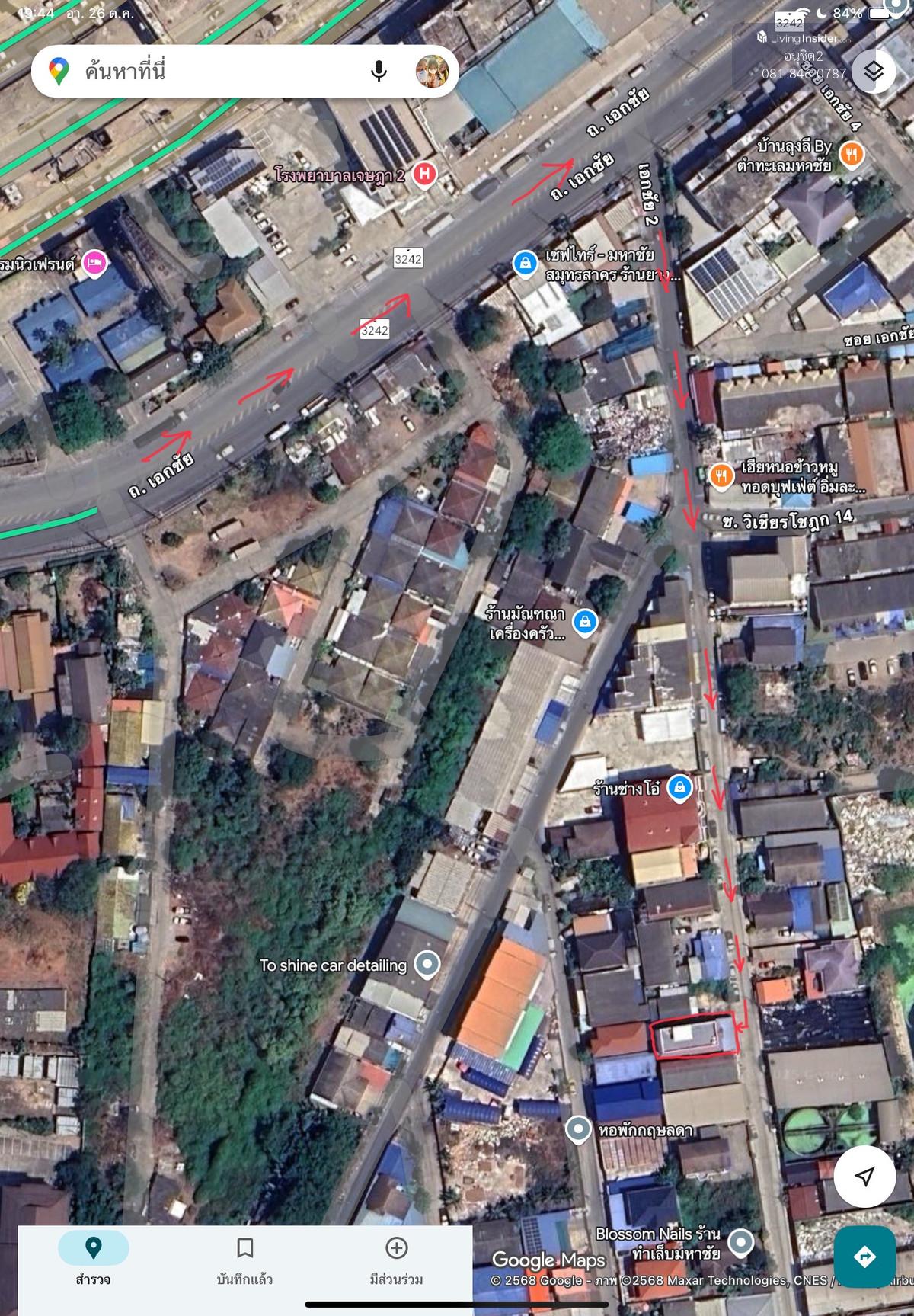3-storey building, strong, wide usable area The ground floor is open and can be used as an office or warehouse. The upper floor has rooms and a meeting room. The road in front of the house is wide, allowing cars to enter and exit easily. Parking for 2 cars can be parked in the house for another 2 cars. Located in a community area. The house can be turned into a rental room. In a convenient location Only 600 meters from Rama 2 Road, Talay Thai Market 4.5 km., Central Mahachai 9.5 km. If interested, you can inquire immediately at Contact number Anuchit.