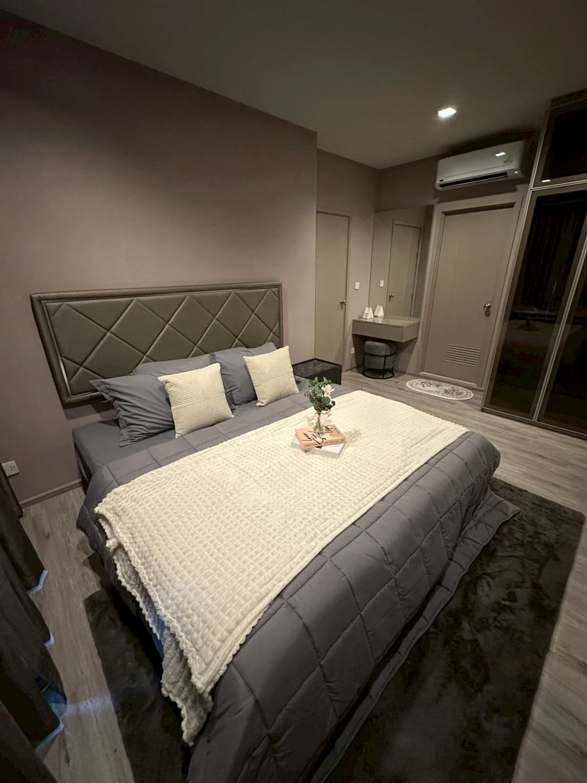 :: Highlights :: - Newly renovated room - Complete set of furniture - Brand new room, ready to move in immediately. - Premium amenities - Very convenient to travel, near MRT Phra Nang Klao Bridge. :: Details :: - Area 52 sq m. - Type 2 bedrooms, 2 bathrooms - Parking: 2 cars - 35th floor (room number 07 from the overall plan) - Balcony facing north - River view - Common fee 30,000 baht/year TEL: Contact number Line ID: Contact number