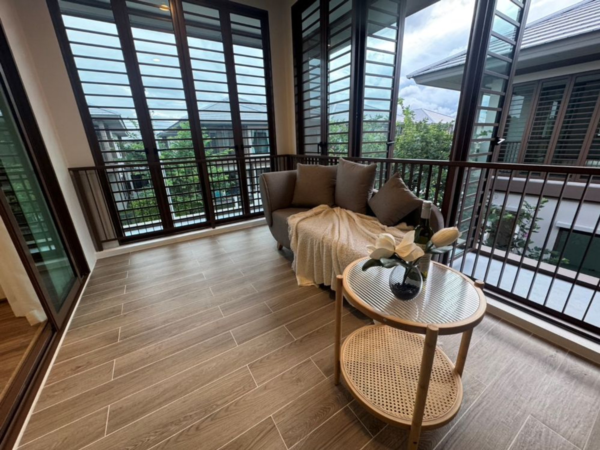 Property code: PA Contact number Luxurious 2-storey detached house for rent, Burasiri Krungthep Kreetha project, Kempas house style, 65.10 sq m, last house, fully furnished, near Brighton Internationa