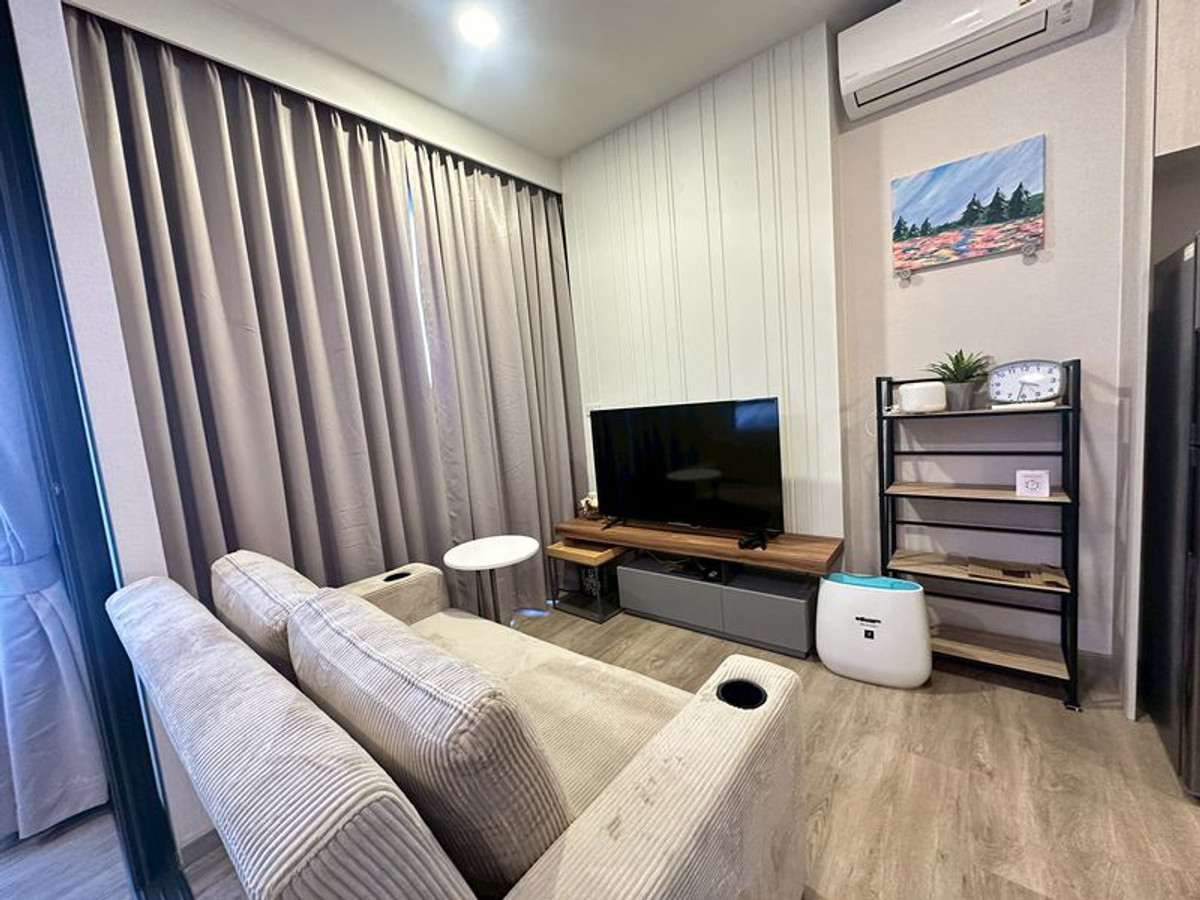 Details: Area size 35 sq m., 34th floor, beautiful open view See the city and mountains 1 bedroom, 1 bathroom Rental price 18,000 baht/month, annual contract 2 months deposit, 1 month in advance Room ready to move in. Fully furnished Complete electrical appliances - TV - Refrigerator - Microwave - Washing machine - Air conditioner - Built-in kitchen Full amenities: Fitness, swimming pool, sauna, reading room, parking 24 hour security system Location in the heart of Sriracha: Near Robinson Sriracha, Tukcom, Assumption College Sriracha, Samitivej Hospital, and Koh Loi Pier F-A7