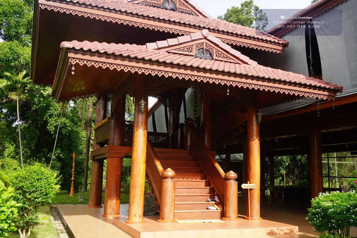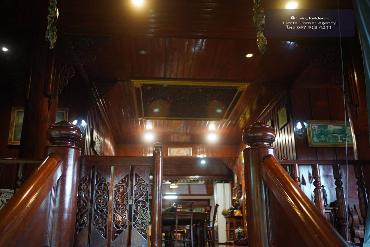 Property No. 95206 - Golden teak house, size 400 square meters on 24 rai area, price 30 million baht - Big teak house, 2 floors, 3 bedrooms, 3 bathrooms - Large dining room - Living room - Teak wood f