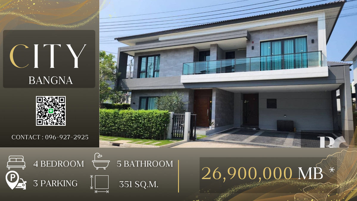 The City Bangna Usable area 351 sq m. Land size 78 square meters 2-story detached house 4 bedrooms 5 bathrooms Expenses on the day of transfer are half each. Price can be discussed first. Interested in making an appointment to view the house? Or for more details, contact Contact number.