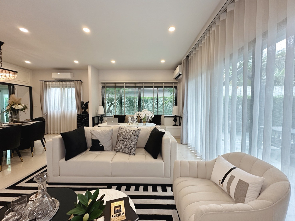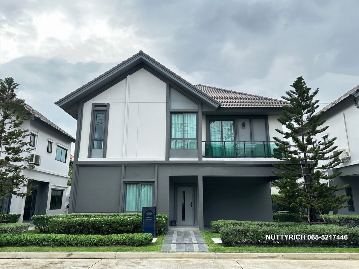 House for sale, sample detached house ready to move in with project GRAND BRITANIA NONTHABURI STATION English style house ModernLuxury English Gable Single house location Heart of Rattanathibet Sold with furniture , just carry your bag and move in , superior design. With usable space in every dimension potential location In the heart of Rattanathibet , near Central Northville, near the Purple Line, Nonthaburi Intersection 1 Station , near Owl Market, golf driving range. Suwongchai, Si Rat Expressway Area 59.2 sq m., usable area 235 sq m. The house is in front of the project. The front of the house is next to the garden 4 bedrooms, 4 bathrooms, 2 parking spaces, 1 Pantry, closed kitchen with a bedroom downstairs Facilities: Grand Britania Club Private Working Area, Multi-Function Area, Fitness, Swimming Pool - Hyde Park, Playground, Garden Zone-Pavilion Security system, entering and exiting the project with Auto Gate CCTV cameras within the project, 24-hour security system Hours Special price 18.xx MB from the price of 20 MB If interested, ask for more details Call Contact number Nut Line : Nuttyrich.bri Wechat : Nuttyrich097 ****** Accepting agents*****
